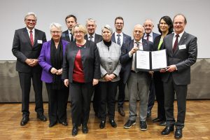 Ulm wird neuer DZNE-Standort6. März 2018 Protagnonisten der DZNE-Eröffnung (v. l.): Oberbürgermeister Gunter Czisch, Annette Schavan (Botschafterin beim Heiligen Stuhl), Prof. Udo X. Kaisers (Leitender Ärztlicher Direktor Universitätsklinik Ulm), Theresia Bauer (Ministerin für Wissenschaft, Forschung und Kunst Baden-Württemberg), Dekan Prof. Thomas Wirth (Medizinische Fakultät), Bärbel Brumme-Bothe (Bundesministerium für Bildung und Forschung), Matthias Gruber (Geschäftsführer RKU), Prof. Pierluigi Nicotera (Wissenschaftlicher Vorstand DZNE), Ärztlicher Direktor Prof. Albert Ludolph (Standortsprecher DZNE Ulm), Dr. Sabine Helling-Moegen (Administrativer Vorstand DZNE) und Universitätspräsident Prof. Michael Weber (Foto: Carola Gietzen) Die schwäbische Universitätsstadt Ulm ist zum zehnten Standort des Deutschen Zentrums für Neurodegenerative Krankheiten (DZNE) ernannt worden. Die dortigen Wissenschaftler werden sich insbesondere mit selteneren Nervenerkrankungen wie der Amyotrophen Lateralsklerose (ALS) befassen. Kooperationspartner des neuen DZNE-Standortes sind die Universität Ulm, das Universitätsklinikum Ulm sowie die Universitäts- und Rehabilitationskliniken (RKU). Die Partner arbeiten dort schon seit einigen Jahren in Form eines Virtuellen Instituts erfolgreich zusammen. Die neue Einrichtung soll Diagnose- und Therapie-Verfahren entwickeln und wissenschaftliche Erkenntnisse schnellst möglich in die klinische Praxis begleiten. Anlässlich der Eröffnung des neuen DZNE-Standorts sagte Ministerin Theresia Bauer vom Ministerium für Wissenschaft, Forschung und Kunst Baden-Württemberg: „Die Kooperationspartner in Ulm sind weltweit führend in der Erforschung und klinischen Behandlung von neurodegenerativen Erkrankungen wie ALS, Frontotemporaler Demenz oder Huntington. Durch die Zusammenarbeit mit dem DZNE entsteht eine einmalige Kombination von Ideen und Expertise, von der wegweisende Impulse für Forschung und Behandlung ausgehen werden. Ich freue mich, dass sich mit den Standorten Ulm und Tübingen nun bereits zwei baden-württembergische Einrichtungen dauerhaft an dieser enorm wichtigen Aufgabe beteiligen.“ Die Entscheidung für den neuen Standort hat sich auf Grundlage der seit Jahren etablierten Zusammenarbeit des DZNE mit Ulmer Fachleuten entwickelt. Denn bereits im Januar 2013 war hier ein Virtuelles Institut gegründet worden, das die Helmholtz Gemeinschaft fördert. Dieses war zuletzt in einer wissenschaftlichen Begutachtung exzellent bewertet worden. Denn Universität, Universitätsklinikum und die RKU haben ein einzigartiges Know-how über seltene Nervenerkrankungen wie ALS, Frontotemporalen Demenz (FTD) und Huntington. Die Expertise reicht von der Grundlagenforschung bis zur hochspezialisierten Versorgung von Patienten. Mit seinem klinischen Studienzentrum sowie Patientenregistern für ALS und Huntington verfügt Ulm zudem über eine herausragende Infrastruktur für die medizinische Forschung. In den nächsten Jahren soll der Ulmer Mitarbeiterstab des DZNE auf bis zu 50 Personen anwachsen. Einbezogen werden auch Wissenschaftler, die schon jetzt in Ulm tätig sind. Sprecher des neuen Standorts wird der Ulmer Neurologe und Universitätsprofessor Albert Ludolph. Die Beschäftigten des DZNE werden zunächst bestehende Räumlichkeiten der Universität Ulm nutzen. Langfristig soll ein eigenes Forschungsgebäude entstehen. Nach einer Übergangsphase werden das BMBF und das Land Baden-Württemberg den DZNE-Standort Ulm ab 2021 gemeinsam mit jährlich bis zu drei Millionen Euro fördern. Auch die Ulmer Partner (Universität, Universitätsklinikum und die Medizinische Fakultät) werden für den Aufbau einen substanziellen Millionenbetrag bereitstellen. Ziel: innovative Diagnose- und Behandlungsmethoden. Der Fokus des DZNE-Standorts Ulm wird auf translationaler Forschung liegen. Gute Voraussetzungen dafür ergeben sich durch die Einbindung von Ulm in das bundesweite klinische Netzwerk des DZNE, das standortübergreifende Studien betreibt. Da solche Untersuchungen nicht lokal begrenzt sind, ermöglichen sie einen umfangreichen Teilnehmerkreis und infolgedessen eine besonders hohe statistische Aussagekraft. Zur Entwicklung neuer Diagnose- und Therapiemethoden können sie daher wesentlich beitragen. Konkret werden sich die Ulmer Fachleute des DZNE unter anderem damit befassen, Biomarker zu identifizieren, mit denen sich eine ALS-Erkrankung idealerweise frühzeitig erkennen und und ihr Verlauf abschätzen lässt. Überdies sollen Therapiekonzepte erforscht werden, die bei krankmachenden Gendefekten ansetzen.