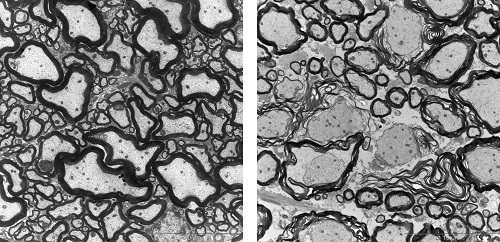 Milch kann MS-Symptome verstärken2. März 2022 Foto: © Knut Wiarda – stock.adobe.com Menschen mit Multipler Sklerose klagen nach dem Konsum von Milchprodukten oft über stärkere Krankheitssymptome. Forschende der Universitäten Bonn und Erlangen-Nürnberg haben nun einen möglichen Grund dafür gefunden. Demnach kann ein Protein der Kuhmilch Entzündungen auslösen, die sich gegen die Isolierschicht um die Nervenzellen richten. Auslöser der Studie waren Berichte von MS-Patientinnen und -Patienten: „Wir hören immer wieder von Betroffenen, dass es ihnen schlechter geht, wenn sie Milch, Quark oder Joghurt zu sich nehmen“, erklärt Stefanie Kürten vom Anatomischen Institut des Universitätsklinikums Bonn. „Uns interessiert die Ursache für diesen Zusammenhang.“ Die Professorin für Neuroanatomie gilt als Expertin für Multiple Sklerose. Mit der Studie begannen sie 2018 an der Universität Erlangen-Nürnberg. Vor anderthalb Jahren wechselte sie nach Bonn, wo sie die Arbeiten zusammen mit ihrer Arbeitsgruppe fortsetzte. „Wir haben Mäusen verschiedene Proteine aus der Kuhmilch injiziert“, sagt sie. „So wollten wir herausfinden, ob es einen Bestandteil gibt, auf den sie mit Krankheitssymptomen reagieren.“ Tatsächlich wurden die Forschenden fündig: Wenn sie den Tieren den Kuhmilch-Inhaltsstoff Casein zusammen mit einem Wirkverstärker verabreichten, entwickelten die Mäuse danach neurologische Störungen. Unter dem Elektronenmikroskop zeigte sich, dass bei ihnen die Isolierschicht um die Nervenfasern geschädigt war. Durchlöcherte Myelinschicht „Als Grund vermuteten wir ähnlich wie in MS-Patienten eine fehlgeleitete Immunreaktion“, erklärt Rittika Chunder, die in der Arbeitsgruppe von Kürten habilitiert. „Die körpereigene Abwehr attackiert eigentlich das Casein, zerstört dabei aber auch Proteine, die an der Bildung des Myelins beteiligt sind.“ Zu einer solchen Kreuzreaktivität kann es kommen, wenn sich zwei Moleküle zumindest in Teilen sehr ähneln. „Wir haben das Casein mit verschiedenen Molekülen verglichen, die für die Produktion von Myelin wichtig sind“, sagt Chunder. „Dabei sind wir auf ein Eiweiß namens MAG gestoßen. Es sieht dem Casein in manchen Bereichen ausgesprochen ähnlich – so sehr, dass bei den Versuchstieren die Antikörper gegen Casein ebenfalls gegen MAG aktiv waren.“ Bei gesunden Mäusen (li.) schmiegt sich das isolierende Myelin (schwarz) als kompakte Schicht eng um die Nervenfasern, die Axone. Bei Mäusen, denen Casein injiziert wurde (r.), lockert sich die Struktur des Myelins auf. Es umhüllt die Axone nur noch lose. Manchmal fehlt die Isolierschicht sogar ganz. (Fotos: AG Prof. Kürten/Uni Bonn) In den Casein-behandelten Mäusen richtete sich die körpereigene Abwehr also auch gegen MAG, wodurch das Myelin destabilisiert wird. Doch inwieweit lassen sich die Ergebnisse auf Menschen mit MS übertragen? Um diese Frage zu beantworten, gaben die Forschenden Casein-Antikörper von Mäusen zu menschlichem Hirngewebe. Tatsächlich reicherten sie sich dort an den Zellen an, die im Gehirn für die Myelin-Produktion verantwortlich sind. Selbsttest auf Antikörper gegen Casein Für die Antikörperproduktion sind die B-Zellen verantwortlich. Die B-Zellen im Blut von MS-Kranken sprechen der Studie zufolge besonders stark auf Casein an. Vermutlich haben die Betroffenen irgendwann durch den Konsum von Milch eine Allergie gegen Casein entwickelt. Sobald sie nun Frischmilchprodukten zu sich nehmen, stellt das Immunsystem daher massenhaft Casein-Antikörper her. Diese schädigen aufgrund der Kreuzreaktivität mit MAG auch die Myelinschicht um die Nervenfasern. Davon sind allerdings nur MS-Kranke betroffen, die gegen Kuhmilch-Casein allergisch sind. „Wir entwickeln momentan einen Selbsttest, mit dem Betroffene überprüfen können, ob sie entsprechende Antikörper in sich tragen“, sagt Kürten, die auch Mitglied im Exzellenzcluster ImmunoSensation2 ist. „Zumindest diese Subgruppe sollte auf den Konsum von Milch, Joghurt oder Quark verzichten.“ Möglicherweise erhöht Kuhmilch auch bei Gesunden das Risiko, an MS zu erkranken. Denn auch bei ihnen kann Casein Allergien auslösen – das ist den Forschenden zufolge vermutlich gar nicht einmal so selten. Sobald eine solche Immunantwort besteht, kann es theoretisch zu einer Kreuzreaktivität mit dem Myelin kommen. Das bedeute allerdings nicht, dass sich bei einer Überempfindlichkeit gegen Casein zwangsläufig eine MS entwickle, betont die Professorin. Dazu seien vermutlich noch weitere Risikofaktoren erforderlich. Beunruhigend sei dieser Zusammenhang dennoch, meint Kürten: „Studien zufolge sind die MS-Zahlen in Bevölkerungsgruppen erhöht, in denen viel Kuhmilch konsumiert wird.“