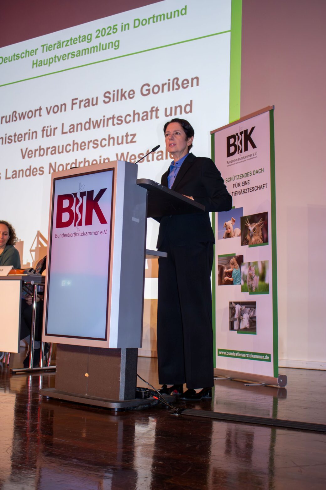 30. Deutscher Tierärztetag in Dortmund: Beschlüsse mit Herz und Augenmaß13. Oktober 2025 (Symbolbild) Foto: © Talia Mdlungu/peopleimages.com – stock.adobe.com In einem von leidenschaftlichen Debatten dominierten 30. Deutschen Tierärztetag in Dortmund am 9. und 10 Oktober 2025 trugen über 300 Veterinäre ihre Forderungen zur Erleichterung des Tierschutzvollzugs in allen tierärztlichen Bereichen zusammen. Ltd. VD. Dr. Holger Vogel bei seiner Festabendrede Foto: © BTK Beim 30. Deutschen Tierärztetag, der von BTK-Präsident Ltd. VD Dr. Holger Vogel am 9. Oktober eröffnet wurde, diskutierten die Tierärzte und Tierärztinnen in vier Arbeitskreisen zum Generalthema „Tierschutz im tierärztlichen Alltag“. Aus den konstruktiven Debatten gingen von der Hauptversammlung konkrete Forderungen an Gesellschaft, Politik, den Gesetzgeber und den eigenen Berufsstand hervor. Über die verabschiedeten Forderungen stimmten die Delegierten der beteiligten Organisationen ab – darunter die 17 Landes-/Tierärztekammern sowie BTK-Beobachter und weitere Organisationen. Ministerin Silke Gorißen bei ihrem Grußwort in der Hauptversammlung Foto: © BTK Prof. Dr. Eberhard Haunhorst bei seinem Grußwort bei der Eröffnung Foto: © BTK Prof. Dr. Dr. Markus Schick bei seinem Grußwort beim Festabend Foto: © BTK Die Ministerin für Landwirtschaft und Verbraucherschutz des Landes Nordrhein-Westfalen, Silke Gorißen, war vor Ort und wandte sich mit einem Grußwort an die Tierärzte und Tierärztinnen: „Mein Dank gilt allen Veterinärinnen und Veterinären für ihren unermüdlichen Einsatz für die Tiergesundheit und den Tierschutz, ob in der Praxis, den Behörden oder auch der Wissenschaft und Forschung. Ihre tagtägliche Expertise und Ihr Engagement für das Tierwohl sind beeindruckend.“ Weitere persönliche Grußworte überbrachten aus dem Bundesministerium für Landwirtschaft, Ernährung und Heimat (BMLEH) Staatssekretär Prof. Dr. Dr. Markus Schick und der Leiter der Abteilung 3 „Lebensmittelsicherheit, Tiergesundheit“, Prof. Dr. Eberhard Haunhorst. Arbeitskreis 1 „Tierschutz im Pferdesport“: Die Beschlüsse zielen auf verbindlichere Anforderungen, stärkere tierärztliche Kontrollen und klare Verantwortlichkeiten, um das Tierwohl im Pferdesport nachhaltig zu verbessern. So soll die tierärztliche Rolle bei Veranstaltungen u. a. gestärkt werden, indem Verbände und Veranstalter die ständige Anwesenheit qualifizierter Tierärzte und Tierärztinnen sicherstellen. Außerdem sollen nicht medizinisch notwendige Behandlungen unterlassen werden (z. B. Sedation zur Ermöglichung der Nutzung des Pferdes oder prophylaktische multiple Gelenkinjektionen). Arbeitskreis 2 „Tierschutz in der Kleintierpraxis“: Ziel der Beschlüsse ist es, strukturelle Defizite zu beheben, die Handlungsfähigkeit von Tierärzten und Tierärztinnen zu sichern und das Tierwohl zu stärken. Hierzu tragen u. a. die Flexibilisierung des Arbeitszeitgesetzes für den Veterinärbereich sowie deutlich erweiterte Betreuungsangebote (Kinder, Pflege) oder eine flächendeckende Einführung eines amtstierärztlichen Notdienstes bei. Außerdem wird eine klare rechtliche Definition und Priorisierung von Defektzuchtmerkmalen gefordert und ein Verbot ihrer Darstellung in Werbung/Medien/Spielzeug/Mode sowie die Regulierung des Online-Tierhandels. Arbeitskreis 3 „Tierschutz im Amt“: Die geforderten Maßnahmen zur Stärkung der amtlichen Tierschutzarbeit betreffen v. a. bessere Arbeitsbedingungen, gezielte Fortbildung sowie rechtliche und administrative Reformen. Zur Stärkung des amtlichen Tierschutzvollzugs sollen Mitarbeitende in der Tierschutzüberwachung aktiv vor belastenden Arbeitsbedingungen geschützt werden – etwa durch Coachings, Supervisionen und Kurse zur Gewaltprävention. Für einen vollziehbaren Tierschutz auf Basis veterinärmedizinischen Sachverstands ist das Tierschutzgesetz zu novellieren und die zugehörigen Verwaltungsvorschriften zu aktualisieren. Außerdem wird ein Grundsatzverbot von Langstreckentiertransporten über 8 Stunden in Drittländer außerhalb Europas gefordert. Arbeitskreis 4 „Tierschutz in der Nutztierhaltung“: Das Ziel der Forderungen ist eine praxisnahe, tierwohlorientierte Nutztiermedizin und bessere Unterstützung der Tierhaltenden und Tierärzte und Tierärztinnen. Für mehr Therapieflexibilität bei „minor species“ sollen u. a. bürokratische Hürden für die Zulassung und Umwidmung von Medikamenten im Therapienotstand gesenkt und eine Möglichkeit geschaffen werden, etablierte Wirkstoffe tiergerecht einzusetzen. Außerdem sollen Forschungsgelder für „minor species“ bereitgestellt und einheitliche Zuchtprogramme mit Fokus auf Gesundheitsmerkmale gefördert werden. Leidenschaftliche Debatten um komplexe Themen Die Tiermediziner machten sich die Aufgabe nicht leicht, um einige Punkte und Formulierungen wurde hart, aber immer fair, gerungen. Als aktuell sich verschärfendes Problem in der Pferdehaltung sahen die Veterinäre an, dass das Reitsportequipment, das auf dem Markt angeboten würde, zum Teil ungeeignet sei zur Anwendung am Tier und eine Art „TÜV“ sinnvoll wäre. Auch müsste auf Turnieren ständig ein Tierarzt anwesend und mit entsprechenden Befugnissen ausgestattet sein, um tierärztliche Standards umsetzen zu können. In der Arbeitsgruppe Kleintiere kamen sehr viele Themen zur Diskussion, so sei es u. a. dringend notwendig, dass Hundetrainer bzw. deren Ausbilder von Tierärzten geschult und beraten werden sollten. Auch forderten die Kleintierpraktiker eine stärkere Einbindung in politische Referentenentwürfe, um ihre fachliche Expertise frühzeitig einbringen zu können. Im Arbeitskreis drei wurde darauf hingewiesen, dass vielerorts massive Personalknappheit herrsche und technische Gerätschaften erneuert bzw. auf den neuesten Stand gebracht werden müssten. Ferner benötigten die Kollegen Fortbildungen, etwa zur Gewaltprävention, um den Eigenschutz gewährle