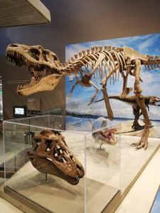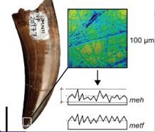 Abnutzungsspuren auf den Zähnen von Dinosauriern geben Hinweise auf Ernährung14. Dezember 2022 Zähne von einem erwachsenen Tyrannosauriden der Art Teratophoneus curriei im Natural History Museum of Utah. Von den Zähnen wurden Zahnabformungen für die Studie erstellt. Foto/©: Daniela E. Winkler Vergleich mikroskopischer Zahnoberflächentexturen von Allosaurus und Tyrannosaurus zeigt keinen Unterschied in der Aufnahme von abrasiven Knochen mit der Nahrung. Die Forschung befasst sich seit Langem mit der Frage, wie sich die Dinosaurier genau ernährt haben, und verwendet immer feinere Techniken, um darauf Antworten zu finden. Zum ersten Mal wurde nun ein Verfahren zur Mikrotexturanalyse von Zähnen eingesetzt, um die Ernährungsweise von großen fleischfressenden Theropoden, darunter Allosaurus und Tyrannosaurus rex, zu untersuchen. Mit dem mikroskopischen Verfahren kann aus den kleinsten Abnutzungsspuren ein 3-D-Oberflächenmodell des Zahnschmelzes erstellt werden, das Rückschlüsse auf eine Ernährung mit entweder eher weicher oder eher harter Nahrung liefert. Entgegen den Erwartungen fanden die beteiligten Wissenschaftlerinnen und Wissenschaftler zwischen Allosaurus und Tyrannosaurus keine Unterschiede in der Intensität, mit der Knochen gefressen und mit den Zähnen zerkleinert wurden. Allerdings zeigten sich Unterschiede zwischen Jungtieren und Erwachsenen. Die Studie wurde an der Universität Tokio in Zusammenarbeit mit dem Leibniz-Institut zur Analyse des Biodiversitätswandels (LIB), Hamburg und der Johannes Gutenberg-Universität Mainz (JGU) erstellt und in dem Fachmagazin „Palaeontology“ veröffentlicht.DMTA zeigt Zahnoberflächenrelief ähnlich wie eine topografische KarteDie Theropoden waren vorwiegend Fleischfresser und standen im Erdmittelalter an der Spitze der Nahrungspyramide, bis sie zum Ende der Kreidezeit vor 66 Millionen Jahren ausgestorben sind. Um ihre Ernährung zu untersuchen und Unterschiede im Fressverhalten zu ermitteln, werden in der Regel gut erhaltene Schädel benötigt. Die Analyse der Mikroabnutzungstextur von Zähnen, kurz DMTA vom englischen Begriff „Dental Microwear Texture Analysis“, wurde nun erstmals zur Untersuchung einzelner Theropoden-Zähne eingesetzt, die viel häufiger als Fossilien erhalten geblieben sind als komplette Schädel. Damit kann die Zahnoberfläche wie auf einer Geländekarte als dreidimensionales Höhenmodell abgebildet werden. Aus der Rauheit, Tiefe und Komplexität der Abnutzungsspuren wird geschlossen, ob harte Materialien in größerem Umfang mit der Nahrung aufgenommen wurden. In diesem Fall können es nur Knochen gewesen sein.„Zahnoberflächen sind ein Archiv des Ernährungsverhaltens und der Lebensraumnutzung“, erklärt Prof. Dr. Thomas Kaiser vom LIB in Hamburg, wo die Messungen durchgeführt wurden. Die Forschenden am LIB können auf eine weltweit einzigartige Vergleichsdatenbank zugreifen. Dies erlaubt auch Vergleiche zwischen Dinosauriern und Säugetieren. „Wir haben hier eine universelle Lebensraumschnittstelle erschlossen, die gewissermaßen die Zeitreise ins Erdmittelalter ermöglicht.“ Denn Mikroabnutzungstexturen bleiben, wie die Zähne der Wirbeltiere auch, über Jahrmillionen fast im Originalzustand erhalten. DMTA-Bild eines Zahns von einem erwachsenen Tyrannosauriden: Ein Bild der Zahnspitze zeigt die winzigen Kratzer, die auf Komplexität und Tiefe der Abnutzungsmerkmale hin analysiert wurden. Abb./©: Daniela E. Winkler „Wir wollten testen, ob wir mittels der DMTA-Hinweise auf ein unterschiedliches Ernährungsverhalten bei Tyrannosauriden und Allosaurus finden können. Die Tyrannosauriden haben in der Kreidezeit vor 145 bis 66 Millionen Jahren gelebt, der ältere Allosaurus in der Jurazeit vor 201 bis 145 Millionen Jahren“, sagt die Erstautorin Dr. Daniela Winkler zum Ziel der Studie.Das Zusammenspiel von Zahnnutzung, Schädelform und Beißkräften gibt wiederum Hinweise, wie diese Räuber ihre Beute erlegt und aufgenommen haben. Bei Tyrannosaurus wurde vermutet, dass vergleichsweise viele Knochen mitgefressen wurden und sich das Zerbeißen von harten Knochen mithilfe der DMTA in Form von raueren und komplexeren Oberflächentexturen zeigen lässt. „Unsere Daten legen jedoch nahe, dass sich die beiden Theropoden, Allosaurus und Tyrannosaurus, nicht so sehr unterscheiden, wie man vielleicht erwartet hätte“, fasst der Mainzer Paläontologe Prof. Dr. Thomas Tütken die Ergebnisse zusammen. Die Studien wurden von Daniela Winkler in der Arbeitsgruppe von Tütken am Institut für Geowissenschaften der JGU begonnen und nun an der Graduate School of Frontier Sciences der Universität Tokio abgeschlossen.Zähne von jungen räuberischen Dinosauriern weisen stärkere Abnutzung auf als die von ErwachsenenInsgesamt untersuchte das Team 48 Zähne, 34 von Dinosauriern und zum Vergleich 14 von heutigen Krokodilen. Dabei fanden die Wissenschaftlerinnen und Wissenschaftler sowohl bei den Dinosauriern als auch bei den Krokodilen einen deutlichen Unterschied zwischen Jungtieren und Erwachsenen: „Wir untersuchten zwei jugendliche Dinosaurier, einen Allosaurus und einen Tyrannosauriden, und stellten fest, dass beide eine andere Nahrungsnische und ein anderes Fressverhalten hatten als die Erwachsenen“, sagt Daniela Winkler.Die Zähne der Jungtiere waren der Studie zufolge stärker abgenutzt, was bedeuten könnte, dass sie sich häufiger von Kadavern ernähren mussten und es zu mehr Knochen-Zahnkontakt beim Abnagen des Fleischs von den Knochen kam.Anders bei den Krokodilen, die als nächste lebende Verwandte der Dinosaurier – neben den Vögeln – zum Vergleich herangezogen wurden: Die Zähne der jungen Krokodile waren weniger abgenutzt, weil sie sich von weicherer Nahrung wie Insekten ernähren. Lythronax lebte in der Oberkreide in Nordamerika. Diese Tyrannosauriden haben schätzungsweise bis zu 2,5 Tonnen gewogen. Foto/©: Daniela E. Winkler Die Studie zeigt, dass die DMTA als Analysemethode dazu bei