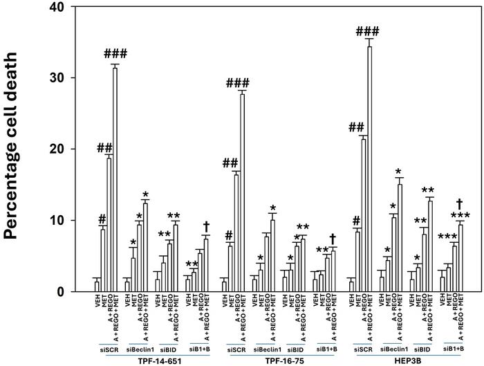 Aderhautmelanom: Dreifachkombination von Wirkstoffen zeigt gute Ergebnisse16. April 2026 Aramchol, Regorafenib und Metformin wirken synergistisch und verstärken die Abtötung von Tumorzellen deutlich. Das zeigte eine aktuelle Studie der Virginia Commonwealth University und dem University of Pittsburgh Cancer Institute.(Symbolbild.)Bild:©Crystal light-stock.adobe.com Eine aktuelle Arbeit zeigt, dass der SCD1-Inhibitor Aramchol in Kombination mit dem Multi-Kinase-Inhibitor Regorafenib und dem Diabetesmedikament Metformin wirkt, um Zellen des Aderhautmelanoms (UM) abzutöten. Das Aderhautmelanom, eine seltene und aggressive Form von Augenkrebs, metastasiert häufig in die Leber und ist oft nur schwer behandelbar. Forschende von der Virginia Commonwealth University in den USA leiteten gemeinsam mit dem University of Pittsburgh Cancer Institute, USA, die Studie. Diese untersuchte, wie Aramchol in Kombination mit Regorafenib und Metformin Tumorzellen des Aderhautmelanoms abtötet. Die Forschenden haben ihre Ergebnisse in der Fachzeitschrift „Oncotarget“ veröffentlicht. Kombination aus Aramchol und Regorafenib plus Metformin zeigt stärksten Effekt gegen UM-Zellen Die Autoren berichten, dass Aramchol, Regorafenib und Metformin synergistisch wirken und die Abtötung von Tumorzellen deutlich verstärken. Die stärksten Effekte zeigten sich, wenn Metformin zu der Kombination aus Aramchol und Regorafenib hinzugegeben wurde. In patientenabgeleiteten UM-Zellen sowie LD-1-Cholangiokarzinomzellen führte die Dreifachkombination zudem zu einer verstärkten Bildung von Autophagosomen und einem erhöhten autophagischen Fluss. Wurden hingegen Beclin1, ATG5 oder LAMP2 herunterreguliert, nahm die Bildung von Auto- und Autolysosomen ab, ebenso wie die zelluläre Abtötung. Ergebnisse legen multifaktoriellen Wirkmechanismus nahe Darüber hinaus identifizierte die Studie BID als wichtigen Beitrag zur letalen Reaktion. Insgesamt sprechen die Ergebnisse für einen multifaktoriellen Wirkmechanismus, der sowohl die Makroautophagie als auch Todesrezeptor-Signalwege einbezieht. Abb.: Metformin verstärkt die durch [Aramchol und Regorafenib] verursachte Abtötung von Tumorzellen, wofür Makroautophagie und die Signalübertragung über BID erforderlich sind. UM-Zellen und HEP3B-Zellen wurden mit einer Scrambled-siRNA-Kontrolle (siSCR) oder mit siRNA-Molekülen transfiziert, um Beclin1 und BID herunterzuregulieren. Nach 24 Stunden wurden die Zellen 24 Stunden lang mit einer Vehikelkontrolle, Aramchol, Regorafenib, Metformin oder einer Kombination der Wirkstoffe behandelt. Schwimmende und anhaftende Zellen aus drei unabhängigen Studien wurden gesammelt. Anschließend wurde der prozentuale Lebensanteil mittels Trypanblau-Ausschluss-Assays bestimmt (±SD). #p < 0,05 höher als die Vehikelkontrolle; ##p < 0,05 höher als bei Monotherapie; ###p < 0,05 größer als bei mit zwei Wirkstoffen behandelten Zellen; *p < 0,05 kleiner als die entsprechenden Werte in siSCR-transfizierten Zellen; **p < 0,05 kleiner als der entsprechende Wert in siBeclin1-Zellen; †p < 0,05 kleiner als die entsprechenden Werte in siBID-Zellen.© 2026 Booth MR et al. Paul Dent, korrespondierender Autor fügte hinzu: „Unsere Daten zeigen, dass UM-Zellen durch die Behandlung mit Aramchol plus Regorafenib plus Metformin über einen verstärkten autophagischen Fluss abgetötet werden und dass diese Kombination das Potenzial haben könnte, UM-Tumoren zu kontrollieren, die in die Leber metastasiert haben.“ Weitere In-vivo-Studien notwendig Die Autoren merken zudem an, dass der SCD1-Knockdown zwar den Baseline-Zelltod der Tumorzellen erhöhte, jedoch nicht die vollständigen Antikrebswirkungen von Aramchol reproduzierte. Das deutet den Autoren zufolge darauf hin, dass zusätzliche molekulare Zielstrukturen zu dessen Wirksamkeit beitragen. Zudem betonen sie die Notwendigkeit weiterer In-vivo-Studien, um das therapeutische Potenzial dieser Kombination bei metastasiertem UM zu bewerten. Dies gilt insbesondere bei Erkrankungen mit Leberbefall. (sas/BIERMANN)