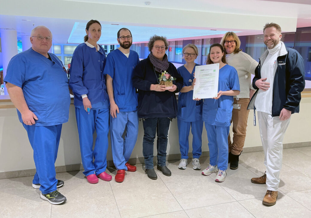 Angehörigenfreundliche Intensivstationen am UKSH zertifiziert30. März 2026 Das Team am UKSH Campus Kiel freut sich über die Zertifizierungen der DGF. (Foto: ©UKSH) Intensivstationen des Universitätsklinikums Schleswig-Holstein (UKSH) in Kiel und Lübeck wurden mit dem Zertifikat „Angehörigenfreundliche Intensivstation“ der Deutschen Gesellschaft für Fachkrankenpflege und Funktionsdienste (DGF) ausgezeichnet. Die DGF bescheinigt den Pflegeteams, wissenschaftliche Erkenntnisse zur Rolle der Angehörigen für Intensivpatientinnen und -patienten in die Praxis umzusetzen. Kriterien der Zertifizierung sind offene Besuchszeiten, eigene Warteräume für Angehörige, Unterstützungsangebote und die bewusste Einbindung in den Versorgungsprozess. Diese Maßnahmen sollen den Angehörigen das Gefühl geben, willkommen zu sein. Das schließt auch die Besuche von Kindern ein, die altersgerechte Flyer oder Malbücher erhalten und eng begleitet werden. Am Campus Kiel wurden aktuell sechs Stationen zertifiziert. Dazu zählen die Kliniken für Anästhesiologie und Operative Intensivmedizin, Herzchirurgie, Angeborene Herzfehler und Kinderkardiologie sowie für Neonatologie, Kinderpneumologie und Neuropädiatrie. Am Campus Lübeck erhielt bereits Anfang des Jahres das Team der A.311/A312 der Interdisziplinären Konservativen Intensivmedizin die Auszeichnung. Weitere Stationen stehen laut UKSH kurz vor der Zertifizierung. Am UKSH Campus Lübeck wurde das Team der A.311/A312 der Interdisziplinären Konservativen Intensivmedizin ausgezeichnet. (Foto: ©UKSH) „Angehörige und andere Bezugspersonen bedürfen der Fürsorge, brauchen verständliche Informationen und Hilfen, um die Krise gemeinsam mit den Patientinnen und Patienten bewältigen zu können“, verdeutlicht PD Dr. Peter Nydahl. Nydahl ist Pflegewissenschaftler und Krankenpfleger am Campus Kiel. Er ergänzt: „Wenn sich diese Bezugspersonen willkommen fühlen, können sie besser mit der Situation klarkommen, die Erkrankten unterstützen und mit uns zusammenarbeiten.“ Auch die Patientinnen und Patienten profitieren: Eine familienzentrierte Versorgung trägt zur Genesung bei und mindert das Risiko für Delir. „Die Zertifizierung macht sichtbar, was unsere tägliche Arbeit auszeichnet: eine Intensivpflege, die Nähe zulässt, Orientierung gibt und Menschen in einer Ausnahmesituation auffängt“, sagt Sverrir Möller. Er ist stellvertretende pflegerische Teamleitung der A.311/A.312 am Campus Lübeck. Vorgesehen ist ein kontinuierlicher Verbesserungsprozess: Die Zertifizierung ist zwei Jahre gültig. Für eine anschließende Rezertifizierung ist die Entwicklung weiterer Angebote für Bezugspersonen und Familien nötig.