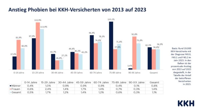 Angststörungen vor allem bei Jüngeren auf dem Vormarsch19. November 2024 Foto: © Jeff Bergen/peopleimages.com – stock.adobe.com Daten der KKH Kaufmännischen Krankenkasse zufolge hat der Anteil der Versicherten, die wegen einer diagnostizierten Phobie in Behandlung sind, von 2013 auf 2023 um 57 Prozent zugenommen. Bei den 15- bis 29-Jährigen stieg der Anteil im Zehn-Jahres-Vergleich sogar um 114 Prozent. „Ängste sind Schutzmechanismen, die uns vor Gefahren warnen“, erklärt Dr. Aileen Könitz, Ärztin und Expertin für psychiatrische Fragen bei der KKH. „Doch wenn diese Ängste unser Verhalten und unsere Gedanken so stark dominieren, dass sie blockieren, zu sozialem Rückzug führen und die Lebensqualität beeinträchtigen, ist Hilfe notwendig.“ Das trifft laut Versichertendaten der KKH auf immer mehr Menschen zu. So nahm der Anteil der Patientinnen und Patienten, die wegen einer diagnostizierten Phobie in Behandlung sind, von 2013 auf 2023 um 57 Prozent zu. Entwicklung von Phobien bei KKH-Versicherten zwischen 2013 und 2023. (Quelle: KKH Kaufmännische Krankenkasse) Alarmierend: Bei den 15- bis 29-Jährigen stieg der Anteil im Zehn-Jahres-Vergleich um 114 Prozent, bei Frauen dieser Altersgruppe sogar um 133 Prozent. Die Daten der KKH zeigen in den vergangenen Jahren einen kontinuierlichen Anstieg behandlungsbedürftiger Phobien, wobei die Corona-Jahre diesen Trend weiter verstärkt haben – und das, obwohl Arztbesuche teilweise ausblieben. Vor allem für junge Menschen war es laut Könitz eine äußerst belastende Zeit: „Die Schließung von Schulen und Universitäten und die damit verbundenen Kontaktbeschränkungen führten dazu, dass Schülerinnen, Schüler und Studierende oft nur online miteinander kommunizieren konnten. Der so wichtige direkte Austausch mit Gleichaltrigen, auch über Sorgen und Nöte, fiel weg. Dadurch entstanden Ängste, etwa vor sozialer Isolation, Krankheit oder der Zukunft.“ Angststörungen zählen wie Depressionen und Störungen durch Alkohol- oder Medikamentengebrauch zu den häufigsten psychischen Erkrankungen. Die Ursachen dafür sind vielfältig. „Sie reichen von genetischen und neurobiologischen Faktoren bis hin zu soziokulturellen Einflüssen und traumatischen Erlebnissen. Meist kommen mehrere Faktoren zusammen“, erklärt Ärztin Könitz. Nicht jede Phobie bedarf einer Behandlung. Führen Ängste jedoch zu Vermeidungsverhalten, und schränken sie den Alltag stark ein, ist professionelle Hilfe angezeigt. Betroffene wissen meist, dass ihre Furcht irrational ist und keine reale Bedrohung darstellt. Doch oft ist die Angst allein schwer zu überwinden. Die gute Nachricht: „Phobien sind in der Regel gut behandelbar. Viele Menschen behalten ihre Ängste jedoch aus Scham für sich“, weiß KKH-Expertin Könitz. Ihr Rat: „Wichtig ist, sich seinen Ängsten zu stellen und sie aktiv zu bewältigen. In der Praxis hat sich die Verhaltenstherapie bewährt. Hierbei werden Patientinnen und Patienten gezielt mit den Situationen konfrontiert, die sie normalerweise meiden, das bedeutet konkret: rein in den Fahrstuhl, ins Flugzeug oder die Spinne auf die Hand.“ So lernen Betroffene, dass die befürchtete Gefahr ausbleibt, und können Schritt für Schritt ihre Ängste überwinden. In manchen Fällen kann auch eine Kombination aus Psychotherapie und Medikamenten, wie zum Beispiel Antidepressiva, unterstützend wirken. Für eine erfolgreiche Behandlung ist es in jedem Fall wichtig, die Therapie individuell auf die Patientin oder den Patienten abzustimmen.