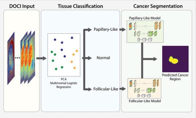 Mehr erfahren zu: "Neues Bildgebungsverfahren rückt Schilddrüsenkrebs in „neues Licht“" Neues Bildgebungsverfahren rückt Schilddrüsenkrebs in „neues Licht“ Ein neues, nicht invasives Bildgebungsverfahren misst die Autofluoreszenz des Gewebes. Kombiniert mit Künstlicher Intelligenz (KI) könnte dieser Ansatz die präzise Lokalisation von Schilddrüsenkarzinomen in Echtzeit ermöglichen – direkt im OP-Saal.