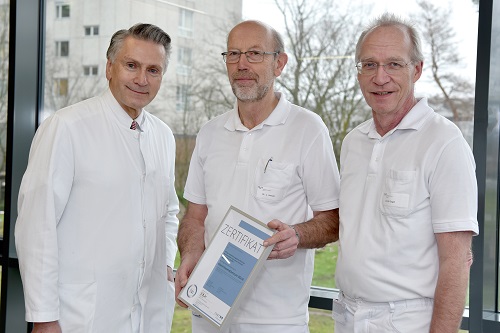 Ausgezeichnete Versorgung älterer Sturzpatienten10. Februar 2021 Krankenpflegerin Janina Seeger, Manfred Gogol und Lambert Herold (v.l.) bei der Visite am Bett einer älteren Patientin. Foto: Ilka Kosmalski/MHH. Die Unfallchirurgische Klinik der Medizinischen Hochschule Hannover (MHH) erhält das Zertifikat als Alterstraumatologisches Zentrum (ATZ DGU®). Erleiden ältere Menschen Knochenbrüche – beispielsweise durch einen Sturz –, zieht das oft Komplikationen nach sich. Bestes Beispiel: der Schenkelhalsbruch. Viele der betroffenen Seniorinnen und Senioren kommen danach im wahrsten Sinne des Wortes nicht wieder auf die Beine und verlieren ihre Selbstständigkeit. Die Zahl älterer PatientInnen mit Knochenbrüchen steigt stetig an. Zudem leiden sie immer häufiger unter schweren Vorerkrankungen. Auf diese Herausforderungen hat die Unfallchirurgische Klinik der Medizinischen Hochschule Hannover (MHH) unter der Leitung von Prof. Christian Krettek reagiert und ein Alterstraumatologisches Zentrum (ATZ) aufgebaut. Dort arbeiten UnfallchirurgInnen und AltersmedizinerInnen eng mit Pflegekräften und TherapeutInnen zusammen, um auf die besonderen medizinischen Bedürfnisse älterer SturzpatientInnen einzugehen und ihre Versorgung zu verbessern. Im Dezember 2020 wurde die Klinik erfolgreich von der Deutschen Gesellschaft für Unfallchirurgie (DGU) als „AltersTraumaZentrum DGU®“ zertifiziert. PatientInnen mit Vorerkrankungen Während die Zahl der Verkehrsunfälle immer mehr abnimmt, moderne Sicherheitssysteme die Schwere der Verletzungen verringern und Therapiekonzepte auf hohem Niveau die Behandlungsergebnisse bei den Opfern von Verkehrsunfällen deutlich verbessert haben, stellen ältere PatientInnen mit Knochenbrüchen die Unfallchirurgie vor große Aufgaben. Hüftgelenksnahe Frakturen und Brüche der Wirbelkörper, des Beckens, des Oberarms und des Handgelenks sind die häufigsten knöchernen Verletzungen im höheren Lebensalter. Unabhängig von der Wahl der Behandlungsmethode haben ältere Menschen schlechtere Voraussetzungen für eine komplikationsfreie Behandlung als junge. „Fast alle haben nicht nur einen Knochenbruch, sie bringen auch ernste Vorerkrankungen wie beispielsweise Herz-Kreislauf-Erkrankungen, Diabetes mellitus oder Niereninsuffizienz mit und nehmen viele Medikamente. Der Organismus ist insgesamt schon geschwächt, so dass zu befürchten ist, dass sie den Unfall selbst und die eventuell erforderlichen Operationen nicht gut verkraften“, erklärt Dr. Lambert Herold, Oberarzt in der Klinik für Unfallchirurgie. „Diese Patientengruppe braucht eine ihrem Alter angepasste strukturierte Versorgung.“ Fach- und berufsübergreifendes Team Genau hier setzt die Alterstraumatologie an, die in den vergangenen zwei Jahren von einem interprofessionellen und interdisziplinären Team in der Klinik für Unfallchirurgie etabliert wurde. Dabei geht es vor allem um drei Fragen: Wie lassen sich Komplikationen während des stationären Aufenthalts vermeiden? Wie kann die Selbstständigkeit erhalten bleiben? Wie kann die Sterblichkeitsrate gesenkt werden? Die Alterstraumatologie antwortet darauf mit fach- und berufsübergreifender Kooperation von Unfallchirurgie und Geriatrie. Unverzichtbar ist auch das herausragende Engagement der Pflegekräfte und der TherapeutInnen aus Physio- und Ergotherapie sowie des Casemanagements und ÄrztInnen aus der Allgemeinmedizin, der Gerontopsychiatrie und der Inneren Medizin. Ganzheitliche Behandlungskonzepte Durch gemeinsame Visiten und Fallbesprechungen können ganzheitliche Behandlungskonzepte verfolgt werden, die auch die Vor- und Begleiterkrankungen der älteren PatientInnen mit einbeziehen. Komplikationsmöglichkeiten können so früher erkannt und vermieden werden. „Die strukturierte interdisziplinäre und interprofessionelle Zusammenarbeit senkt die Sterbe- und Komplikationsraten deutlich“, sagt Dr. Manfred Gogol, Oberarzt Geriatrie in der Unfallchirurgischen Klinik. Auch der Erhalt der Selbstständigkeit scheint mit diesem Konzept besser gewährleistet zu sein. Gut vorbereitet auf wachsende Patientengruppe Christian Krettek, Lambert Herold und Manfred Gogol (v.l.) mit dem Zertifikat. Foto: Almuth Siefke/MHH. Mit dem Zertifikat als Alterstraumatologisches Zentrum wird der Unfallchirurgischen Klinik der MHH bescheinigt, dass sie sich strukturell und organisatorisch in besonderem Maße auf die Versorgung älterer Patientinnen und Patienten mit unfallbedingten Knochenbrüchen vorbereitet. Über die Auszeichnung freut sich auch der Klinikdirektor: „Durch den demografischen Wandel wird diese Patientengruppe zukünftig noch größer werden. Mit dem Team der Alterstraumatologie können wir den speziellen Bedürfnissen der älteren Generation am besten gerecht werden. Als Unfallchirurgische Universitätsklinik forschen wir außerdem intensiv zu den Besonderheiten bei der Versorgung dieser Patientengruppe“, erklärt Krettek. „Wir entwickeln insbesondere Behandlungskonzepte, die eine möglichst schonende Wiederherstellung der Mobilität ermöglichen oder Operationen ganz vermeiden helfen.“ Zudem gehe es dem Team auch darum, herauszufinden, wie noch besser vorbeugend gearbeitet werden könne, um weitere Frakturen möglichst zu vermeiden. „Mit unserem modernen Versorgungskonzept und richtungsweisender Forschung wollen wir die Spitzenstellung der MHH im Bereich Traumatologie weiter ausbauen“, sagt Krettek.