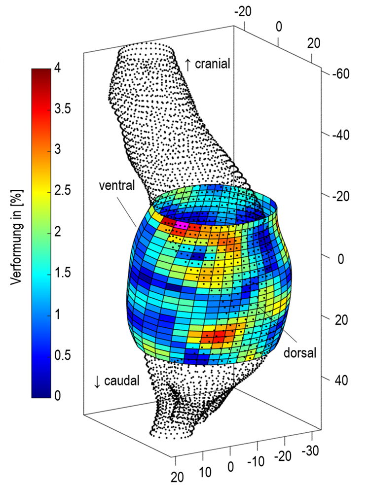 Bauchaortenaneurysma: Lebensbedrohliche Gefahr schneller identifizieren17. April 2024 Foto: ©Vitalii Vodolazskyi/stock.adobe.com Das Forschungslabor der Frankfurt University of Applied Sciences (UAS) entwickelt Methoden zur Bewertung von Krankheitsverlauf und Rupturrisiko von Bauchaortenaneurysmen. Seit wenigen Wochen ist es offiziell: Die Aorta kann als eigenständiges Organ klassifiziert werden. Durch diese neue Einstufung der Hauptschlagader empfehlen Wissenschaftlerinnen und Wissenschaftler, ein eigenes Fachgebiet für die Erforschung und Behandlung der Aorta einzuführen, welches sich deutlich von der Kardiologie und der Gefäßchirurgie abgrenzt. Auch neue Behandlungs- und Umgangsweisen könnten sich durch diesen Schritt ergeben, die die Rupturrisikobewertung von Aortenaneurysmen erleichtern. Forschende der Frankfurt UAS begrüßen die Einstufung als eigenständiges Organ, „da hierdurch die interdisziplinäre Betrachtung der Aorta weiter gefördert wird“, wie es in einer Mitteilung heißt. Seit mehr als zehn Jahren befassen sich Forschende des Labors für Biomechanik der Hochschule in Zusammenarbeit mit der Gefäß- und Endovascularchirurgie des Klinikums der Goethe-Universität Frankfurt insbesondere mit der Charakterisierung der mechanischen Materialeigenschaften als Biomarker für den Krankheitsfortschritt von Bauchaortenaneurysmen (BAA), der häufigsten Form des Aneurysmas. Neue Forschungsergebnisse zeigen nun, dass die zyklische Verformung der Aortenwand zusätzliche, eigenständige Einblicke in den Krankheitszustand von Aneurysmen liefert, die über den Informationsgehalt durch bereits etablierte Methoden hinausgehen. „Rund 3 Prozent der über 65- bis 70-jährigen Männer und 1 Prozent aller Frauen der gleichen Altersgruppe in Westeuropa und den USA sind von einem Aneurysma betroffen. Diese Erkrankung der Aorta verläuft zwar in vielen Fällen symptomfrei, eine plötzliche Ruptur, also ein Riss, kann jedoch lebensbedrohlich sein; rund 10.000 Personen in Deutschland sterben jedes Jahr an den Folgen eines Aneurysmas“, erklärt Prof. Armin Huß, Professor für Technische Mechanik, Technische Schwingungslehre und Finite Elemente Methode sowie Leiter des Labors für Biomechanik. Eigenschaften der Aortenwand im Fokus „Bauchaortenaneurysmen beginnen mit einer degenerativen Veränderung der Materialeigenschaften der Aortenwand. Im weiteren Verlauf kann sich die Wand wieder stabilisieren – oder bis zur Ruptur weiter schwächen, der Unterschied beider Krankheitsverläufe besteht in den Materialeigenschaften der Wand, die im Gegensatz zu technischen Materialien nicht ein für alle Mal feststehen, sondern vom Körper beständig remodelliert werden. Dennoch sind die klinisch etablierten Kriterien für eine chirurgische Behandlung oder weitere Beobachtung eines Bauchaortenaneurysmas der maximale Durchmesser und seine Wachstumsrate, nicht die individuellen Materialeigenschaften, weil es bislang nicht möglich war, diese Patient:innen individuell zu bestimmen“, erläutert Dr. Christopher Blase vom Labor für Biomechanik. „Gemeinsam mit unseren klinischen Partnern hat unsere Forschungsgruppe die zeitaufgelöste dreidimensionale Verformungsmessung der Aneurysmenwandbewegung am lebenden Menschen mit Ultraschall weltweit erstmals etabliert.“ „Basierend auf diesen neuartigen Daten haben wir Methoden entwickelt, die die Bestimmung der individuellen Materialeigenschaften der Wand erlauben.“ ergänzt Dr. Andreas Wittek. „Damit stehen zusätzliche Informationen zur Beobachtung und Einschätzung des Krankheitsverlaufs und möglicherweise zur präziseren Einschätzung des Rupturrisikos zur Verfügung.“ Rekonstruktion eines Bauchaortenaneurysmas mit Abmessungen in mm und anatomischer Lagebezeichnung. Schwarze Punkte beschreiben die durch CT-Angiographie ermittelte Aortengeometrie. Die farbige Fläche zeigt die mit 4D Ultraschall lokal gemessenen Verformungen im abdominalen Bereich der Aorta. Blau und türkis kennzeichnen geringe Verformungen, gelb und rot mittlere bis starke Verformungen. Magenta beschreibt den Bereich der größten Verformung.Das Bild wurde erstellt auf Basis von CT- und 4D-Ultraschalldaten des Universitätsklinikums Frankfurt am Main. ©Labor für Biomechanik/Frankfurt UAS „Um eine genaue Einschätzung des persönlichen Rupturrisikos vornehmen zu können, ist es umso wichtiger die Materialeigenschaften beziehungsweise Verformungen jeder Aorta individuell zu lesen“, betont Manuel Schönborn, neben Achim Hegner einer von zwei Doktoranden von Huß, die aktuell in der Forschungsgruppe an diesem Thema forschen. Ziel ihrer Arbeiten ist die Weiterentwicklung und Validierung der bislang entwickelten Methoden. „Möglicherweise kann so ein neues Risikokriterium für die Aortenruptur vorgeschlagen werden, welches Chirurg:innen zusätzlich herbeiziehen können, um BAA-Krankheitsverlauf und Rupturrisiko individuell, kostengünstig und nichtinvasiv bewerten zu können. Die Anwendung dieser Methode kann dazu beitragen, unnötige Operationen zu vermeiden und lebensbedrohliche Situationen besser einzuschätzen. Die Ultraschalluntersuchung kann zusätzlich zur seit langem etablierten Messung des maximalen BAA-Durchmessers Informationen über die individuellen Gewebeeigenschaften der erkrankten Aortenwand geben, um die Gefahr einer lebensbedrohlichen Ruptur der Wand zuverlässiger prognostizieren zu können“, schließt Huß. Das Forschungsprojekt entstand im Rahmen des Teilprojekts „Vascular Mechanics“ unter Leitung von Blase und unter Mitarbeit von Dr. Andreas Wittek des LOEWE-Schwerpunkts Präventive Biomechanik. Der LOEWE-Schwerpunkt war eine Kooperation der Frankfurt UAS mit der Goethe-Universität Frankfurt und der Philipps Universität Marburg unter Federführung der Frankfurt UAS. Blase und Wittek waren mit ihrer Forschung weltweit die ersten, die den sogenannten 4D-Ultraschall Strain für Aortenanalysen etabliert haben. Auf dem Prüfstand: CT-Angiographie v