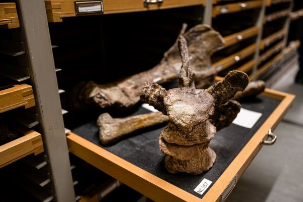 Bislang unbekannte Dinosaurier-Art in Südwestdeutschland identifiziert8. September 2022 Ingmar Werneburg (links) und Omar Rafael Regalado Fernandez halten einen Oberschenkel des Tuebingosaurus maierfritzorum. Foto: © Valentin Marquardt/ Universität Tübingen Paläontologen des Senckenberg Centre for Human Evolution and Palaeoenvironment an der Universität Tübingen haben eine unbekannte Dinosaurier-Gattung und -Art entdeckt. Tuebingosaurus maierfritzorum lebte vor etwa 203 bis 211 Millionen Jahren im Bereich der heutigen Schwäbischen Alb. Die neue Art, bei der es sich um einen Pflanzenfresser handelt, zeigt Ähnlichkeit mit den großen Langhalssauriern (Sauropoden) und wurde bei der erneuten Untersuchung von bereits bekannten Dinosaurierknochen identifiziert. Die Ergebnisse wurden in der Fachzeitschrift Vertebrate Zoology veröffentlicht. Die Versteinerungen, die Teil der Tübinger Paläontologischen Sammlung sind, waren in der Vergangenheit als Überreste von Plateosauriern interpretiert worden. In einem groß angelegten Projekt hatten die Wissenschaftler Dr. Omar Rafael Regalado Fernandez und PD Dr. Ingmar Werneburg sämtliche in Tübingen gelagerte Dinosaurierknochen neu untersucht. Sie stammen zu einem Großteil aus einem Steinbruch bei Trossingen am Rande der Schwäbischen Alb, wo seit dem 19. Jahrhundert zahlreiche Knochen von Dinosauriern gefunden und oft als Plateosaurier klassifiziert wurden. Nach wie vor unstrittig ist, dass diese Dinosauriergruppe vor etwa 200 Millionen Jahren in Teilen Europas sehr häufig vorkam. Heutigen Paläontologen ist allerdings auch bewusst, dass es bei der taxonomischen Einordnung in der Vergangenheit oft zu Ungenauigkeiten kam, weshalb manche Funde vorschnell in die Gattung der Plateosaurier aufgenommen wurden. Gattungsname ist eine Hommage an die Universitätsstadt Bei der erneuten Analyse eines 1922 in Trossingen gefundenen Skeletts, von dem vor allem der hintere Teil des Körpers erhalten ist, stellten Regalado Fernandez und Werneburg fest, dass viele Knochen nicht denen eines typischen Plateosauriers entsprachen. So wies das Teilskelett unter anderem eine breitere und kräftiger gebaute Hüfte mit verschmolzenen Kreuzbeinwirbeln sowie ungewöhnlich große und robuste Langknochen auf – beides spricht für eine Fortbewegung auf vier Beinen. Dies steht im Gegensatz zu den Plateosauriern, die den langhalsigen Sauropoden aus dem Jura zwar auch ähnelten, sich aber vermutlich noch auf zwei Beinen fortbewegten. Nach einem eingehenden Vergleich aller anatomischen Merkmale ordneten die Wissenschaftler das aus Trossingen stammende Teilskelett neu im Dinosaurier-Stammbaum ein und stellten fest, dass sie eine bislang unbekannte Art und Gattung entdeckt hatten. Tuebingosaurus maierfritzorum war mit großer Wahrscheinlichkeit schon ein Vierbeiner und demnach viel enger mit den später erscheinenden, großen Sauropoden wie beispielsweise Brachiosaurus oder Diplodocus verwandt als mit den Plateosauriern. Das umgebende Sedimentgestein und die Erhaltung der Knochen sprechen dafür, dass der gefundene Tuebingosaurus in einem sumpfigen Gebiet versank und zu Tode kam. Die Knochen der linken Körperseite waren vermutlich einige Jahre lang an der Oberfläche der Witterung ausgesetzt. „Sein Gattungsname, Tuebingosaurus, ist eine Hommage an unsere schöne Universitätsstadt und ihre Bewohner“, sagt Werneburg. Mit dem dazugehörigen Artnamen maierfritzorum ehre man wiederum die beiden deutschen Zoologen Professor Wolfgang Maier aus Tübingen sowie Professor Uwe Fritz von den Senckenberg Naturhistorischen Sammlungen Dresden. Die neue Art wurde nun in der aktuellen Ausgabe der Zeitschrift Vertebrate Zoology der Senckenberg Gesellschaft für Naturforschung beschrieben, die gleichzeitig als Festschrift Wolfgang Maier zum 80. Geburtstag gewidmet ist. Insgesamt konnten die Wissenschaftler in ihrem Projekt zeigen, dass die frühen europäischen Dinosaurier sehr viel diverser waren als bisher angenommen. Die Einzelteile des Skeletts von Tuebingosaurus maierfritzorum, die bislang getrennt gelagert wurden, sind nun wieder zusammengeführt und können derzeit in zwei großen Vitrinen besichtigt werden. In der Paläontologischen Sammlung in Tübingen sind, neben Tausenden anderer Schätze, auch zwei vollständige Plateosaurier aus Trossingen, Teilskelette von zwei Sauropoden und ein Stegosaurier aus Tansania zu bestaunen. Zwei Wirbel und weitere Knochen des Tuebingosaurus maierfritzorum. Foto: ©: Valentin Marquardt/ Universität Tübingen