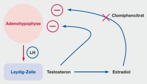 Clomifen erhöht Testosteronspiegel20. Mai 2019 Wirkungsweise von Clomifen. LH: Luteinisierendes Hormon. Grafik: Biermann Verlag, mod. nach Altwein Clomifen erhöhte in einer aktuellen US-amerikanischen Studie die Serumtestosteron- und Gonadotropinspiegel bei gesunden Männern signifikant und kann daher als leistungssteigerndes Medikament missbraucht werden. Das Ausmaß, in dem Testosteron bei gesunden Männern ansteigt, war bisher unbekannt. Es gab zudem Hinweise, dass Clomifen, ein Gemisch aus cis- und trans-Isomeren von Zuclomifen und Enclomifen, für Monate nach der Verwendung im Urin nachweisbar ist. Ein solcher Missbrauch ist mindestens vier Monate nach Kurzzeitgebrauch im Urin nachweisbar. An der einarmigen Open-label-Studie nahmen zwölf gesunde Männer im Alter von 25 bis 38 Jahren teil, die eine Freizeitsportlerpopulation repräsentierten. Orales Clomifencitrat 50 mg wurde 30 Tage lang einmal täglich selbst verabreicht. Serum- und Urinproben wurden zu Beginn und an den Tagen 7, 14, 21, 28, 30, 32, 35, 37, 44, 51 und 58 gesammelt. Die Urinsammlungen wurden bis zum Tag 261 regelmäßig fortgesetzt. Die mittleren Spiegel für Testosteron, Luteinisierendes Hormon (LH) und Follikelstimulierendes Hormon (FSH) stiegen während der Behandlung im Vergleich zum Ausgangswert um 146 Prozent (Standardfehler des Mittelwerts [SEM] ± 23 %), 177 Prozent (SEM ± 34 %) und 170 Prozent (SEM ± 33 %). Die Drogenkonzentration im Serum und die Ausscheidung im Urin waren bei Individuen ungleichmäßig, da die Isomerkonzentration variierte. Das Zeitfenster zur Erkennung von Zuclomifen im Harn lag zwischen 121 und >261 Tagen. (rl/ms) Literatur: Miller GD et al. Hypothalamic-Pituitary-Testicular Axis Effects and Urinary Detection Following Clomiphene Administration in Males. J Clin Endocrinol Metab 2019 Mar 1;104(3):906–914.