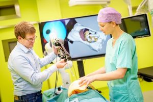 Computerassistierte Chirurgie: Vorhersagen, wann Klammer und Schere gebraucht werden20. Oktober 2020 Autonome Robotersysteme und weitere intelligente Assistenzsysteme sollen das OP-Team in Zukunft verstärkt unterstützen. Foto:©André Wirsig/ NCT/UCC Forschende haben mithilfe Künstlicher Intelligenz (KI) erstmals eine Methode entwickelt, mit der Computer die Nutzung chirurgischer Instrumente vor deren Einsatz vorhersehen können. Sie verwendeten dafür ein neuronales Netz, das sie mit einem spezifischen Anforderungsprofil versahen und mit Videos von realen Operationen trainierten. Die Fähigkeit intelligenter Softwarelösungen, Ereignisse im Operationssaal zu erkennen und zu interpretieren, ist eine wichtige Voraussetzung, um dem OP-Team situationsbezogene Assistenzfunktionen – beispielsweise durch Roboter – bereitstellen zu können. Die Ergebnisse ihrer Untersuchung stellten die Wissenschaftlerinnen und Wissenschaftler des Nationalen Centrums für Tumorerkrankungen Dresden (NCT/UCC) und des Zentrums für taktiles Internet mit Mensch-Maschine-Interaktion (CeTI) der TU Dresden im Rahmen der International Conference on Medical Image Computing & Computer Assisted Intervention (MICCAI) vor. Im Operationssaal der Zukunft werden computerbasierte Assistenzsysteme eine deutlich größere Rolle spielen als heute. Sie sollen Arbeitsabläufe einfacher und sicherer machen. „Möglich sind solche Unterstützungsfunktionen allerdings nur, wenn Computer in der Lage sind, wichtige Ereignisse im OP zu antizipieren und zur richtigen Zeit die richtigen Informationen bereit zu stellen“, erklärt Prof. Stefanie Speidel, Leiterin der Abteilung Translationale Chirurgische Onkologie am Nationalen Centrum für Tumorerkrankungen Dresden (NCT/UCC). Ein System, das die Nutzung bestimmter chirurgischer Instrumente vorhersehen kann, ist beispielsweise eine wichtige Voraussetzung für den Einsatz autonomer Robotersysteme, die einfache Teilaufgaben im OP wie das Absaugen von Blut übernehmen könnten. Zudem könnte es früh vor Komplikationen warnen, wenn diese mit dem Einsatz eines bestimmten Instruments verknüpft sind oder die Effizienz bei der Vorbereitung von Instrumenten erhöhen. „Wir verfolgen allerdings nicht die Vision, den Chirurgen durch einen Roboter oder andere Assistenzen zu ersetzen. Die intelligenten Systeme sollen lediglich eine helfende Hand sein und den Arzt und das gesamte OP-Team entlasten“, sagt Prof. Jürgen Weitz, geschäftsführender Direktor am NCT/UCC und Direktor der Klinik für Viszeral-, Thorax- und Gefäßchirurgie des Universitätsklinikums Dresden. Wissenschaftlern und Wissenschaftlerinnen am NCT/UCC und am CeTI ist es nun erstmals gelungen, eine Methode zu entwickeln, mit der Computer lernen können, den Einsatz chirurgischer Instrumente situationsbezogen wenige Minuten vor deren tatsächlichem Gebrauch vorherzusagen. Sie nutzten hierfür ein künstliches neuronales Netz, das als Teilgebiet der KI die Fähigkeit des Menschen nachahmt, anhand von Beispielen zu lernen. Den intelligenten Algorithmus versahen sie mit folgender mathematisch formulierten Aufgabenstellung: Ausgehend von der kontinuierlichen Analyse der Video-Bilder einer Operation soll die Nutzung bestimmter Instrumente wenige Minuten vor deren Einsatz angezeigt werden. In den dazwischenliegenden Zeitintervallen, in denen das jeweilige Instrument nicht genutzt wird, soll das neuronale Netz lernen, nicht zu reagieren. Anschließend trainierten sie das neuronale Netz mit 60 Videos von Gallenblasenentfernungen, die standardmäßig über ein optisches Instrument (Laparoskop) im Bauchraum aufgenommen wurden. In diesen Videos war das Auftreten von fünf verschiedenen Instrumenten markiert. Geringer Aufwand verspricht Praxistauglichkeit An 20 weiteren Videos musste das Neuronale Netz dann sein Wissen ohne entsprechende Markierungen unter Beweis stellen. Die Wissenschaftler konnten hierbei zeigen, dass das System wichtige Lernfortschritte erzielt hatte und die Instrumentennutzung vielfach korrekt vorhersagen konnte. Auch im Vergleich mit anderen Herangehensweisen zeigte die Methode vielversprechende Resultate. Dies ist auch deshalb bemerkenswert, da der gewählte Ansatz im Vergleich zu anderen Herangehensweisen deutlich anwendungstauglicher ist und zugleich die Lösung komplexer Aufgaben ermöglicht. So setzen bereits bestehende Forschungsansätze zur Vorhersage von Ereignissen aus Video-Daten vielfach auf engmaschige manuelle Markierungen in den Trainings-Daten. Ein Aufwand, der bei langen Operations-Videos in der Praxis nicht leistbar wäre. Andere Methoden nehmen den Zeitpunkt des Ereignisses als gegeben an. Das Netz hat dann lediglich die Aufgabe, zwischen verschiedenen möglichen Ereignissen zu entscheiden. „Wir konnten hingegen zeigen, dass ein künstliches neuronales Netz mit spezifischen Anpassungen und einer geeignet formulierten mathematischen Aufgabenstellung in der Lage ist, mit geringem Markierungs-Aufwand sinnvolle Aussagen über die Art des zu wählenden Instruments und den zeitlichen Horizont der Anwendung zu treffen“, sagt Erstautor Dominik Rivoir von der Abteilung Translationale Chirurgische Onkologie am NCT/UCC. Künstliche Neuronale Netze in der Medizin In vielen Bereichen unseres Lebens zählen Leistungen künstlicher neuronaler Netze heute schon selbstverständlich zu unserem Alltag, beispielsweise bei Produktempfehlungen auf Online-Verkaufsplattformen oder automatischer Bilderkennung auf Social Media. Die Netze sind in der Lage, Informationen aus Bilddaten zu extrahieren. Durch das Training mit großen Bild- oder Videomengen lernen sie, Muster in Bildern zu erkennen, um eine vorgegebene Aufgabe zu lösen. Die Entscheidungsfindung innerhalb des mathematischen Systems ist hierbei jedoch häufig so komplex, dass sie sich vom Menschen kaum noch nachvollziehen lässt. Gerade bei medizinischen Anwendungen sollen die Entscheidungen des Computers aber möglichst transparent sein, um mögliche Fehler 
