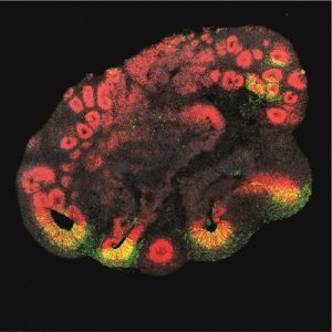 Das Gen, dem wir unser großes Gehirn verdanken14. September 2022 Ein etwa drei Millimeter großes Hirnorganoid, das aus Stammzellen eines Schimpansen hergestellt wurde. Die Hirnstammzellen sind rot angefärbt, in grün sind Hirnstammzellen zu sehen, die das Gen ARHGAP11B erhalten haben. (Quelle: Jan Fischer Deutsches Primatezentrum GmbH) Hirnorganoide liefern Einblicke in die Evolution des menschlichen Gehirns. ARHGAP11B – diesen komplexen Namen trägt ein Gen, das nur beim Menschen vorkommt und das eine wesentliche Rolle bei der Entwicklung des Neocortex spielt. Welche Bedeutung ARHGAP11B bei der Neocortex-Entwicklung im Verlauf der menschlichen Evolution hatte, hat ein Team aus Forscher*innen vom Deutschen Primatenzentrum (DPZ) – Leibniz-Institut für Primatenforschung in Göttingen, vom Max-Planck-Institut für molekulare Zellbiologie und Genetik (MPI-CBG) in Dresden und vom Hector Institut für Translationale Hirnforschung (HITBR) in Mannheim untersucht. Dazu hat das Team erstmals ein Gen, das nur im Menschen existiert, in im Labor gezüchtete Hirnorganoide unserer nächsten lebenden Verwandten, den Schimpansen, eingebracht. „In einer früheren Studie konnten wir zeigen, dass ARHGAP11B ein Primatengehirn vergrößern kann. Unklar war bislang aber, ob ARHGAP11B eine Haupt- oder nur eine Nebenrolle bei der evolutionären Vergrößerung des menschlichen Neocortex hatte“, sagt Wieland Huttner vom MPI-CBG. Um das zu klären, wurde das Gen zunächst in hirnventrikelähnliche Strukturen von Schimpansen-Organoiden eingebracht. Würde ARGHAP11B dazu führen, dass sich im Schimpansen-Gehirn jene Hirnstammzellen vermehren, die für die Vergrößerung des Neocortex notwendig sind? „Unseres Studie zeigt, dass das Gen in Schimpansen-Organoiden für eine Vermehrung der relevanten Hirnstammzellen und für einen Anstieg an jenen Nervenzellen sorgt, die eine entscheidende Rolle für die außergewöhnlichen geistigen Fähigkeiten des Menschen spielen“, sagt Michael Heide, federführender Hauptautor der Studie, Leiter der Nachwuchsgruppe Gehirnentwicklung und -evolution am DPZ und Mitarbeiter am MPI-CBG. Wurde das ARGHAP11B-Gen in menschlichen Hirnorganoiden ausgeschaltet oder die Funktion des ARHGAP11B-Proteins gehemmt, so sank die Menge dieser Hirnstammzellen auf das Niveau eines Schimpansen. „Wir konnten damit zeigen, dass ARHGAP11B bei der Neocortex-Entwicklung im Verlauf der menschlichen Evolution eine entscheidende Rolle spielt“, sagt Heide. Dem fügt Julia Ladewig vom HITBR, die dritte im Bunde der federführenden Autoren, hinzu: „In Anbetracht dieser wichtigen Rolle von ARHGAP11B ist es darüber hinaus denkbar, dass bestimmte Fehlentwicklungen des Neocortex möglicherweise durch Mutationen in diesem Gen verursacht werden.“