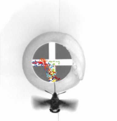 Den Rüssel stets im Blick behalten31. Januar 2024 Taubenschwänzchen (Macroglossum stellatarum) bei der Nahrungsaufnahme. Foto: © Anna Stöckl Ganz ähnlich wie wir Menschen beim Greifen nach Gegenständen nutzt das Taubenschwänzchen den Sehsinn, um seinen langen Rüssel auf der Suche nach Nektar zielgenau in der Blüte zu platzieren – so das Ergebnis einer Studie Konstanzer BiologInnen. Haben Sie schon einmal ein Taubenschwänzchen gesehen? Bei der ersten Begegnung sorgt dieser Falter oft für Verwunderung: Von seinem Aussehen her irgendwo zwischen Schmetterling und Vogel erstaunt das Tier außerdem durch seine Fähigkeit, wie ein Helikopter längere Zeit an ein und derselben Stelle zu schweben. Bei genauer Betrachtung fällt schnell ein weiteres Merkmal des Taubenschwänzchens ins Auge: der spiralförmig eingerollte Rüssel, der genauso lang ist wie das Tier selbst. Mit ihm saugt der Falter Nektar aus Pflanzenblüten, indem er den Rüssel im Flug durch winzige Öffnungen in die Nektarien der Blüten führt. Dass ihm dies scheinbar mühelos und in Sekundenschnelle gelingt, ist bewundernswert. „Das ist, als würden Sie versuchen, im Stehen mit einem langen Strohhalm die Öffnung einer Getränkedose am Boden zu treffen“, vergleicht Anna Stöckl, Biologin an der Universität Konstanz. In einer aktuellen Studie in der Fachzeitschrift PNAS untersuchten sie und ihre KollegInnen, welche Sinnesinformationen die Schmetterlinge für diese zielgenaue Steuerung des Rüssels verwenden. Sie fanden heraus, dass die Tiere – ganz ähnlich wie wir Menschen beim Greifen mit der Hand – durchgängig ihren Sehsinn (visuelles Feedback) nutzen, um die Bewegung des Rüssels auf dem Weg zum Nektar zu kontrollieren und gegebenenfalls zu korrigieren. Diese aufwändige Form der Gliedmaßensteuerung war bisher vor allem von Tieren mit vergleichsweise großem Gehirn – wie Affen oder Vögeln – bekannt. In „Zeitlupe“ auf den Rüssel geschaut Den Nachweis, dass sie auch bei Insekten vorkommt, erbrachten die Forschenden durch ausgefeilte Verhaltensexperimente, in denen Taubenschwänzchen beim Anflug auf künstliche Blüten mit Hochgeschwindigkeitskameras aufgezeichnet wurden. So konnten die genauen Positionen von Körper, Kopf und Rüssel der Falter mit hoher zeitlicher Auflösung ermittelt werden, während die Tiere auf der Suche nach Nektar waren. Dabei ist bekannt, dass Taubenschwänzchen sichtbare Muster in den Blüten nutzen, die sie mit ihrem Rüssel gezielt abtasten, um schneller an den Zuckersaft zu gelangen. Einzelbild eines Hochgeschwindigkeitsvideos der Experimente. Die Rüsselpositionen des Tieres auf der Blüte sind über eine Gesamtdauer von 30 Sekunden farbig markiert. Nicht zu sehen durch die Schwarzweißaufnahmen der Kamera: es handelte sich um ein gelbes Kreuzmuster auf blauem Grund. Foto: © AG Stöckl Die Bewegungsanalysen ergaben zunächst, dass Taubenschwänzchen ihren Rüssel nur etwa eineinhalb Zentimeter vor- und zurück- und so gut wie gar nicht seitwärts bewegen können. Die grobe Positionierung des Rüssels in der Blüte wird deshalb durch Bewegung des gesamten Körpers im Flug reguliert. Die kleineren Bewegungen des Rüssels selbst dienen dagegen der Feinsteuerung zum gezielten Abtasten des Blütenmusters. „Das ist ganz ähnlich wie bei unseren Fingern, die wir, abgesehen vom Daumen, ebenfalls vor allem vor- und zurückbewegen können. Trotzdem können wir mit ihnen sehr komplexe Bewegungsmuster im Raum durchführen, indem wir die Hand für die grobe Richtungsgebung mitbewegen – beispielsweise beim Klavierspielen“, so Stöckl. Insektengehirne sind Meister in Sachen Effizienz Doch es bestand noch eine weitere Ähnlichkeit zum Menschen: Genau wie wir, die wir bei ungeübten Handbewegungen genau hinschauen müssen, während sich unsere Finger zum Ziel bewegen, benötigten die Taubenschwänzchen durchgängig visuelle Information, um ihren Rüssel zielgenau zum Nektar zu manövrieren. Wurden ihre Augen in Richtung Rüssel verdeckt, fanden die Falter zwar noch mit dem Rüssel ins Blüteninnere, sie tasteten dieses aber nicht mehr entlang des Blütenmusters ab, sondern wahllos. Die Suche nach dem Zuckersaft dauert so im Zweifelsfall länger. Dass die Falter visuelles Feedback für die Feinsteuerung ihres Rüssels verwenden, war ein Stück weit überraschend, denn solch ein Echtzeitabgleich zwischen dem Gesehenen und der Rüsselbewegung im Raum ist rechnerisch aufwändig. Insekten besitzen jedoch mit weniger als einer Million Nervenzellen ein vergleichsweise einfaches Nervensystem. „Die Insekten müssen für diese Aufgabe mit einem winzigen Bruchteil der Verarbeitungskapazität auskommen, die zum Beispiel unserem Nervensystem zur Verfügung steht“, so Stöckl. Gerade das macht sie jedoch als Modellorganismus für die Erforschung der visuellen Steuerung von Gliedmaßen hochinteressant. „Und nicht nur das! Auch für Anwendungen, beispielsweise in der Robotik, sind diese kleinen Gehirne und ihre effiziente Arbeitsweise spannende Vorbilder. Wir können viel vom Taubenschwänzchen lernen“, ergänzt Stöckl.