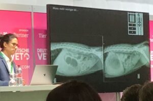 DeutscheVET – starkes Debüt in Dortmund2. Juni 2023 Jagdterrierhündin “Bruni” (3 J.) und die DeutscheVet Foto: © Sigrun Grombacher Inmitten vorbeiströmender schwarzgelber Massen von BVB-Fans fand am 26. und 27. Mai die DeutscheVet erstmals in den Messehallen in Dortmund statt. Das Meisterschaftswochenende tat der Veranstaltung keinen Abbruch. Dass Veränderungen das Salz des Lebens und stets eine Bereicherung sind, stellte die DeutscheVet am vergangenen Wochenende unter Beweis. Der Umzug nach Dortmund hat dem Kongress neues Leben eingehaucht, was sich in der guten Resonanz bei Tierärzten, Tiermedizinischen Fachangestellten und Ausstellern widerspiegelte. Auch die verbesserte Raumakustik in den Vorträgen hat sicherlich zum Gesamterfolg beigetragen. Bruni und Kumpel Marlu sind ganz Ohr Foto: © Sigrun Grombacher Das Event, das von der Stiftung Tierärztliche Hochschule Hannover unter Leitung von Prof. Holger Volk, Direktor der Kleintierklinik der TiHo, sowie der Thieme Group, vertreten durch Dr. Sandra Schmidt, Executive Editor Veterinary Medicine, und Daniel Katzer, CEO bei Hinte Expo & Conference GmbH organisiert wurde, lockte nach eigenen Angaben über 2000 Teilnehmende in die Dortmunder Messe. In vier Konferenzsälen konnten diese aus über 70 Vorträgen wählen. Schwerpunkthemen waren die Zahnheilkunde, Endokrinologie, Weichteilchirurgie sowie Epilepsiemanagement und Bildgebung. Neueste Erkenntnisse aus Großbritannien Wie gewohnt überzeugten die von der Insel angereisten Kollegen das Publikum durch aktuelle, qualitativ hochkarätige Vorträge. Allen voran Internist Prof. Stijn Niessen, der neben viel Humor auch gute empathische Fähigkeiten bewies und den Tierärzten vor Augen führte, dass die Bekundung von Interesse und Anteilnahme in der Kommunikation mit den Tierhaltern „wenig kostet, aber viel bringt“. Gerade bei Erkrankungen wie Diabetes mellitus oder dem Hypo- und Hyperadrenokortizismus, die allesamt eine gute Zusammenarbeit von Tierarzt und Tierbesitzer erforderlich machen, kann es niemals schaden, dem Tierbesitzer zu signalisieren: Ich sehe auch Dein Leid, nicht nur das Deines Tieres. Prof. Stijn Niessen Foto: © SG Insbesondere die Vorstellung von DiabEasy, einer Methode, die in der Diabetesbehandlung auf fünf sogenannte „Wahrheiten“ resp. Grundsätze abzielt, lag Niessen am Herzen. Die sicherlich fundamentalste dieser Wahrheiten: Die klinischen Symptome lügen nicht – die Behandlung sollte sich demnach stark auf die klinischen Anzeichen resp. ihre Beseitigung richten. Wichtigstes Kommunikationsmittel stellt hierbei der international anerkannte Diabetic Clinical Score dar. Auch im Fokus steht dabei die Vermeidung von Hypoglykämien. Da Glukosekurven von Tag zu Tag variieren können, sollte die Behandlung nicht auf eine perfekte Glukosekurve ausgerichtet sein, sondern sich am Patienten und seinen individuellen Problemen orientieren. Neben weiteren „Wahrheiten“ scheint auch diese richtungsweisend: Zukünftig wird die kontinuierliche Blutglukosemessung als beste verfügbare Methode zum Screening auf Hypoglykämien die althergebrachte Bestimmung der Blutglukosekurve ersetzen. Die neuen Systeme seien zudem relativ preiswert, einfach anzuwenden und gut verfügbar. Auch in Sachen Therapeutika wagte Niessen einen Ausblick in die Zukunft. So würden in den nächsten Jahren neue Diabetesmedikamente für Tiere eingeführt, so etwa der SGLT-2(Sodium-Glucose-Co-transporter 2)-Hemmer Velagliflozin mithilfe dessen viele diabetische Katzen zukünftig oral behandelt werden könnten. Für Tiere, die weiterhin Insulininjektionen benötigten, wird ein neuer Insulintyp verfügbar sein, der im wöchentlichen oder zweiwöchentlichen Turnus verabreicht werden müsse, sodass die täglichen Insulininjektionen entfallen würden. Eine weitere, bereits praktizierte, Strategie setze primär auf die Gewichtsreduktion bei diabetischen Katzen durch Ernährungsinterventionen. So ist bekannt, dass ein Gewichtsverlust bei adipösen Katzen im ersten Monat nach der Diagnose des Diabetes die Wahrscheinlichkeit für eine Remission bis zu 15-fach erhöht. Laut Niessen sähe die Zukunft der Diabetes-Therapie bei Hund und Katze rosig aus und die Tierärzte könnten dem nächsten diabetischen Patienten mit Gelassenheit begegnen. Niessen’s Vorträge, einschließlich einem über die Do’s und Don’ts beim Patienten mit respiratorischen Symptomen, waren durch große Menschlichkeit geprägt, der „Königsdisziplin“ des Internisten. Am Freitagabend Foto: © SG Foto: © SG Prof. Holger Volk Foto: © SG Die „Leiche im Keller” oder wenn Sie keinen Fremdkörper finden, wo Sie einen vermuten Adriano Wang Leandro stellte in seinem Vortrag zur Bildgebung bei Thoraxpathologien die im jeweiligen Fall bestmöglich zu wählende Bildgebung vor. In vielen Fällen war dies noch immer die Röntgenaufnahme, aber CT, MRT und Ultraschall würden immer häufiger flankierend zur Diagnosefindung eingesetzt, so der Oberarzt für Bildgebung der TiHo Hannover. Letztendlich hänge die Wahl der geeigneten Technik stets vom klinischen Szenario ab. Auch erläuterte er die Fluoroskopie, mit deren Hilfe Echtzeitdarstellungen komplexer Vorgänge wie Schlucken, Atmung oder Ösophagusmotilität möglich sind, und die bevorzugt bei Fällen von Dysphagie oder Dilatation der Speiseröhre eingesetzt wird. Sie kann auch hilfreich sein bei einem dynamischen Kollaps von Trachea oder Bronchien. In seinem zweiten Beitrag „Fremdkörper vermutet – Fremdkörper nicht gefunden“ verriet er Tipps und Tricks für eine bessere abdominale Bildgebung. Hier berichtete der Spezialist von einem Patienten, bei dem er so hartnäckig versucht hatte, einen vermuteten Fremdkörper darzustellen, dass er den Blick für das Wesentliche ein wenig aus den Augen verloren habe. Adriano Wang Leandro und seine “Leiche im Keller” ohne Leiche … Foto: © SG Der als sogenannte „Leiche im Keller“-deklarierte Fall, stand stellvertretend für
