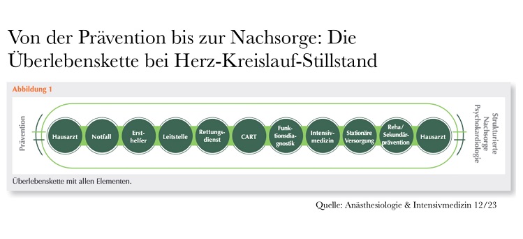 DGAI unterstützt Lauterbachs Initiative zur Herzvorsorge: Prävention als Schlüssel gegen den plötzlichen Herztod23. April 2024 Symbolbild: ©New Africa/stock.adobe.com Die Deutsche Gesellschaft für Anästhesiologie und Intensivmedizin e.V. (DGAI) begrüßt die Initiative von Bundesgesundheitsminister Karl Lauterbach, die regelmäßige Herzvorsorge als Kassenleistung anzuerkennen. Dieser Schritt sei eine wichtige Maßnahme zur Verringerung der Todesfälle durch plötzlichen Herztod. Gemeinsam mit Experten aus verschiedenen Fachbereichen setzen sich Fachärztinnen und Fachärzte für Anästhesiologie intensiv für verbesserte Überlebenschancen nach einem plötzlichen Herz-Kreislauf-Stillstand ein. Als Trägerin des Deutschen Reanimationsregisters organisiert die DGAI in Zusammenarbeit mit dem Berufsverband Deutscher Anästhesistinnen und Anästhesisten e.V. (BDA) regelmäßig die Bad Boller Reanimations- und Notfallgespräche. Dort wurde erst kürzlich ein Update der „10 Thesen für 10.000 Leben“ veröffentlicht, bei dem die klassische Rettungskette zur „Überlebenskette“ erweitert wurde (wir berichteten hier und hier). Diese beginnt nicht erst mit der Notfallsituation, sondern nimmt die Prävention eines außerklinischen Herz-Kreislauf-Stillstandes mit auf – ein Anliegen, das auch nun auch durch die Initiative des Bundesgesundheitsministers aufgegriffen wird. Grafik: Im Rahmen des Updates der „10 Thesen für 10.000 Leben“ wurde die klassische Rettungskette zur „Überlebenskette“ erweitert. (© DGAI e.V.) „Der plötzliche Herztod ist meist nicht plötzlich, sondern kündigt sich durch frühe Warnzeichen an und ist vermeidbar, insbesondere bei jungen, scheinbar gesunden Personen“, betont Prof. Jan-Thorsten Gräsner, Sprecher der Sektion Notfallmedizin der DGAI. Symptome wie unklare Synkopen (kurzzeitige Bewusstlosigkeit), Krampfanfälle, kardiale Palpitationen (Herzrasen oder Herzstolpern), Dyspnoe (Atemnot) oder Brustschmerzen, vergleichbar mit einem Herzinfarkt, können auf eine zugrundeliegende Erkrankung hinweisen. „Bei Auftreten solcher Symptome ist eine umgehende medizinische Untersuchung und Behandlung notwendig, um lebensbedrohliche Situationen zu verhindern“, ergänzt PD Dr. Jan Wnent, Sprecher des Arbeitskreises Notfallmedizin innerhalb der DGAI. Das vorgeschlagene Gesetz zur Herzvorsorgeuntersuchung biete die Möglichkeit, frühzeitig erkennbare und behandelbare Erkrankungen zu identifizieren. Die DGAI betont die Notwendigkeit, dabei auch die genetische Komponente in den Fokus zu nehmen. Genetische Aufklärung kann dazu beitragen, Familienmitglieder mit einem erhöhten Risiko frühzeitig zu identifizieren und entsprechende präventive Maßnahmen zu treffen. Dies beinhaltet auch die Ursachenklärung nach einem überlebten plötzlichen Herz-Kreislauf-Stillstand sowie standardisierte Obduktionen bei Verstorbenen nach solch einem Ereignis. In Deutschland erleiden jährlich etwa 113.000 Menschen einen Herz-Kreislauf-Stillstand, ein Drittel davon im erwerbstätigen Alter. In rund 60.000 Fällen wird mit Wiederbelebungsmaßnahmen begonnen. Von diesen Patienten erreichen 33 Prozent lebend das Krankenhaus, elf Prozent können es letztlich lebend verlassen – nur 5000 davon ohne neurologische Folgen. Vor diesem Hintergrund ruft die DGAI zu einer verstärkten Sensibilisierung der Bevölkerung für die Symptome des plötzlichen Herztodes auf und unterstreicht die Bedeutung von Prävention und Früherkennung für eine verbesserte Herzgesundheit in Deutschland. „Jede verhinderte Reanimation ist die beste Situation für die Patienten“, so Gräsner.