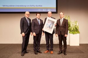DGU-Preise verliehen2. November 2017 Preisträgerin Elizabeth Rosado Balmayor flankiert von Reinhard Hoffmann (li.) und Ingo Marzi (r.). Foto: Intercongress Im Rahmen des “Kongressfinales” auf dem DKOU 2017 in Berlin wurden unter anderen auch zwei Preise der DGU vergeben. Dr. Elizabeth Rosado Balmayor erhielt den Hans-Liniger-Preis, Dr. Klemens Horst den Innovationspreis der DGU. Privatdozentin Dr. Elizabeth Rosado Balmayor vom Klinikum rechts der Isar der Technischen Universität München wurde mit dem Hans-Liniger-Preis 2017 der DGU geehrt. Die Auszeichnung zur Förderung des wissenschaftlichen Nachwuchses ist mit 10.000 Euro verbunden. In ihrer Arbeit „Strategische Ansätze zur Verwendung von Bone Morphogenetic Protein für das Bone Engineering“ hat die 40-jährige Forscherin einen gentherapeutischen Ansatz zur Behandlung von Knochendefekten entwickelt, bei dem chemisch modifizierte Ribonukleinsäure-Moleküle (RNA) Zellen dazu anregen, Faktoren für das Knochenwachstum herzustellen. Rosado Balmayor konnte zeigen, dass die so veränderten Stammzellen sich ohne Nebenwirkungen zu knochenbildenden Zellen entwickeln. Preisträger Klemens Horst mit den Gratulanten. (Foto: Intercongress) Dr. Klemens Horst von der Uniklinik RWTH Aachen wurde mit dem Innovationspreis 2017 der DGU ausgezeichnet. Der Preis für diagnostische oder anwendungstechnische Neuerungen ist mit 10.000 Euro dotiert und wird von DePuy Synthes gestiftet. In seiner Arbeit „Characterization of blunt chest trauma in a long-term porcine model of severe multiple trauma“ hat der 35-Jährige ein klinisch-relevantes Langzeitmodell zu stumpfen Thorax- und Kombinationstraumata aufgestellt. Das Modell ermöglicht es, zu unterschiedlichen Zeitpunkten Faktoren zu untersuchen, die zur Entwicklung eines Lungenversagens beitragen können. Um Lungenschäden sichtbar zu machen, wird dabei das strahlungsarme bildgebende Verfahren der Elektrischen Impedanztomographie (EIT) direkt am Patientenbett angewendet, was sich auf die Beatmungsstrategien auswirkt.