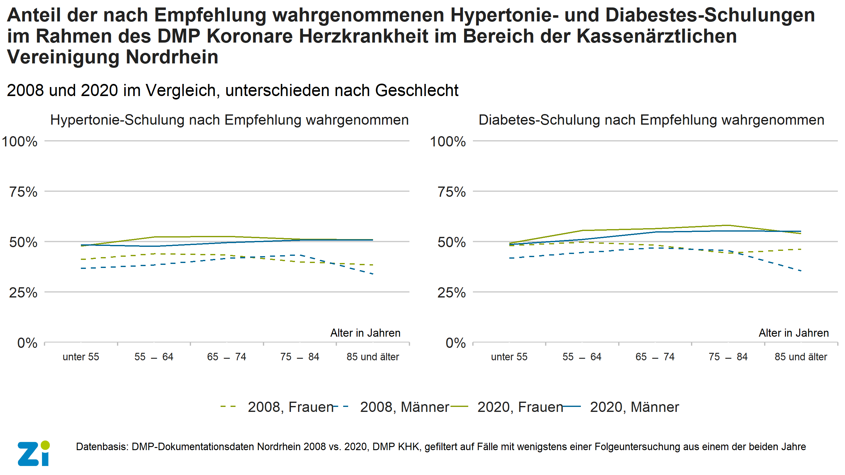Disease-Management-Programm Koronare Herzkrankheit: Schulungsquoten bei Älteren gestiegen5. April 2022 Foto: ©Robert Kneschke – stock.adobe.com Eine aktuelle Analyse des Zentralinstituts für die kassenärztliche Versorgung (Zi) mit Daten der Region Nordrhein zeigt, dass sich die Schulungsquoten im Disease-Management-Programme (DMP) Koronare Herzkrankheit (KHK) im Zeitverlauf deutlich verbessert haben – sowohl hinsichtlich einer Hypertonie- wie auch einer Diabetes-Schulung. Dies gab das Zi in der letzten Woche bekannt. Frauen folgten demnach der Empfehlung für eine Schulung etwas häufiger als Männer. Bemerkenswert ist laut Zi zudem, dass sich im Jahr 2020 gerade auch die älteren Patientinnen und Patienten anteilig mindestens so häufig an Schulungen beteiligten wie jüngere. Auch die absolute Beteiligung der ältesten Patientinnen und Patienten an einer Schulung sei gegenüber dem Jahr 2008 stark angewachsen. Im Jahr 2008 habe die Zahl der 85-Jährigen und Älteren, die eine Schulung wahrgenommen hatten, 488 (Hypertonie) bzw. 180 (Diabetes mellitus) betragen. Im Jahr 2020 waren es im Vergleich 2888 (Hypertonie) bzw. 1607 (Diabetes mellitus). Insgesamt waren im DMP KHK in Nordrhein 186.599 (2008) bzw. 262.014 (2020) Patientinnen eingeschrieben. Quelle: Zi DMPs sind strukturierte Behandlungsprogramme für chronisch Kranke. Menschen mit bestimmten chronischen Krankheiten können sich in ein solches Behandlungsprogramm einschreiben lassen. Damit soll eine über Einrichtungsgrenzen hinaus koordinierte Behandlung unterstützt werden, um unnötigen Komplikationen, Krankenhausaufenthalten und Folgeschäden vorzubeugen. Zugleich sollen die eingeschriebenen Patientinnen und Patienten darin unterstützt werden, aktiv an der Behandlung mitzuwirken. Daher sollen sie empfohlene Schulungen möglichst rasch wahrnehmen. „Diese Ergebnisse zeigen, dass es den Hausärztinnen und Hausärzten gelungen ist, im DMP KHK sogar die ältesten Betreuten zu der angestrebten aktiven Teilnahme zu motivieren. Dieser Erfolg ist vor allem deswegen bedeutsam, weil im Rahmen des neuen DMP für eine chronische Herzinsuffizienz zukünftig vermutlich ähnliche Altersgruppen wie im DMP KHK betreut werden“, sagte der Zi-Vorstandsvorsitzende Dr. Dominik von Stillfried. Das Zi hat die Daten aus dem strukturierten Behandlungsprogramm KHK für die Jahre 2008 und 2020 aus der Region Nordrhein (Regierungsbezirke Köln und Düsseldorf) verglichen. Eigenen Angaben zufolge wählte das Zi das Jahr 2008 als Basisjahr, weil in diesem Jahr einerseits die elektronische DMP-Dokumentation allgemein verpflichtend eingeführt worden ist, andererseits seither DMP-Daten indikationsübergreifend und indikationsspezifisch getrennt erfasst werden.
