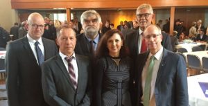 Dr. Nahlah Saimeh verabschiedet sich aus Eickelborn4. Mai 2018 Verabschiedeten Dr. Nahlah Seimeh (vorne Mitte) (hinten v.l.) Maßregelvollzugsdezernent Tilmann Hollweg, Landesbeauftragter für den Maßregelvollzug, Uwe Dönisch-Seidel, Pflegedirektor Bernd Sternberg , (vorne v.l.) Kaufmännischer Direktor Ottmar Köck, LWL-Direktor Matthias Löb. (Foto: LWL) Nach knapp 14 Jahren als Ärztliche Direktorin hat sich Dr. Nahlah Saimeh vom Zentrum für Forensische Psychiatrie Lippstadt des Landschaftsverbandes Westfalen-Lippe (LWL) verabschiedet. “Sie haben das LWL-Zentrum zu einer modernen und bundesweit anerkannten forensischen Klinik weiterentwickelt, die dem Sicherheitsbedürfnis der Allgemeinheit Rechnung trägt, aber auch dem Interesse der Patienten nach einer qualitativ hochwertigen Behandlung und Nachsorge”, würdigte LWL-Direktor Matthias Löb, die anerkannte Forensikerin, die sich entschlossen hat, ihre Tätigkeit im LWL-Zentrum aufzugeben, um künftig als forensisch-psychiatrische Sachverständige selbstständig zu arbeiten. Saimeh habe in einer der größten deutschen forensischen Kliniken die Lockerungspraxis und die Einschätzung von Rückfallrisiken wie auch die Spezialisierung der Behandlungsprogramme weiter professionalisiert, so Löb. Unter ihrer Führung sei die forensische Nachsorge sehr erfolgreich im LWL-Zentrum etabliert worden. Und Saimeh habe sich in den 14 Jahren sehr hohes Ansehen vor Ort in Eickelborn erworben: “Die Bevölkerung vertraut ihr. Denn sie strahlt immer Kompetenz und Sicherheit aus und hat eine Antenne für das Anliegen und Bedürfnisse der Bürger”, würdigte Löb. Saimeh will sich künftig als forensisch-psychiatrische Sachverständige in Düsseldorf niederlassen und sowohl als Gutachterin vor Gericht als auch in der Fortbildung für forensische Psychiater tätig sein. Die Suche nach einer Nachfolge für die Position der Ärztlichen Direktion des LWL-Zentrums in Eickelborn dauert an, das Ausschreibungsverfahren läuft derzeit noch.