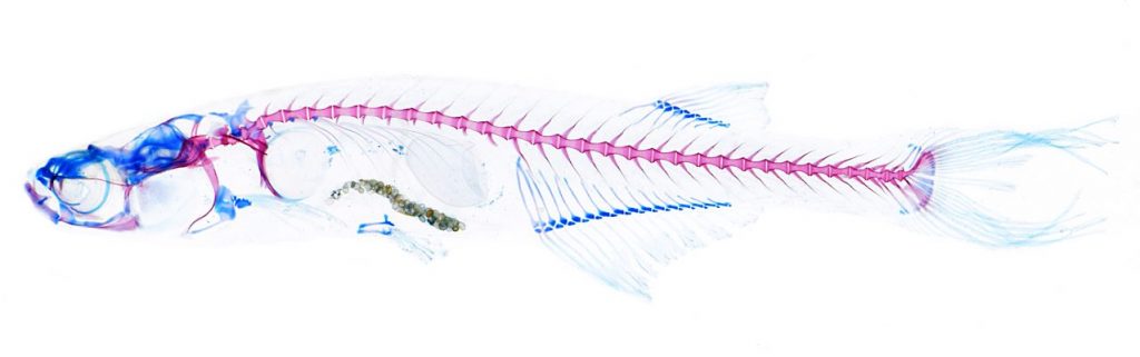 Durchsichtig mit winzigem Gehirn: Neue Fischart in Myanmar entdeckt24. September 2021 Ein circa 10 Millimeter großes adultes Männchen der neu entdeckten Art Danionella cerebrum. Foto: © R. Britz/Senckenberg Senckenberg-Wissenschaftler Ralf Britz hat mit internationalen Kollegen eine neue Art aus der Fischgattung Danionella beschrieben. Aufgrund der fehlenden Schädeldecke und des transparenten Körpers ist das Gehirn der winzigen Fische im Lebendzustand sichtbar. Sie gelten daher als ideale Modellorganismen für neurophysiologische Forschung. Die Neuentdeckung wird heute im Fachjournal „Scientific Reports“ vorgestellt. Ihre Miniaturgröße, ihre Anatomie und ihre Entwicklung verknüpft mit einem hochspezialisierten Kommunikationssystem machen die Fische der Gattung Danionella zu einem wichtigen Modellorganismus für neurophysiologische Studien. „Insbesondere die Zwergenhaftigkeit dieser nur zwischen 11 und 17 Millimeter großen Fische aus der Familie der Karpfenähnlichen macht die Unterscheidung ihrer Arten sehr schwierig. Gerade bei Modellorganismen muss aber die Artzugehörigkeit natürlich geklärt sein“, erläutert Dr. Ralf Britz von den Senckenberg Naturhistorischen Sammlungen in Dresden.Britz und seinen Kollegen Kevin Conway von der Texas A&M University und Lukas Rüber vom Naturhistorischen Museum in Bern ist es nun gelungen eine neue Art der Gattung zu beschreiben. „Mit Hilfe einer Kombination von klassischen, taxonomischen Methoden und molekularen Ansätzen konnten wir zeigen, dass der ursprünglich in mehreren Laboren international als Danionella translucida neurowissenschaftlich untersuchte Fisch eigentlich eine bislang unbekannte Art darstellt“, ergänzt Britz. Der winzige Fisch als Aufhellpräparat. Foto: © R. Britz/Senckenberg Die neu entdeckten Fische sind höchstens 13,5 Millimeter lang und leben in verschiedenen Flüssen an den südlichen und östlichen Ausläufern des Bago Yoma-Gebirges in Myanmar. Dort halten sie sich am liebsten in den kühleren nur 25 Grad Celsius warmen Schichten unterhalb von etwa 30 Zentimeter Tiefe auf. „Sowohl in ihrer Lebensweise, als auch in ihrer äußeren Gestalt sind die Fische fast identisch mit der schon bekannten Art Danionella translucida, deren Lebensraum sie auch teilen – ihre inneren Merkmale unterscheiden sich aber in einigen Bereichen signifikant. Und auch unsere genetischen Untersuchungen zeigen, dass hier nur ein entferntes Verwandtschaftsverhältnis besteht“, so der Dresdner Ichthyologe.Das internationale Team hat den kleinen Fisch daher neu beschrieben und benannt. Der neue Artname Danionella cerebrum macht mit dem Zusatz cerebrum, lateinisch für „Gehirn“, darauf aufmerksam, dass der Fisch eines der kleinsten bekannten Wirbeltier-Gehirne besitzt. Originalpublikation: Britz, R., Conway, K.W. & Rüber, L. The emerging vertebrate model species for neurophysiological studies is Danionella cerebrum, new species (Teleostei: Cyprinidae). Sci Rep 11, 18942 (2021). https://doi.org/10.1038/s41598-021-97600-0