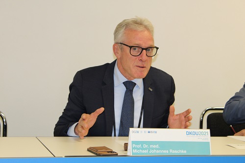 Echtzeitüberwachung der Knochenheilung nach Brüchen: „Aus Science-Fiction-Technik wird Therapie-Realität“27. Oktober 2021 Michael J. Raschke präsentierte das Fracture-Monitor-System auf dem DKOU (Foto: hr, Biermann Medizin) Wie stabil ist eine Fraktur versorgt? Darf der Patient bereits voll belasten oder nicht? Solche Fragen könnten zukünftig leichter beantwortet werden, indem die Knochenheilung live auf dem Handy verfolgt werden kann. Diese Weltneuheit, die 2022 in einer europaweiten prospektiven klinischen Studie der AO-Forschungsstiftung untersucht werden wird, wurde auf dem DKOU vorgestellt. Es oblag dem Kongresspräsidenten Prof. Michael Johannes Raschke, derin der AO Trauma die Kommission für Innovationen und neuen Entwicklungen (AOTC), mit Sitz in Davos (Schweiz) leitet, wegweisende Entwicklungen im Fach auf einer Pressekonferenz vorzustellen. Darunter das sogenannte Fracture-Monitor-System – ein „intelligentes Implantat“, das aus einem Bluethooth-Chip besteht, der auf einer Platte aufgesetzt werden kann. „Wir versprechen uns davon eine Zeitenwende in der Frakturversorgung, die völlig anders sein wird als das, was wir bisher gemacht haben“, betonte Raschke. Es sei nichts anderes als eine Revolution in der Therapiequalität. „Nun können wir in Echtzeit beurteilen, wie der Heilungsprozess bei Brüchen verläuft. Wir sehen, ob Medikamente wie gewünscht wirken oder wie unsere Therapieempfehlungen den Patienten voranbringen.“ Diese „Intelligenten Implantate“ platziert der Chirurg oder die Chirurgin im Bereich der Fraktur. Sensoren übermitteln dann Informationen über die Stabilität und die Verformungen des Knochens auf ein handelsübliches Handy, was Auskunft über den Heilungsprozess gibt. Raschke, demonstrierte das System an einem Modell. Ein künstlicher Oberschenkelknochen mit eingebauter Fraktur, die einen Heilungsprozess simulieren kann. Fixiert ist Fraktur durch eine handelsübliche Platte, an welcher der Chip angebracht ist. Sobald am Knochenende Kräfte mit den Händen eine Belastung auf den Knochen beziehungsweise die Fraktur ausüben, erscheinen auf dem Handymonitor Ausschläge von Kurven, die diese Kräfte widerspiegeln. Je besser der Knochen verheilt ist, desto geringer werden die Ausschläge oder übersetzt: Je härter der Knochen wird, desto stabiler wird er auch. Das könnten Ärzte nun exakt messen, so Raschke. Hinzu kommt, dass nun „sogar auch der Patient selbst auf seinem Handy verfolgen kann, wie die Frakturheilung voranschreitet“, erklärte der Direktor der Klinik für Unfall-, Hand- und Wiederherstellungschirurgie am Universitätsklinikum Münster. „Bei der Bewertung der Frakturheilung müssen wir uns bisher auf die eigene Erfahrung, die Befragung des Patienten sowie die Bildgebung stützen. Was direkt am Knochen passiert, solche Daten konnten wir bisher nicht messen“, erklärte Raschke. Dass man nun exakte Messungen am Knochen durchführen kann, „ermöglicht uns auch eine Neuorientierung bezüglich dessen, was wir bisher als Ärzte bewirken konnten“, so Raschke weiter. So könnten Ärzte und Ärztinnen nun leichter Rückschlüsse ziehen, wie etwa Rehabilitationsmaßnahmen wirken. Diese Daten ermöglichten es wiederum früh Interventionen zur Verbesserung des Heilungsprozesses anzuordnen, was die Behandlungszeit und die Kosten reduziert. Kongresspräsident Michael J. Raschke stellte auf dem DKOU innovative Entwicklungen in O&U vor und warnte vor einer Überregulierung des Marktes, die solche Innovationen verhindern könnten. (Foto: hr, Biermann Medizin) Die prospektive Studie zum Fracture-Monitor-System, die im Frühjahr 2022 in Europa startet und an der auch 15 Zentren in Deutschland beteiligt sein werden, wird ein halbes Jahr lang die Daten in der Klinik sammeln und auswerten. „Wir werden darüber zu ganz neuen Ergebnissen und Erkenntnissen gelangen und versprechen uns davon neue Wege in der Frakturversorgung“, ist Raschke überzeugt. Die neuen Implantate sind vor allem für „Problem“-Patientinnen und -Patienten mit schwieriger oder gestörter Frakturheilung gedacht. Laut Raschke gehören dazu etwa ältere Menschen mit einer bereits bestehenden Knie- und Hüftprothesenversorgung, bei denen oft zusätzlich eine Oberschenkelfraktur auftritt. Auch wenn diese Patientengruppe nicht zwingend das Monitoring auf dem Handy selbst verfolge, könne er diese Daten bequem an das Ärzteteam weiterleiten oder sie dem Arzt vor Ort zeigen. Der Arzt wiederum könne so den Heilungsfortschritt besser vermitteln, wie sich etwa der Einsatz von Medikamenten oder eine Teil- oder Vollbelastung auf den Knochen auswirken. Etwa jeder zehnte Patient oder jede zehnte Patientin mit Knochenbrüchen leidet unter einer gestörten Knochenheilung. Genau hier sieht der DKOU-Präsident mittels der innovativen Technik für die Zukunft deutliche Verbesserungen für die Patienten und Patientinnen, da nun rechtzeitig auf den Heilungsprozess Einfluss genommen werden kann. „Aus Science-Fiction-Technik wird Therapie-Realität“, so Raschkes Fazit zur Echtzeitinformation über die Knochenheilung. „In fünf bis zehn Jahren wird ein 3-D-Drucker neben jedem OP-Tisch stehen“ Eine weitere Entwicklung bewertet Raschke, der zugleich stellvertretender Präsident der DGOU ist, als zukunftsweisend: die Herstellung patientenindividueller Implantate mittels 3-D-Technik, die im Bereich der Traumatologie noch nicht abgeschlossen sei. „In fünf bis zehn Jahren wird ein 3-D-Drucker neben jedem OP-Tisch stehen. Dann erstellt der 3-D-Drucker individuelle Platten bei komplizierten Frakturen“, zeigte sich Raschke überzeugt. Der Experte vermutet, dass in naher Zukunft bei Frakturen, die bei der Computertomographie zu sehen sind, mit Augmented Reality gearbeitet wird. Dabei wird eine Platte virtuell am Bildschirm perfekt angepasst und diese Informationen werden direkt „per Knopfdruck“ an den 3-D-Drucker gesendet. „Das hört sich teuer an und ist es zunächst