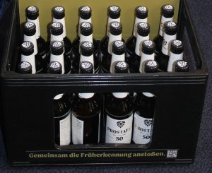 Ein Bier für die Prostata23. September 2022 Ein Kasten Bier geht immer. Foto: Schmitz Um mehr Männer für die Prostatakrebs-Früherkennung zu sensibilisieren, holt die Deutsche Gesellschaft für Urologie die Herren mit einem niedrigschwelligen Angebot ab: einer Flasche Bier. “PROSTATA!” lautet die DGU-Biermarke und stößt damit (auf) die Früherkennung an. Es handelt sich um ein alkoholfreies Weizenbier aus einer norddeutschen Brauerei. Die DGU sei sich sehr wohl der aktuellen Diskussion um Alkohol und Krebs bewusst, betonte Pressesprecher Prof. Christian Wülfing, Hamburg, beim 74. DGU-Kongress in seiner Heimatstadt. Daher habe man sich für ein alkoholfreies Bier entschieden. Das Bier soll natürlich nicht nur wohlschmecken, sondern führt mit einem Barcode auf dem Rückenetikett zu der Aufklärungs-Website “prostata-checken.de”. Speziell angesprochen sind Männer ab 50 Jahre, was die Zahl auf dem Etikett signalisiert und beim Aufruf der Website betont wird. Dort prost(at)et dem Besucher als erstes der Entertainer Mickie Krause zu. “Gemeinsam auf die Früherkennung anstoßen”, das tun neben dem “Ballermann”-Star auch TV-Urologe Udo Schenk aus der “Sachsenklinik”, die Handball-Stars Uli und Michael Roth sowie der Fußball-Experte Rainer Calmund. Unter der Überschrift “Wir tasten uns an das Thema ran” werden dann die Stufen der Früherkennung laienverständlich erklärt: von der digital-rektalen Untersuchung und den PSA-Test über Ultraschall und MRT bis zu einer möglichen Biopsie. “Jetzt weißt du aber wirklich Bescheid. Mach deinen Termin”, heißt es abschließend. Und wem das Bier besonders gut geschmeckt hat, kann es auf der Website sogar bestellen. (ms)