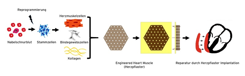 Ein „Herzpflaster“ aus Stammzellen11. Februar 2021 Beispiele für Herzpflaster in verschiedenen Darreichungsformen. Foto: © umg/pharmakologie, Erstmals Anwendung am Menschen: Die Studie BioVAT-HF-DZHK20 untersucht die Anwendung von Herzmuskelgewebe aus Stammzellen bei PatientInnen mit schwerer Herzschwäche. Durch Einbau von im Labor gezüchtetem Herzmuskelgewebe soll die Pumpfunktion insuffizienter Herzen nachhaltig verbessert werden. Die multizentrische klinische Studie beginnt mit der Rekrutierung von PatientInnen mit terminaler Herzinsuffizienz in Göttingen. Weltweit sind 60 Millionen PatientInnen von Herzmuskelschwäche betroffen. Allein in Deutschland leiden 4 Millionen an Herzmuskelschwäche. Mit etwa 500.000 Fällen pro Jahr ist die Herzmuskelschwäche die häufigste Ursache für eine Krankenhausaufnahme. Nun hat das Paul-Ehrlich-Institut erstmalig die Prüfung eines Herzmuskelpräparates aus Stammzellen, sogenannte Herzpflaster, genehmigt. Nach mehr als 25 Jahren Forschung und präklinischer Entwicklung wird derzeit am Herzzentrum der Universitätsmedizin Göttingen (UMG) die klinische Studie BioVAT-HF-DZHK20 zur „Sicherheit und Wirksamkeit von aus induzierten pluripotenten Stammzell-abgeleitetem menschlichem Herzmuskelgewebe bei terminaler Herzinsuffizienz“ eingeleitet, wie das UMG bekannt gibt. Der neuartige biologische Therapieansatz, der laut UMG-Angaben in dieser Art weltweit das erste Mal zur Anwendung kommt, wurde in Göttingen entwickelt. Dabei wird aus Stammzellen hergestelltes Herzmuskelgewebe auf das erkrankte Herz von PatientInnen mit Herzmuskelschwäche aufgebracht, um es zu stärken. Die Forschungsarbeiten, die zur Überführung der Methode vom Labor in die klinische Anwendung am Patienten nötig waren, wurden dem UMG zufolge ganz wesentlich am Deutschen Zentrum für Herz-Kreislauf-Forschung (DZHK), Standort Göttingen, durchgeführt. Prozess von Nabelschnurblut zur Herzpflaster-Implantation. Grafik: ©umg/pharmakologie Insgesamt 53 PatientInnen sollen in die Studie BioVAT-HF-DZHK20 aufgenommen werden. Rekrutiert werden diese an der UMG sowie am Universitätsklinikum Schleswig-Holstein, Campus Lübeck und am Herz- und Diabeteszentrum NRW des Universitätsklinikums der Ruhr-Universität Bochum in Bad Oeynhausen. Die wissenschaftliche Leitung der BioVAT-HF-DZHK20 Studie hat Prof. Wolfram Zimmermann, Direktor des Instituts für Pharmakologie und Toxikologie der UMG und Sprecher des DZHK-Standorts Göttingen. Die klinische Leitung der BioVAT-HF-DZHK20 Studie haben Prof. Tim Seidler, Klinik für Kardiologie und Pneumologie der UMG sowie Dr. Ahmad-Fawad Jebran, Klinik für Herz-, Thorax- und Gefäßchirurgie der UMG. Gefördert wird die Studie durch das DZHK und die Repairon GmbH. „Ein Quantensprung in der klinischen Anwendung“ Der niedersächsische Wissenschaftsminister Björn Thümler ist optimistisch: „Der Start der Studie weltweit erstmals am Menschen ist ein Signal an die Betroffenen, das Hoffnung macht: Wenn das Vorhaben gelingt, können weit schwerere und belastendere Therapieoptionen vermieden werden.“ Das wäre seiner Meinung nach ein Quantensprung in der klinischen Anwendung. Dieser Schritt sei das Ergebnis eines langen Vorlaufs in der Grundlagenforschung, die auch vom Land Niedersachsen gefördert werde. „Da die Herzmuskelschwäche durch einen Verlust von Herzmuskelzellen bedingt ist, erscheint die Implantation von Herzmuskelzellen als logischer Ansatz. Durchbrüche im Bereich der Stammzellforschung erlauben es uns heute, menschliche Herzmuskelzellen in großer Menger sowie klinischer Qualität herzustellen“, erklärt Zimmermann. Über das entwickelte Herzpflasterverfahren sollen diese dauerhaft in das erkrankte Herz integriert werden. Umfangreiche präklinische Prüfungen legen nahe, dass so das geschwächte Herz auch in PatientInnen mit Herzmuskelschwäche gestärkt werden könne, so der wissenschaftliche Studienleiter. „Gelingt es mit einem Implantat aus einer großen Anzahl von Herzmuskelzellen die Herzfunktion zu verbessern, wäre das eine völlig neue Therapiemöglichkeit. Wir freuen uns, mit der Studie BioVAT-HF-DZHK20 eine sorgfältige klinisch-wissenschaftliche Untersuchung dieses Therapieansatzes durchführen zu können“, ergänzt Seidler. Neue Behandlungsmöglichkeit für PatientInnen mit schwerer Herzinsuffizienz „Patienten mit schwerer Herzmuskelschwäche bleibt häufig nur die Herztransplantation“, betont Jebran. Vor dem Hintergrund des Mangels an Spenderorganen und der kontinuierlichen Zunahme der PatientInnen mit Herzmuskelschwäche kann ihm zufolge die Implantation von Herzpflastern gerade PatientInnen mit schwerer Herzmuskelschwäche eine neue Behandlungsmöglichkeit bieten. „Nach vier Jahren der Prozessentwicklung konnten wir in enger Abstimmung mit den zuständigen regulatorischen Behörden und in Zusammenarbeit mit der Repairon GmbH als erster Standort in Deutschland einen Herstellungsprozess für ein Prüfpräparat aus pluripotenten Stammzellen gemäß Arzneimittelgesetz aufsetzen“, sagt PD Dr. Joachim Riggert, Leiter der Abteilung für Transfusionsmedizin an der UMG. „Mit der operativen Implantation von neuem, vitalem Herzgewebe eröffnen sich ganz neue Behandlungsoptionen für PatientInnen mit Herzmuskelschwäche”, meint auch Prof. Ingo Kutschka, Direktor der Klinik für Thorax-, Herz- und Gefäßchirurgie an der UMG. Der im Rahmen der Studie BioVAT-HF-DZHK20 zu erprobende Therapieansatz verspreche, anders als mechanische Kunstherzsysteme, eine biologische Reparatur des Herzens und könne für die PatientInnen eine deutliche Verbesserung der Lebensqualität ermöglichen. „Die Studie BioVAT-HF-DZHK20 ist ein Resultat der hervorragenden langjährigen Zusammenarbeit im Herzzentrum der UMG. Die tatsächliche Translation solcher innovativer Therapieverfahren in die Klinik kann und wird auch in Zukunft nur über eine strukturierte interdisziplinäre Zusammenarbeit möglich sein“, ergänzt Prof. Gerd H