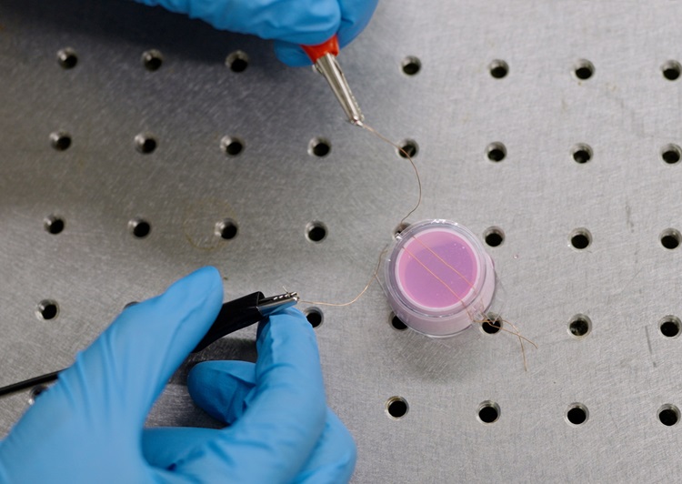 Eine neue Lösung für die Stromversorgung von Herzpumpen16. Februar 2024 Andreas Kourouklis hat einen Pioneer-Fellowship der ETH Zürich erhalten, um ein neues Kabelsystem für Herzpumpen zu entwickeln. Foto: ©Nici Lebküchner/ETH Zürich Fast jeder zweite Träger eines Kreislaufunterstützungssystems hat mit Infektionen zu kämpfen. Der Grund dafür ist das dicke Kabel für die Stromversorgung. Forschende von der Eidgenössischen Technischen Hochschule (ETH) Zürich arbeiten an einer Lösung für das Problem. Viele Patientinnen und Patienten, die auf ein Spenderherz warten, können nur mithilfe einer Pumpe weiterleben, die direkt an ihrem Herzen angebracht ist. Diese Pumpe braucht etwa so viel Strom wie ein Fernseher, den sie über ein sieben Millimeter dickes Kabel aus einer externen Batterie zieht. Das System ist zwar handlich und zuverlässig, hat aber eine große Schwäche: Trotz medikamentöser Maßnahmen kann die Austrittsstelle des Kabels am Bauch zum Einfallstor für Bakterien werden. Geht es nach ETH-Forscher Andreas Kourouklis soll dieses Problem bald der Vergangenheit angehören. Gemeinsam mit ETH-Professor Edoardo Mazza und Ärztinnen und Ärzten des Deutschen Herzzentrums in Berlin hat der Ingenieur ein neues Kabelsystem entwickelt, das die Herzpumpe mit Strom versorgt, ohne dass es dabei zu Infektionen kommt. Das ist besonders relevant, da drahtlose Methoden zur Stromübertragung in absehbarer Zeit nicht für Patientinnen und Patienten zur Verfügung stehen werden. Kourouklis hat ein Pioneer-Fellowship der ETH Zürich erhalten, um die Technologie voranzutreiben. Dünne Drähte mit Kratern ersetzen dickes Kabel „Durch das dicke Kabel in bestehenden Kreislaufunterstützungssystemen entsteht eine offene Wunde, die nicht verheilt und die Lebensqualität von Patient:innen stark beeinträchtigt“, erklärt Kourouklis. Um die Austrittsstelle herum bildet sich schlecht durchblutetes Narbengewebe, das nicht nur die Selbstheilung der Haut beeinträchtigt, sondern auch das Infektionsrisiko erhöht. Da die äußeren Hautschichten auf der glatten Oberfläche des Kabels nur schlecht anhaften, wachsen sie nach unten ein. Dadurch gelangen Bakterien von der Hautoberfläche in tiefere Gewebeschichten. Die Folge: Trägerinnen und Träger des Systems haben regelmäßig mit Infektionen zu kämpfen, die im Krankenhaus behandelt werden müssen. Die Technologie von Kourouklis soll nun Abhilfe schaffen: Statt eines dicken Kabels, das steifer als die menschliche Haut ist, sollen mehrere dünne und flexible Drähte mit einer gewölbten, unregelmäßigen Oberfläche die Stromversorgung der Herzpumpe sicherstellen. Die Forschenden vergleichen ihren Ansatz mit menschlichen Haaren, die die Haut durchbrechen, ohne Infektionen zu verursachen: „Flexiblere Drähte mit einer Oberfläche voller kleiner, unregelmäßiger Krater unterstützen die Wundheilung der Haut“, sagt Kourouklis. Der Grund: Die äußersten Hautschichten haften besser an diesen Drähten und wachsen nicht nach unten ein. Es bildet sich schneller neues Gewebe und die Haut bleibt als Barriere gegen bakterielle Infektionen eher intakt. Wassertropfen erzeugen kleine Krater Um die Krater auf der Kabeloberfläche zu erzeugen, haben Kourouklis und Kollegen ein neues Verfahren entwickelt. Damit können sie auch Oberflächen, die nicht flach sind, mit sehr kleinen, unregelmäßigen Mustern versehen, was bislang nicht möglich war. Die Methode, die aktuell an der ETH Zürich patentiert wird, funktioniert wie folgt: Die Forschenden überziehen die flexiblen Drähte mit einer dünnen Silikonschicht und kühlen sie auf minus 20 Grad Celsius ab. Dadurch wird die Oberfläche formbar. Anschließend kommen die Drähte in die Kondensationskammer, wo sich kleine Wassertropfen in die fluide Silikonschicht drücken so unregelmäßige Krater erzeugen. Dazu Pioneer-Fellow Kourouklis: „Wir können die Position der Krater über die Feuchtigkeit und die Temperatur in der Kondensationskammer verändern.“ Dünne, flexible Kabel mit Kratern an der Oberfläche sollen das Infektionsrisiko mindern. Foto: ©Nici Lebküchner/ETH Zürich Die Herausforderung dabei ist, dass die Krater weder zu groß noch zu klein sein dürfen: Sind sie zu groß, können sich Bakterien darin einnisten und das Infektionsrisiko steigt. Sind sie hingegen zu klein, bleibt die Haut daran nicht haften und wächst nach unten – auch in diesem Fall steigt die Gefahr von Infektionen. Ein klassisches Optimierungsproblem, das Kourouklis und sein Team durch computergestützte Modelle und Experimente zu lösen versuchen. Erste Tests bestätigen geringere Infektionsgefahr Die ersten Tests führte Kourouklis’ Team an Hautzellkulturen durch. Erst dann wurden sowohl das neue Kabelsystem als auch das alte, dicke Kabel einem Schaf implantiert. Die Ergebnisse stimmen den ETH-Forscher optimistisch: Während die dicken Kabel mit glatter Oberfläche zu schweren Entzündungen führten, kam es bei den dünnen, flexiblen Kabeln nur zu milden Entzündungsreaktionen. Kein Schaf erlitt bei den Versuchen bleibende Verletzungen. Wichtiger noch: Die Haut der Schafe haftete besser an den neuen Kabeln an und wuchs im Vergleich zu den dicken Kabeln kaum nach unten. Dementsprechend kam es bei den dünnen Kabeln mit Kratern auch nicht zu Infektionen der Austrittswunde bei den Tieren. Kourouklis arbeitet derzeit mit Expertinnen und Experten aus der Medizintechnik und Herzchirurgie daran, das Kabelsystem zu verbessern. Sein Ziel ist, die Technologie so bald wie möglich auf den Markt zu bringen. Bevor das neue Kabelsystem jedoch bei Herzkranken eingesetzt werden kann, sind noch eine Reihe von Tests an Hautmodellen, Tieren und schließlich an Menschen notwendig.