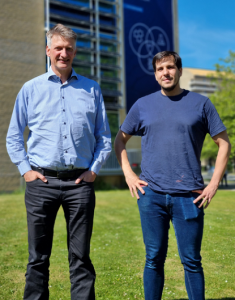 Einfache und kostengünstige Methode zur Produktion modifizierter DNA-Sequenzen19. Juli 2022 Positionierung einer chemischen Veränderung in einer DNA-Helix, die mit einer neuen und kostengünstigen Methode eingefügt wird. Illustration: ©Nucleic Acids Research 2022; gkac566 Die Entwicklung von Arzneimitteln auf DNA-/RNA-Basis, wie COVID-19-Impfstoffe, schreitet rasant voran. Die derzeitigen Produktionsmethoden sind kostspielig. Forscher der Universität Aarhus (Dänemark) haben nun eine wirksame und kostengünstige Methode zur Herstellung stabiler, modifizierter DNA-Sequenzen für diese modernen Medikamente gefunden. Die Herstellung kurzer DNA- und RNA-Sequenzen, so genannter Oligonukleotide, ist heute unverzichtbar für die Diagnostik (COVID-19-Test), die DNA-Sequenzierung, die Gensynthese für die synthetische Biologie und die Gentherapie, wie z. B. beim CRISPR-Cas9-Verfahren. Die Technologie der Oligonukleotidherstellung hat sich seit ihrer Entwicklung im Jahr 1981 weiterentwickelt, aber die zugrunde liegende Chemie ist weitgehend unverändert geblieben. Man ist nach wie vor auf Phosphoramidite angewiesen, chemische Verbindungen, die im Produktionsprozess leider instabil sind. Kurt Gothelf und seine Forschungsgruppe haben in einer vorausgehenden Arbeit bereits einen effizienteren Weg zur Herstellung der Bausteine für Oligonukleotide aufgezeigt. Sie haben ein flussbasiertes Verfahren entwickelt haben, mit dem Phosphoramidite unmittelbar vor ihrer Verwendung hergestellt werden können, wodurch dieser Abbau vermieden wird. Teurer Erwerb von DNA-Sequenzen mit speziellen Funktionen Hauptautoren der Studie Kurt Gothelf (links) und Angel Santorelli. Foto: ©Aarhus University Es besteht ein großer Bedarf an Oligonukleotiden, die so modifiziert sind, dass ihnen spezielle Funktionen inne wohnen. So hat sich beispielsweise gezeigt, dass Oligonukleotide, die mit bestimmten Zuckern modifiziert wurden, von der Leber aufgenommen werden. Auf dieser Grundlage werden verschiedene Oligonukleotid-Arzneimittel eingesetzt, die hepatische Proteine regulieren und so auf bestimmte Krankheiten einwirken. Wichtig ist auch die Möglichkeit, Farbstoffe an Oligonukleotide anzuhängen, da dies häufig in der Diagnostik und Forschung eingesetzt wird. Normalerweise erhalten die Oligonukleotide diese speziellen Funktionen, indem die Phosphoramidite bereits in der Herstellung mit einem bestimmten chemischen Rest oder der gewünschten funktionellen Gruppe versehen werden. Es gibt kommerzielle Kataloge mit mehreren hundert Varianten dieser modifizierten Phosphoramidite. Solche modifizierten Phosphoramidite sind jedoch in den meisten Fällen sehr teuer in der Herstellung und, wie bereits erwähnt, in Flüssigkeiten bei Raumtemperatur instabil. Neue einfache und kostengünstige Methode zur Synthese von Spezialbausteinen In einem kürzlich in „Nucleic Acids Research“ veröffentlichten wissenschaftlichen Artikel stellen Angel Santorelli und Kurt Gothelf eine einfache und kostengünstige Methode vor, um Modifikationen an Oligonukleotiden vorzunehmen, ohne dass spezielle Phosphoramidite benötigt werden. Dazu verwenden sie chemische Verbindungen, sogenannte Sulfonylazide, die Oligonukleotide während der chemischen Synthese mit vielen verschiedenen Funktionen versehen können. Die Methode ist mit der bereits erwähnten automatisierten und flussbasierten Methode zur Oligonukleotidsynthese kompatibel, bei der der Abbau der Phosphoramidite vermieden wird. Die kürzlich veröffentlichte Methode zur Synthese modifizierter Phosphoramidite kann somit als einfache Alternative zu den instabilen und teuren Spezialphosphoramiditen dienen, die derzeit für die Herstellung modifizierter Oligonukleotide verwendet werden. (ah)