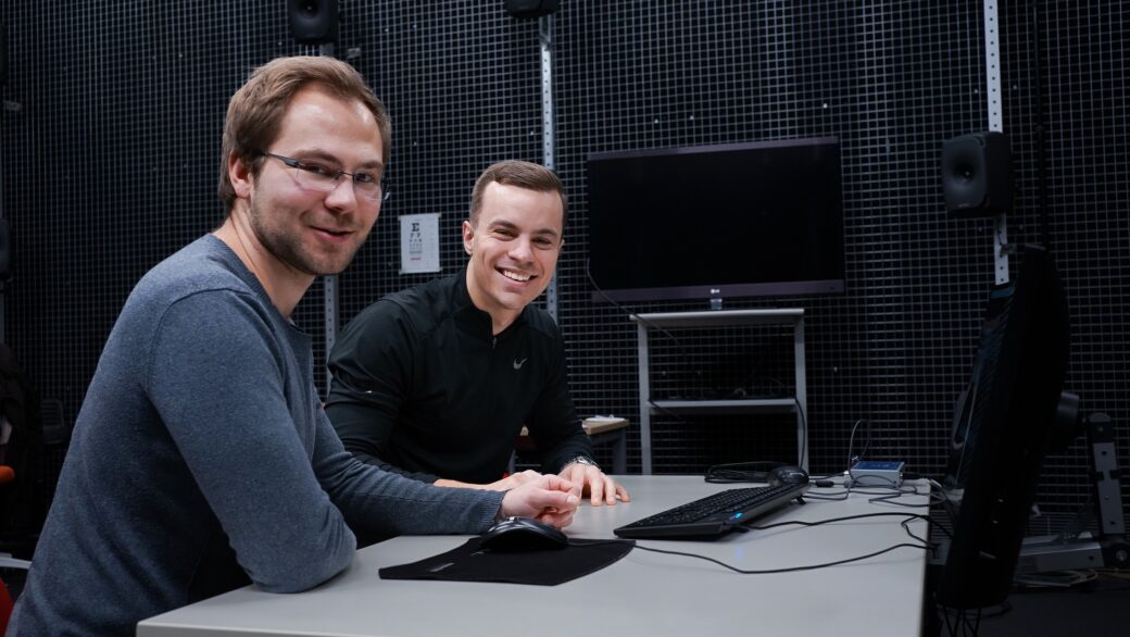 Eintauchen in räumliche Klangwelten: Virtual-Reality-Lab der TU Ilmenau ist startklar11. Dezember 2024 Mit 77 präzise aufeinander abgestimmten Lautsprechern ermöglicht das Virtual-Reality-Lab nun modernste Technik zur Erforschung innovativer Virtual- und Augmented-Reality-Technologien und deren Anwendungen. Foto: Thomas Helbig/TU Ilmenau Die Technische Universität Ilmenau hat ihr Hightech-Hörlabor für den Einsatz in Forschung und Lehre aufgerüstet. Dank 77 präzise aufeinander abgestimmter Lautsprecher können nun akustische Umgebungen realitätsnah simuliert werden. Damit bietet das Virtual-Reality-Lab modernste Technik zur Erforschung innovativer Virtual- und Augmented-Reality-Technologien und deren Anwendungen: von der Simulation virtueller Klanglandschaften über die realitätsnahe Evaluierung von Hörgeräten bis hin zur Entwicklung immersiver Computerspiele. Der idyllische Klang des Regenwalds, die lärmende Geräuschkulisse einer pulsierenden Großstadt oder der Besuch in einem großen Konzertsaal – im aufgerüsteten VR-Lab im Ilmenau Interactive Immersive Technologies Center (I3TC) kann man in die verschiedensten akustischen Landschaften eintauchen. Möglich gemacht haben das die Studenten der Medieningenieurwissenschaften Christian Ziener und Niklas Edelmann, indem sie den Raum nach modernsten internationalen Standards aufgerüstet haben. Die Studenten der Medieningenieurwissenschaften Christian Ziener (l.) und Niklas Edelmann, die das VR-Lab aufgerüstet haben. Foto: Eleonora Hamburg/TU Ilmenau In einem Medienprojekt stimmten die beiden Studenten 77 Hoch- und Tieftonlautsprecher im VR-Lab präzise aufeinander ab. Ihr Ziel: Einer Person in der Mitte des Raums das ideale Klangerlebnis zu bieten. Der Schlüssel dafür war dabei die präzise Ausrichtung der jeweiligen Ausspielkanäle zum sogenannten Sweet Spot, dem Punkt der optimalen Klangwiedergabe, in ihrer Anwendung also zur Mitte des Raums. Bei ihren Arbeiten haben die Studenten bestimmte Lautsprechereinstellungen vorinstalliert, indem diese aber auch flexibel angepasst werden können, sind die Möglichkeiten des Hightech-Labor schier grenzenlos. Die Option, festgelegte Lautsprecherkonfigurationen oder aber eine flexible Audiowiedergabe zu nutzen, bei der einzelne Klänge präzise im Raum positioniert werden können, ist außergewöhnlich und weltweit nur in sehr wenigen Akustiklaboren zu finden. Im Virtual-Reality-Lab der TU Ilmenau, das mit Unterstützung des Fraunhofer-Instituts für Digitale Medientechnologie aufgerüstet wurde, kann nun jede denkbare Hörumgebung realitätsnah simuliert werden – in allen heute gängigen Wiedergabestandards: von einfachen Stereo-Setups bis hin zu komplexen akustischen Systemen wie 22.2 oder Ambisonics, die auch in modernen Kinosälen zum Einsatz kommen. Damit entspricht das Hörlabor den empfohlenen internationalen Standards der International Telecommunication Union. In Zukunft werden im VR-Lab Studierende mit modernen Audiosystemen und Standards praxisnah ausgebildet. So lernen sie zum Beispiel die Grundlagen der Akustik in der praktischen Anwendung, Lautsprecher einzumessen und einzurichten oder immersive Audiotechnologien zu implementieren und zu nutzen. Auch in der Forschung eröffnet das Labor vielfältige Möglichkeiten zur Entwicklung neuer Virtual- und Augmented-Reality-Technologien und deren Anwendungen: von der Simulation virtueller Klanglandschaften über die realitätsnahe Evaluierung von Hörgeräten bis hin zu immersiven Computerspielen.