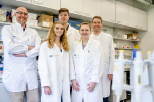 Einzelne Hepatitis-E-Mutation macht Sofosbuvir-Therapie unwirksam21. Juni 2023 Informatik und Medizin haben zu der Erkenntnis über die Mutation des Hepatitis-E-Virus geführt. (Foto: © RUB, Marquard) Warum Hepatitis E der Behandlung mit dem Hepatitis-C-Medikament Sofosbuvir entgehen kann, hat eine deutsche Arbeitsgruppe herausgefunden: Eine einzelne Mutation des Virus führt dazu, dass die Behandlung weniger effektiv ist. Gegen Hepatitis E gibt es bislang keine spezifischen Medikamente. Ärzten steht lediglich das Breitband-antivirale Medikament Ribavirin zur Verfügung, welches häufig starke Nebenwirkungen hervorruft. Wirkstoffe gegen andere Hepatitis-Viren helfen nur bedingt. Ein Team der Nachwuchsgruppe „Computational Virology“ um Dr. Daniel Todt in der Abteilung für Molekulare und Medizinische Virologie der Ruhr-Universität Bochum hat gemeinsam mit Forschenden aus Berlin, Hamburg und Hannover in diesem Kontext den Wirkstoff Sofosbuvir unter die Lupe genommen. Daniel Todt, André Gömer, Eike Steinmann (hinten v. li.), Michelle Jagst (vorn li.) und Mara Klöhn aus der Abteilung Medizinische und Molekulare Virologie der Ruhr-Universität. (Foto: © RUB, Marquard) Welche Virus-Varianten kursieren im Blut? In einer früheren klinischen Studie, an der die Bochumer Forschenden beteiligt waren, wurden Patienten mit chronischer Hepatitis-E-Virus(HEV)-Infektion mit dem Wirkstoff Sofosbuvir behandelt, der eigentlich für die Behandlung von Hepatitis C entwickelt wurde. „In dieser Pilotstudie konnten wir beobachten, dass die Behandlung mit Sofosbuvir zunächst wirksam war“, berichtet Dr. André Gömer. „Die Menge der Virus-RNA sank erst einmal ab. Im Verlauf des Beobachtungszeitraums stieg sie aber wieder an. Die Therapie brachte also nicht den gewünschten Erfolg“ ergänzt Mara Klöhn. Die Forschenden analysierten Proben dieser Patienten, um Varianten zu identifizieren, die das Versagen der Therapie mit Sofosbuvir erklären könnten. Davon versprachen sie sich neue Erkenntnisse, die zukünftige Medikamentenentwicklungen begünstigen sollen. Fünffacher Wirkverlust durch eine Mutation In der retrospektiven Analyse konnten die Wissenschaftler eine einzelne Mutation in der Polymerase A1343V identifizieren, die parallel zum Wiederanstieg der Virus-RNA auftrat. Laborexperimente belegten, dass der Wirkstoff das mutierte Virus fünfmal weniger gut beseitigen konnte als andere genetische Varianten des Virus. Zurzeit prüft das Forschungsteam, ob die Kombinationstherapie mit dem Standardmedikament Ribavirin die Entstehung der A1343V-Mutation verhindern kann und dadurch eine erfolgversprechende Therapieoption wäre. „Für die Entwicklung zukünftiger Therapien gegen Hepatitis E müssen wir die Rolle dieser Mutation noch besser verstehen“, resümiert Michelle Jagst. Todts Arbeitsgruppe erforscht im Rahmen ihres vom Bundesministerium für Bildung und Forschung geförderten Projekts VirBio unter anderem die Evolution von Viren und der Interaktion zwischen Virus und Wirtszelle mittels Hochdurchsatzsequenzierungen und computergestützten Methoden.