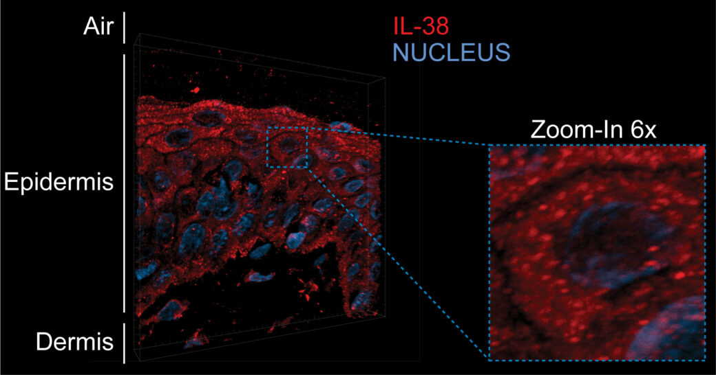 Epidermis-Erneuerung: Wichtige Funktion von Interleukin-38 entdeckt26. November 2024 Foto: © bilderzwerg – stock.adobe.com (Symbolbild) Eine Studie der Universität Genf, Schweiz, hat einen Mechanismus aufgedeckt, mit dem Interleukin-38 Kondensate bildet, die offenbar bei der Hauterneuerung eine wichtige Rolle spielen. Die Mechanismen, die der Hauterneuerung zugrunde liegen, sind noch wenig bekannt. Interleukin-38 (IL-38), ein Protein, das an der Regulierung von Entzündungsreaktionen beteiligt ist, könnte hier einen entscheidenden Beitrag leisten. Ein Team der Universität Genf (UNIGE) hat es zum ersten Mal in Form von Kondensaten in Keratinozyten, den Zellen der Epidermis, beobachtet. Das Vorhandensein von IL-38 in diesen Aggregaten ist in der Nähe der Hautoberfläche, die dem Luftsauerstoff ausgesetzt ist, verstärkt. Dieser Prozess könnte mit der Einleitung des programmierten Keratinozyten-Todes, einem natürlichen Vorgang in der Epidermis, zusammenhängen. Die Studie, die in „Cell Reports“ veröffentlicht wurde, könnte neue Perspektiven für die Erforschung der menschlichen Epidermis und der sie betreffenden Krankheiten eröffnen. „Die Art und Weise, in der sich die Epidermis ständig erneuert, ist gut dokumentiert. Die Mechanismen, die diesen Prozess steuern, sind jedoch noch immer nicht vollständig verstanden“, erklärt Gaby Palmer-Lourenço, außerordentliche Professorin an der medizinischen Fakultät der UNIGE und Hauptautorin der Studie. Eine unerwartete Rolle IL-38 ist für seine Rolle bei der Regulierung von Entzündungsreaktionen bekannt, und sein Vorhandensein in Keratinozyten wurde früher mit der Aufrechterhaltung des Immungleichgewichts der Haut in Verbindung gebracht. „In Keratinozyten in vivo haben wir festgestellt, dass IL-38 Kondensate bildet, spezialisierte Proteinaggregate mit spezifischen biochemischen Funktionen, ein Verhalten, das für dieses Protein nicht bekannt war“, berichtet Gaby Palmer-Lourenço. Noch interessanter ist, dass die Menge an IL-38 in diesen Kondensaten umso größer war, je näher die Keratinozyten an der Hautoberfläche lagen. Reaktion auf oxidativen Stress Die Blutgefäße enden in der unter der Epidermis liegenden Hautschicht. Daher ist die Menge an Sauerstoff, die den Keratinozyten zur Verfügung steht, in den basalen Schichten der Epidermis geringer als in den oberen Schichten, die direkt der uns umgebenden Luft ausgesetzt sind. Doch obwohl er für die Aufrechterhaltung der Zellfunktionen notwendig ist, verursacht Sauerstoff auch oxidativen Stress, indem er freie Radikale bildet, reaktive Moleküle, die die Zelle gefährden. „Wir konnten zeigen, dass oxidativer Stress unter Laborbedingungen tatsächlich zur Kondensation von IL-38 führt“, bestätigt Alejandro Díaz-Barreiro, Postdoktorand an der UNIGE-Fakultät für Medizin und Erstautor der Studie. Die Immunfärbung des IL-38-Proteins (rot) in menschlicher Epidermis eines gesunden Spenders zeigt körnige Strukturen, die in der Schicht der lebenden Keratinozyten, die der Luft am meisten ausgesetzt ist, intensiver sind. Die Zellkerne sind blau gefärbt. © Alejandro Diaz-Barreiro „Unsere Ergebnisse lassen vermuten, dass die zunehmende Sauerstoffkonzentration in der Nähe der Epidermisoberfläche die Bildung von Proteinkondensaten fördert und den Keratinozyten signalisiert, dass sie sich an der richtigen Stelle befinden, um in den Zelltod einzutreten“, so Palmer-Lourenço weiter. Diese Hypothese liefert neue Hinweise zur Entschlüsselung der Mechanismen der epidermalen Erneuerung. Sie könnte auch den Weg für ein besseres Verständnis der pathologischen Mechanismen ebnen, die bestimmten Hautkrankheiten wie Psoriasis oder Atopischer Dermatitis zugrunde liegen. Diese Fragen werden von der Forschergruppe in künftigen Studien weiter untersucht. Alternative zu Tiermodellen Díaz-Barreiro arbeitet bereits am nächsten Schritt: „In dem Modell, das wir bisher verwendet haben, wurden die Auswirkungen von oxidativem Stress künstlich in einer einzigen Schicht von Keratinozyten induziert, ein Szenario, das sich von der tatsächlichen Situation in der Haut unterscheidet. Wir entwickeln daher ein neues experimentelles System zur Anwendung von Sauerstoffgradienten auf die in vitro rekonstituierte menschliche Epidermis. In diesem Modell wird nur die Hautoberfläche der Umgebungsluft ausgesetzt, während die anderen Schichten geschützt sind. So können wir die Auswirkungen von oxidativem Stress auf die Erneuerung der Epidermis im Detail untersuchen.“ Da dieses neue System eine präzisere Analyse menschlicher Zellen ermöglicht, bietet es eine Alternative zu Tiermodellen, die häufig für die Untersuchung von Hautbiologie und -krankheiten verwendet werden.