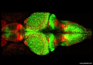 Epilepsie durch veränderte Abwehrmechanismen im Gehirn27. August 2019 Mikroskopaufnahme eines jungen Zebrafischhirns. Rot zeigt die Gliazellen, grün die Neuronen. (Foto: Emre Yaksi Lab, NTNU) Wissenschaftliche Studie bekräftigt die Bedeutung der Gliazellen bei epileptischen Anfällen und zeigt Potenziale für neue Therapien auf. Einen epileptischen Anfall kann jeder bekommen. Was genau passiert dabei im Körper und welche Mechanismen lösen eine solche plötzliche Störung aus? Ein internationales Team von Wissenschaftlern unter der Leitung von Prof. Emre Yaksi von der Norwegischen Universität NTNU, in dem auch Forscher des Zentrums für Regenerative Therapien der TU Dresden (CRTD) mitgearbeitet haben, hat entdeckt, dass ein Versagen der Gliazellen im Gehirn die epileptischen Anfälle auslöst. Die Studie untersuchte epileptische Anfälle bei Zebrafischen und ergab, dass kurz vor einem epileptischen Anfall Nervenzellen abnormal aktiv waren, aber nur in einem begrenzten Gehirnbereich. Im Gegensatz dazu zeigten Gliazellen eine starke synchrone Aktivität im gesamten Gehirn. Während des eigentlichen Anfalls nahm die neuronale Aktivität abrupt zu. Die funktionellen Verbindungen zwischen den Nervenzellen und den Gliazellen wurden sehr kraftvoll. Damit verbreitete sich der Anfall quasi wie ein Sturm elektrischer Aktivität über das gesamte Gehirn. Auch der Glutamatspiegel nahm stark zu. Das Glutamat wurde von Gliazellen abgesondert, die damit vom Freund zum Feind werden. Die Ergebnisse der Studie deuten darauf hin, dass Epilepsie nicht nur aufgrund eines anormalen Verhaltens von Neuronen, sondern auch von Gliazellen entsteht. “Unsere Ergebnisse liefern den Beweis dafür, dass sich die Wechselwirkungen zwischen Gliazellen und Neuronen während der Entstehung eines epileptischen Anfalls ändern. Es wird interessant sein zu sehen, ob dieses Phänomen bei den verschiedenen Arten von Epilepsie auftritt und verallgemeinerbar ist”, sagte Yaksi. Normalerweise absorbieren die Gliazellen das überschüssige Glutamat, das während einer erhöhten Aktivität der Nervenzellen ausgeschieden wird. Die Studie zeigte jedoch, dass der Absonderungsprozess der Gliazellen, der in Kombination mit ihrer Hyperaktivität kurz vor einem Anfall beobachtet wurde, mit großer Wahrscheinlichkeit ein Abwehrmechanismus des Gehirns ist. “In unserem Gehirn befinden sich mehr Gliazellen als Neuronen. Doch Gliazellen wurden von der Wissenschaft bisher weniger beachtet. Unsere Arbeit deckt eine interessante Funktion der Gliazellen auf und wird zweifellos mehr Interesse an diesem Zelltyp wecken”, sagte CRTD-Forschungsgruppenleiter Dr. Caghan Kizil, der mit seinem Mitarbeiter Mehmet Ilyas Cosacak zu den Co-Autoren der Studie gehört und sowohl am CRTD der TU Dresden als auch am Deutschen Zentrum für Neurodegenerative Erkrankungen (DZNE) forscht. In den vergangenen Jahrzehnten wurden eine Reihe neuer Epilepsiemedikamente entwickelt. Ein Drittel der Patienten hat jedoch immer noch keine gute Kontrolle über die Anfälle. Ein Grund dafür könnte sein, dass die aktuellen Antiepileptika meist auf Neuronen abzielen, während die Gliazellen, die rund 80 Prozent der Zellen im Gehirn ausmachen, übersehen wurden. “Wir werden jetzt untersuchen, ob wir die Mechanismen, die wir in unserer aktuellen Studie identifiziert haben, auch im klinischen Umfeld erkennen können”, sagte Yaksi. Originalpublikation: Diaz Verdugo C et al.: Glia-neuron interactions underlie state transitions to generalized seizures. Nat Commun 2019 Aug 23;10(1):3830.