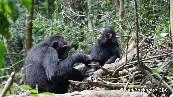 Mehr erfahren zu: "Fast wie ein Gespräch: Kommunikation von Schimpansen ähnelt der von Menschen" Fast wie ein Gespräch: Kommunikation von Schimpansen ähnelt der von Menschen Schimpansenmütter und ihre Jungen wechseln sich in freier Wildbahn bei ihren Interaktionen auf eine Weise ab, die stark an menschliche Gespräche erinnert.