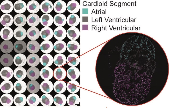 Erste Herzorganoide mit mehreren Kammern enthüllen Entwicklung und Erkrankungen des Herzens12. Dezember 2023 Symbolbild: ©Елена Бутусова/stock.adobe.com Ein österreichisches Forschungsteam stellte kürzlich das erste physiologische Organoidmodell vor, das alle wichtigen sich entwickelnden Herzstrukturen umfasst und es ermöglicht, Herzerkrankungen und -entwicklung zu untersuchen. Im Jahr 2021 präsentierten die Wissenschaftlerinnen und Wissenschaftler um Sasha Mendjan vom Institute of Molecular Biotechnology of the Austrian Academy of Sciences (IMBA) in Wien das erste kammerartige Herzorganoid, das aus menschlichen induzierten pluripotenten Stammzellen gebildet wurde. Diese selbstorganisierenden Herzorganoide, auch Kardioide genannt, rekapitulierten die Entwicklung der linken Herzkammer in den allerersten Tagen der Embryogenese. „Diese Kardioide waren ein Grundsatzbeweis und ein wichtiger Schritt nach vorn“, sagt Mendjan. „Während die meisten Erkrankungen bei Erwachsenen die linke Herzkammer betreffen, die sauerstoffreiches Blut durch den Körper pumpt, sind bei angeborenen Defekten meist andere Herzregionen betroffen, die für den Aufbau und die Aufrechterhaltung des Kreislaufs wichtig sind.“ In der neuen Studie baute das Team am IMBA seine früheren Arbeiten aus. Die Forscherinnen und Forscher erstellten zunächst Organoidmodelle der einzelnen Herzstrukturen. „Dann fragten wir: Wenn wir alle diese Organoide gemeinsam entwickeln lassen, erhalten wir dann ein Herzmodell, das koordiniert schlägt wie das frühe menschliche Herz?“, erklärt Mendjan. Entschlüsselung der menschlichen Herzentwicklung Nachdem die Forschergruppe Organoide der linken und rechten Herzkammer und des Vorhofs zusammen gezüchtet hatte, bot sich Ihnen eine Überraschung: „Tatsächlich breitete sich ein elektrisches Signal vom Vorhof in die linke und dann in die rechte Herzkammer aus – genau wie in der frühen fötalen Herzentwicklung bei Tieren“, erinnert sich Mendjan. „Diesen grundlegenden Prozess haben wir nun erstmals in einem menschlichen Herzmodell mit all seinen Kammern beobachtet.“ Während das frühere Kardioidmodell den Forscherinnen und Forschern ermöglichte, die Form und die Gewebeorganisation der Kammern zu untersuchen, können sie mit den neu entwickelten Mehrkammer-Kardioiden noch weiter gehen und untersuchen, wie regionale Unterschiede in der Genexpression zu spezifischen Kontraktionsmustern der Kammern und der komplizierten Kommunikation zwischen ihnen führen. Mendjan und Kollegen haben bereits Einblicke in die frühe Herzentwicklung gewinnen können, insbesondere wie das menschliche Herz zu schlagen beginnt – was bisher nicht verstanden wurde. „Wir haben gesehen, dass die Organoidkammern im Laufe ihrer Entwicklung einen komplizierten Tanz des Führens und Folgens durchlaufen. Zunächst führt die linke Herzkammer die entstehenden rechten Herzkammern und den Vorhof in ihrem Rhythmus. Wenn sich dann – zwei Tage später – der Vorhof entwickelt, folgen die Herzkammern der Führung des Vorhofs. Dies spiegelt wider, was bei Tieren zu beobachten ist, bevor die Schrittmacher den Herzrhythmus endgültig kontrollieren“, erklärt Alison Deyett, Doktorandin in der Mendjan-Gruppe und eine der Erstautoren der Studie. Screening-Plattform für angeborene Herzkrankheiten und Therapie Die Mehrkammer-Kardioide ermöglichen es auch, kammerspezifische Defekte zu untersuchen. In einem Proof-of-Principle hat das Mendjan-Team eine Screening-Plattform für Defekte eingerichtet, in der sie untersuchen, wie bekannte Teratogene und Mutationen Hunderte von Herzorganoiden gleichzeitig beeinflussen. Mehrkammer-Kardioide können im Hochdurchsatz in verschiedenen Kombinationen kultiviert werden. Die Nahaufnahme zeigt den Querschnitt eines Mehrkammer-Kardioids, mit dem Vorhof-Organoid in Cyan, dem linken Ventrikel-Organoid in Weiß und dem rechten Ventrikel-Organoid in Magenta. Bild: ©Tobias Ilmer, Alison Ann Deyett/IMBA Thalidomid, ein bekanntes Teratogen beim Menschen, und Retinoid-Derivate – die bei der Behandlung von Leukämie, Psoriasis und Akne eingesetzt werden – sind dafür bekannt, dass sie beim Fötus schwere Herzfehler verursachen. Beide Teratogene lösten in den Herzorganoiden ähnliche, schwere kammerspezifische Defekte aus. In ähnlicher Weise führten Mutationen in drei kardialen Transkriptionsfaktorgenen zu kammerspezifischen Defekten, wie sie auch in der menschlichen Entwicklung beobachtet werden. „Unsere Tests zeigen, dass Mehrkammer-Kardioide die embryonale Herzentwicklung rekapitulieren und mit hoher Spezifität störende Auswirkungen auf das gesamte Herz aufdecken können. Wir tun dies mit einem ganzheitlichen Ansatz, indem wir mehrere Messwerte gleichzeitig betrachten“, fasst Mendjan zusammen. In Zukunft können Mehrkammer-Herzorganoide für toxikologische Studien und zur Entwicklung neuer Medikamente mit herzkammerspezifischen Wirkungen eingesetzt werden. „Zum Beispiel sind Vorhofarrhythmien weit verbreitet, aber wir haben derzeit keine gute medikamentöse Behandlung. Ein Grund dafür ist, dass es bisher keine Modelle gibt, in denen alle Regionen des sich entwickelnden Herzens koordiniert zusammenarbeiten“, so Mendjan weiter. Und obwohl Herzfehler weit verbreitet und sogar die häufigste Ursache für Fehlgeburten sind, bleibt die individuelle Ursache oft unbekannt. Aus Stammzellen von Patienten entwickelte Herzorganoide könnten in Zukunft Aufschluss über den Entwicklungsfehler geben und darüber, wie er behandelt und verhindert werden kann. Die Mendjan-Gruppe ist besonders daran interessiert, Mehrkammer-Herzorganoide zu verwenden, um die Herzentwicklung besser zu verstehen: „Wir haben jetzt eine Grundlage, um das weitere Wachstum und das Regenerationspotenzial des Herzens zu untersuchen.“ IMBA hat der HeartBeat.bio AG, einem von Sasha Mendjan mitgegründeten Spin-Off Unternehmen des IMBA, eine exklusive Lizenz für die Mehrkammer-Herzorganoi