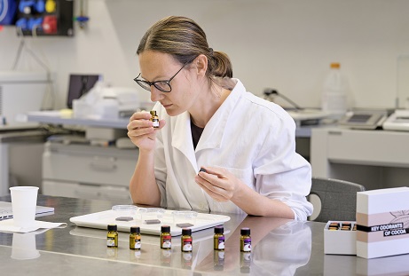 Essenz der Schokolade entschlüsselt: Aromakit für Kakao4. Juni 2021 Das Aromakit Kakao lässt sich als Trainingstool für sensorische Panels sowie für interessierte SchokoladekennerInnen einsetzen. Foto: Das Aromakit Kakao lässt sich als Trainingstool für sensorische Panels sowie für interessierte Schokoladekennerinnen und -kenner einsetzen. Foto: HAW ZHAW-Forscherinnen haben die Aromavielfalt von Kakao aufgeschlüsselt und die Aromastoffe identifiziert, die maßgeblich zum charakteristischen Aroma beitragen. Aufgrund ihrer sensorischen Eigenschaften gehört Schokolade weltweit zu den beliebtesten Nahrungsmitteln überhaupt. Insbesondere bei Schokoladen mit einem hohen Kakaoanteil offenbart sich beim bewussten Verzehr eine Fülle von Aroma- und Geschmackskomponenten. Dementsprechend sind die Schokoladenvielfalt und das Bewusstsein für ihre Aromen in den letzten Jahren stetig gewachsen. Ein passendes Instrumentarium, wie etwa die aus der Önologie bekannten Weinaromasets, fehlte jedoch bislang für Schokolade. Erstmals wurden nun an der ZHAW die Aromastoffe für Kakao und Schokolade aufgeschlüsselt und dazu ein Aromakit mit 25 Referenzsubstanzen entwickelt. Dieses soll Schokoladenprofis und interessierten Konsumentinnen und Konsumenten zur Schulung ihrer sensorischen Sinne dienen. Aufwendige Identifikation und Entwicklung Erarbeitet haben das Kit die beiden Aroma- und Sensorikforscherinnen Irene Chetschik und Karin Chatelain am ZHAW-Institut für Lebensmittel- und Getränkeinnovation in Wädenswil. Dazu haben sie die entscheidenden Schlüsselaromastoffe von Kakao und Schokolade identifiziert und klassifiziert. Dies erfolgte einerseits im Labor mit Gaschromatografie-Olfaktometrie und andererseits mittels sensorischer Analysen durch Kakao- und Schokoladen-Expertenpanels sowie anhand von Vergleichen mit bereits bestehenden Literaturdaten. «Interessanterweise gibt es keine einzige Verbindung, die nach Kakao riecht, sondern es ist das Zusammenspiel von mehreren unterschiedlichen chemischen Verbindungen, die das Kakaoaroma ausmachen. Um Kakaoaroma besser zu verstehen und einfacher zu beschreiben, haben wir die Schlüsselkomponenten im Aromakit Kakao zusammengefasst», erklärt ZHAW-Aromaforscherin Chetschik. Karin Chatelain nutzt das von ihr mitentwickelte Aromakit bei ihrer Arbeit als Sensorikforscherin. Foto: ZHAW Sensorikforscherin Chatelain ergänzt: «Mit dem neuartigen Aromakit möchten wir zum besseren Verständnis der sensorischen Qualität von Kakao und Schokolade beitragen und unsere Faszination für die große Aromavielfalt des Kakaos mit der Öffentlichkeit teilen.» Vereinfachte Kommunikation zwischen Schokoladenprofis Beeinflusst wird die Aromakomposition in einer Schokolade einerseits durch die Herkunft und Sorte der Kakaofrucht, andererseits durch die nachfolgenden biochemischen und thermalen Verarbeitungsprozesse, ausgehend von der Kakaobohne bis hin zum Endprodukt Schokolade. Insgesamt sind bisher über 500 flüchtige Verbindungen in Kakao und Schokolade identifiziert worden. Schlussendlich tragen aber nur wenige Aromastoffe maßgeblich zum charakteristischen Schokoladenaroma bei. Diese Schlüsselaromastoffe sind in der Lage, eine Geruchswahrnehmung auszulösen, die mit den unterschiedlichsten Geruchsqualitäten wie zum Beispiel blumig, fruchtig, würzig oder auch erdig assoziiert werden können. Die präzise Benennung der einzelnen Aromaeindrücke ist eine Grundlage für die Beurteilung der sensorischen Qualität von Kakao und Schokolade. Solche sensorischen Vokabulare sind ein wichtiges Tool, um die Kommunikation zwischen verschiedenen Prüfgruppen oder zwischen Produzentinnen, Verarbeitern und Konsumentinnen und Konsumenten zu vereinfachen. Aromaentwicklung entlang der Verarbeitungskette Das Aromakit bietet eine solche Kommunikationsgrundlage. Die 25 Fläschchen mit den Referenzsubstanzen sind mit Farbcodes versehen, um die Aromaentwicklung entlang der gesamten Verarbeitungskette zu reflektieren – von der Kakaobohne bis zum Endprodukt. Die Farbcodes geben die jeweilige Entstehungsphase eines bestimmten Aromastoffes an, wobei vier Kategorien unterschieden werden. Zuerst sind es Aroma-Moleküle, die bereits in frisch geernteten, unfermentierten Kakaobohnen vorhanden sind. Dann folgen solche, die hauptsächlich durch die Nachernteprozesse wie Fermentation und Trocknung oder durch thermale Prozesse wie Rösten und Conchieren gebildet werden. Letztlich werden Aroma-Moleküle aufgeführt, die einen negativen Einfluss auf die sensorische Qualität ausüben. Das Aromakit Kakao lässt sich als Trainingstool für sensorische Panels sowie für interessierte Schokoladekennerinnen und -kenner einsetzen und ist an der ZHAW erhältlich: www.zhaw.ch/ilgi/aroma
