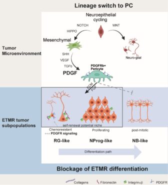 ETMR: Forschende knacken das Geheimnis der Therapieresistenz9. März 2026 Foto: © maniki – stock.adobe.com Embryonale Tumoren mit mehrreihigen Rosetten (ETMR) gehören zu den seltensten und aggressivsten Hirntumoren im frühen Kindesalter. Trotz intensiver Therapie ist die Prognose bislang sehr schlecht. Ein Forschungsprojekt der Universität Münster liefert nun neue Erkenntnisse darüber, warum diese Tumoren so therapieresistent sind. Schematischer Überblick über die Ergebnisse des Projekts. (Quelle: © Kornelius Kerl) Das Team um Prof. Kornelius Kerl konnte erstmals auf Einzelzellniveau nachweisen, dass ETMR aus mehreren unterschiedlichen Tumorzellzuständen bestehen, die frühen Phasen der neuronalen Entwicklung ähneln. Besonders die stammzellenähnlichen Tumorzellen erwiesen sich als hoch resistent gegenüber einer Chemotherapie. Ein weiteres zentrales Ergebnis der Studie ist die entscheidende Rolle der Tumormikroumgebung: Perizyten bilden gemeinsam mit stammzellennahen Tumorzellen eine geschützte Nische im Tumor. Über PDGF(Platelet Derived Growth Factor)-abhängige Signalwege stabilisieren sie den therapieresistenten Zustand der Tumorzellen und begünstigen so deren Überleben unter Chemotherapie. Tumormilieu schützt Krebzellen vor Chemotherapie „Unsere Daten zeigen, dass ETMR-Tumorzellen ihre Umgebung aktiv umprogrammieren und so ein Milieu schaffen, das ihr Überleben auch unter Chemotherapie begünstigt“, erklärt Kerl, der am Universitätsklinikum Münster den Bereich Experimentelle Pädiatrische Hämatologie und Onkologie leitet. „Gleichzeitig konnten wir nachweisen, dass diese Wechselwirkungen gezielt gestört werden können.“ In innovativen 3D-Modellen menschlicher Hirnorganoide sowie in Mausmodellen führte die pharmakologische Hemmung des PDGF-Signalwegs zu einer deutlichen Reduktion perizytenähnlicher Zellen und zu einer verminderten Tumorvariabilität. Damit identifiziere die Studie einen vielversprechenden neuen therapeutischen Ansatz für eine bislang kaum behandelbare Tumorenität, erklärte die Wilhelm Sander-Stiftung, die das Projekt mit 200.000 Euro gefördert hat.