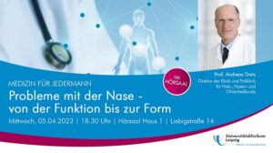 Mehr erfahren zu: "„Medizin für Jedermann“: Vanille schmeckt man durch die Nase" „Medizin für Jedermann“: Vanille schmeckt man durch die Nase HNO-Klinikdirektor Prof. Andreas Dietz spricht am 5. April zum Thema „Probleme mit der Nase – von der Funktion bis zur Form“. Nach langer Corona-Pause findet die Veranstaltung erstmals wieder vor […]