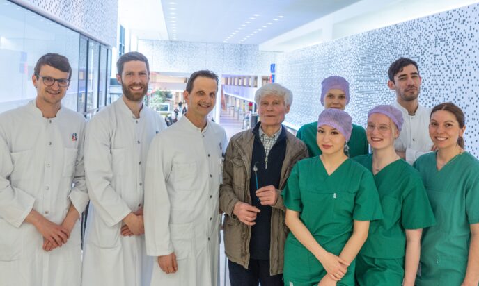 Mehr erfahren zu: "Weltweit neues Verfahren gegen Vorhofflimmern am UKSH" Weltweit neues Verfahren gegen Vorhofflimmern am UKSH Erstmals außerhalb einer Studie wurde am Universitätsklinikum Schlesweig-Holstein (UKSH), Campus Lübeck, ein innovativer Ballon-in-Basket-PFA-Katheter eingesetzt. Er soll eine gezieltere und schonendere Vorhofflimmer-Behandlung ermöglichen.