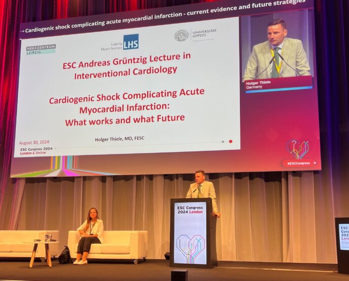 Mehr erfahren zu: "ESC: Holger Thiele erhält Andreas-Grüntzig-Preis und präsentiert wegweisende Studien zum kardiogenen Schock" ESC: Holger Thiele erhält Andreas-Grüntzig-Preis und präsentiert wegweisende Studien zum kardiogenen Schock Das Herzzentrum Leipzig feiert die Auszeichnung von Prof. Holger Thiele mit dem renommierten Andreas-Grüntzig-Preis auf der diesjährigen Jahrestagung der Europäischen Gesellschaft für Kardiologie (ESC 2024).