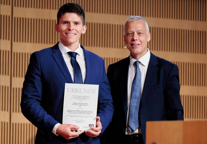 Mehr erfahren zu: "Simon Lebek erhält Wilhelm P. Winterstein-Preis" Simon Lebek erhält Wilhelm P. Winterstein-Preis Einen neuen therapeutischen Ansatz für die chronische Herzschwäche entwickelt Prof. Simon Lebek vom Universitätsklinikum Regensburg (UKR). Dafür erhielt er den Wilhelm P. Winterstein-Preis der Deutschen Herzstiftung.