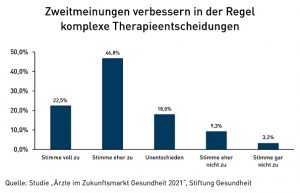 Mehr erfahren zu: "Zweitmeinungen: Fast jeder zweite Arzt sieht Bedarf für weitere Indikationen" Zweitmeinungen: Fast jeder zweite Arzt sieht Bedarf für weitere Indikationen Rund 70 Prozent der niedergelassenen Ärzte sind der Ansicht, dass Zweitmeinungen komplexe Therapieentscheidungen verbessern können. Das zeigt die Studie „Ärzte im Zukunftsmarkt Gesundheit 2021“, die die Stiftung Gesundheit veröffentlicht hat.