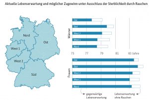 Mehr erfahren zu: "Bevölkerungsforschung: Rauchen ist ein wesentlicher Faktor für regionale Unterschiede in der Sterblichkeit" Bevölkerungsforschung: Rauchen ist ein wesentlicher Faktor für regionale Unterschiede in der Sterblichkeit Innerhalb Deutschlands hat der Süden die höchste Lebenserwartung. Forscher am Bundesinstitut für Bevölkerungsforschung (BiB) sind in einer Studie der Frage nachgegangen, inwieweit dies durch regionale Unterschiede im Rauchverhalten bedingt ist.