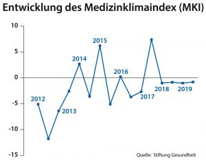 Mehr erfahren zu: "Medizinklimaindex Herbst 2019: Stimmung der Ärzte weiterhin verhalten" Medizinklimaindex Herbst 2019: Stimmung der Ärzte weiterhin verhalten Die Ärzte in Deutschland beurteilen ihre aktuelle und künftige wirtschaftliche Lage weiterhin zurückhaltend. Der aktuelle Medizinklimaindex (MKI) für Herbst 2019 erreicht laut Mitteilung der Stiftung Gesundheit mit -0,5 Punkten einen […]