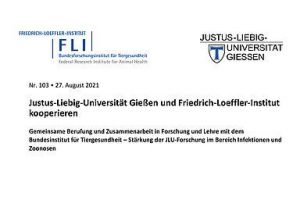 Mehr erfahren zu: "Justus-Liebig-Universität Gießen und Friedrich-Loeffler-Institut kooperieren" Justus-Liebig-Universität Gießen und Friedrich-Loeffler-Institut kooperieren Gemeinsame Berufung und Zusammenarbeit in Forschung und Lehre mit dem Bundesinstitut für Tiergesundheit – Stärkung der JLU-Forschung im Bereich Infektionen und Zoonosen