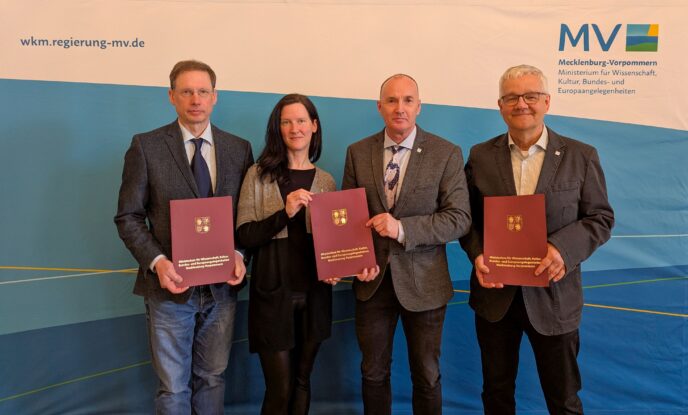 Mehr erfahren zu: "Dreifacher Erfolg: FBN mit starker Beteiligung an Exzellenzinitiative MV" Dreifacher Erfolg: FBN mit starker Beteiligung an Exzellenzinitiative MV Mit der offiziellen Übergabe der Förderbescheide durch Wissenschaftsministerin Bettina Martin am 10. März in Schwerin hat das Forschungsinstitut für Nutztierbiologie (FBN) einen beachtlichen Erfolg besiegelt.