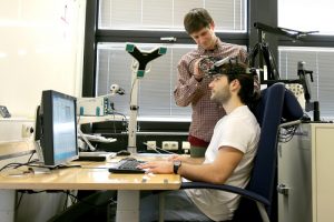 Gehirnerschütterungen beim Sport: Gestik hilft bei der Diagnose17. Dezember 2019 Foto: ©Alain Vermeulen – stcok.adobe.com Bei Kontaktsportarten kommt es häufig zu Gehirnerschütterungen, deren Diagnose nicht immer einfach ist. Eine aktuell publizierte Studie offenbart nun ein möglicherweise neues Diagnosekriterium. Danach unterscheiden sich die Gesten von SportlerInnen mit und ohne Gehirnerschütterung. Seit Christoph Kramers Blackout im Finale der Fußball-WM 2014 haben die Diskussionen über die Problematik von Gehirnerschütterungen im Sport zugenommen. Im Vordergrund steht dabei die korrekte Diagnose. Symptome nach sportbedingten Gehirnerschütterungen liegen häufig vor, sind jedoch nicht immer eindeutig. ForscherInnen der Abteilung Neurologie, Psychosomatik und Psychiatrie des Instituts für Bewegungstherapie und bewegungsorientierte Prävention und Rehabilitation der Deutschen Sporthochschule Köln konnten jetzt die Vermutung belegen, dass das nonverbale Verhalten beziehungsweise Gesten dabei helfen, zusätzliche Informationen über den Gesundheitszustand von AthletInnen zu gewinnen – insbesondere im Hinblick auf mögliche Symptome einer Gehirnerschütterung. Das Team um Dr. Ingo Helmich verglich in einer Studie die Gesten von SportlerInnen mit und ohne Gehirnerschütterung. Die vorliegenden Ergebnisse zeigen, dass symptomatische AthletInnen häufiger sogenannte Motion Quality Presentation Gestures ausführen; diese Gesten liefern Informationen zu den motorisch-sensorischen Erfahrungen eines Athleten oder einer Athletin in Bezug auf den Vorfall der Gehirnerschütterung. Dr. Ingo Helmich (r.) führt bei einem Probanden eine funktionale Nah-Infrarot Spektroskopie (fNIRS) durch. (Foto: DSHS Köln) Im Hinblick auf das nonverbale Verhalten beziehungsweise Gesten konnte die Studie eindeutige Unterschiede zwischen Personen mit und ohne Gehirnerschütterung nachweisen. Im Sinne einer verbesserten Diagnostik können Gesten also als Verhaltensmarker von sportbedingten Gehirnerschütterungen eingesetzt werden, so die Interpretation der ForscherInnen. Originalpublikation: Helmich I et al.: Symptoms after sport-related concussions alter gestural functions. Journal of Science and Medicine in Sport, 3. Dezember 2019