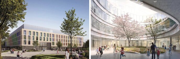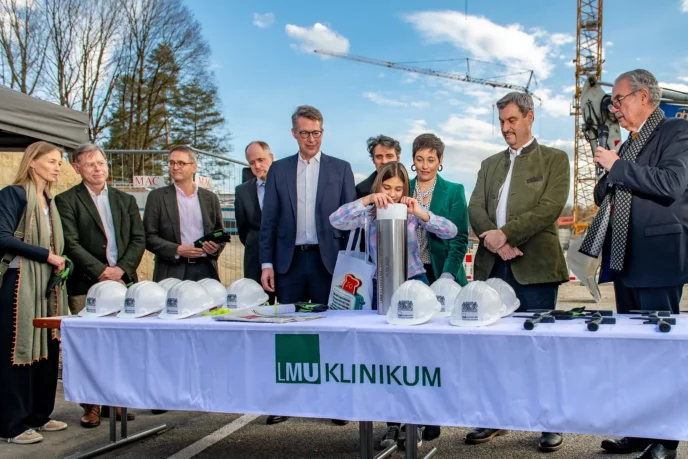 Grundstein für das Neue Hauner ist gelegt12. März 2025 Die zwölfjährige Romina legte im Beisein von (v.l.n.r.) Dr. Nicola Pape-Feußner, Prof. Christoph Klein, Prof. Andreas Flemmer, Prof. Jan Gödeke, Wissenschaftsminister Markus Blume, Prinz Ludwig von Bayern, Pflegedirektorin Carolin Werner, Ministerpräsident Markus Söder und Prof. Markus Lerch ihren Wunschzettel an das Neue Hauner in die Zeitkapsel. (Foto: © LMU KLinikum) Am Campus Großhadern des LMU Klinikums entsteht derzeit eine hochmoderne Universitätsklinik für Kinder- und Jugendmedizin. Ende dieses Jahrzehnts wird das Neue Hauner die Nachfolge des international renommierten Dr. von Haunerschen Kinderspitals antreten. Mit der Grundsteinlegung feierte das LMU Klinikum am 11. März einen wichtigen Meilenstein auf dem Weg zu einer hochmodernen Universitätsklinik für Kinder- und Jugendmedizin. Beim Festakt waren unter anderem der Bayerische Ministerpräsident Dr. Markus Söder, Bayerns Staatsminister für Wissenschaft und Kunst, Markus Blume, und Prinz Ludwig von Bayern anwesend. In dem Neubau mit fast 200 Betten werden die Kliniken für Kinderheilkunde und Kinderchirurgie mit dem integrierten Sozialpädiatrischen Zentrum und weiteren Einrichtungen zusammengeführt. „Ein großartiger Tag für die Kindermedizin in Bayern: Mit der heutigen Grundsteinlegung für Das Neue Hauner auf dem LMU Campus Großhadern entsteht die modernste Kinderklinik Europas. Ein weiterer wichtiger Meilenstein für die Gesundheit unserer Kinder und Jugendlichen und ein leuchtender Mosaikstein für die medizinische Versorgung in Bayern insgesamt. Die Medizin hat derzeit die größte Dynamik in der Geschichte der Menschheit. An dieser Entwicklung wollen wir teilhaben. Darum investieren wir massiv in Technologie und Medizin. Beides sind Schlüsselfaktoren für heutige und künftige Gesundheit und Lebensqualität. Die Investition des Freistaats in Höhe von rund 550 Millionen Euro in Das Neue Hauner ist gut angelegtes Geld, denn unsere Kinder verdienen die bestmögliche medizinische Betreuung! Dank an alle Mitarbeiterinnen und Mitarbeiter und alles Gute für den weiteren Bau“, erklärte der Bayerische Ministerpräsident beim Festakt. Prof. Markus M. Lerch, Vorstandsvorsitzender und Ärztlicher Direktor des LMU Klinikums, ergänzte: „Mit dem Bau des Neuen Hauner setzt der Freistaat mehr als 170 Jahre nach der Gründungsidee von August von Hauner ein Zeichen. Der erste Neubau des Dr. von Haunerschen Kinderspitals am Goetheplatz aus dem Jahr 1882 hat sich zu einer der weltweit renommiertesten Kinderkliniken entwickelt. Das Neue Hauner auf dem Campus Großhadern wird seine Tradition fortsetzen und nach der Fertigstellung zur modernsten und kindgerechtesten Klinik für Kinder- und Jugendmedizin in Europa werden. Als LMU Klinikum sind wir für diese große Investition des Freistaates sehr dankbar, der damit auch den Startschuss für die Erneuerung unseres gesamten Medizincampus in Großhadern nach über 50 Jahren gegeben hat.“ Bauarbeiten laufen nach Plan Der Bau des Neuen Hauner hat im zweiten Quartal 2023 begonnen, die Bauarbeiten laufen nach Plan: Nach der Einrichtung der Baustelle und dem Aushub sind derzeit die Betonarbeiten im Gange, 2026 sollen diese finalisiert sein. Die technische Inbetriebnahme ist für 2027 geplant, Ende 2029 soll das Gebäude an das LMU Klinikum übergeben werden. Zur Grundsteinlegung ragt das Gebäude nach knapp zwei Jahren Bauzeit über die Geländeoberfläche (Erdgeschoss) hinaus. Zu den Gesamtbaukosten von 600 Millionen Euro steuert der Freistaat 550 Millionen Euro bei, 50 Millionen Euro stammen aus Spenden und einem Eigenanteil des LMU Klinikums. Die Erschließung und Baukosten für das Neue Hauner mit integriertem Rechenzentrum, der Schule für Kranke, einer Betreuung für Geschwisterkinder sowie einer leistungsfähigen Photovoltaikanlage sind mit rund 420 Millionen Euro veranschlagt. Der Freistaat Bayern stellt zudem weitere Mittel (derzeit bis zu 180 Millionen Euro) für zukünftig steigende Baukosten und mögliche Baurisiken zur Verfügung. Optimale Versorgung für Kinder jeder Altersstufe In dem Neubau mit insgesamt 196 Betten und 1408 Räumen finden die Kliniken für Kinderheilkunde und Kinderchirurgie ihren Platz. Das Gebäude mit einem Grundriss von 90 mal 90 Metern und einer Nutzfläche von 19.200 Quadratmetern ist räumlich in den Campus Großhadern eingebettet. Dort sind bereits die Abteilungen für Neonatologie, Kinderkardiologie und Kinderpalliativmedizin angesiedelt. Das Neue Hauner schließt unmittelbar an die Geburtshilfe im angrenzenden „Bettenhaus“ an. So entsteht am LMU Klinikum ein zentraler Standort, an dem die Mitarbeitenden des Neuen Hauner Kinder aller Altersgruppen – von extrem Frühgeborenen bis zu jungen Erwachsenen – mit sämtlichen Krankheitsbildern versorgen können. Damit kann das international renommierte Zentrum für Kindermedizin seine Arbeit unter optimalen Bedingungen fortsetzen. Renderings des Neuen Hauners: Außenansicht und Innenhof (Bildquelle: © Nickl & Partner Architekten) Unterstützung durch breites bürgerschaftliches Engagement Die Entstehung des Neuen Hauner wird maßgeblich durch ein breites bürgerschaftliches Engagement getragen. Bisher kamen Spendengelder in Höhe von rund 28 Millionen Euro für den Bau, die Realisierung spezieller Projekte in der Patientenversorgung sowie für Forschung und Lehre zusammen. Der aktuelle Schwerpunkt der Spendenakquise liegt auf der Inneneinrichtung von Untersuchungsräumen, Ambulanzen und Patientenzimmern im Neuen Hauner, die an die Bedürfnisse der jungen Patientinnen und Patienten angepasst werden sollen. Ziel ist das ganzheitliche Wohlbefinden aller am Genesungsprozess Beteiligten – ein Anliegen, das bereits dem Gründer des Dr. von Haunerschen Kinderspitals besonders am Herzen lag. Als Pate für das Neue Hauner hat der DFB-Co-Trainer Sandro Wagner großes Interesse an der Entwicklung der neuen Klinik: „Das Neue Haune
