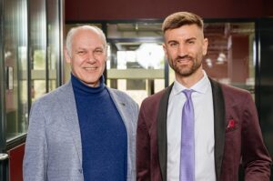 Hannover Messe: Bionische Roboterarme beweglich und sanft wie Elefantenrüssel14. April 2023 Doktorand Yannik Goergen (l.) hat den bionischen Roboterrüssel im Rahmen seiner Promotion entwickelt. Rawan Barakat (r.) arbeitet im Rahmen ihres Masterstudiums an bionisch inspirierten soften Robotern. (Foto: Oliver Dietze, Universität des Saarlandes) Künstliche Muskeln und Nerven aus der Formgedächtnislegierung Nickel-Titan machen Roboterrüssel wendig und beweglich wie ihr tierisches Vorbild. Sie sind aber wesentlich leichter, unermüdlicher und präzise steuerbar. Die Technologie zeigt das Forschungs- und Entwicklungsteam auf der Hannover Messe vom 17. bis 21. April (Halle 002, Stand B34). Die bionischen Roboterarme, die das Forschungsteam um Professor Stefan Seelecke von der Universität des Saarlandes zusammen mit der Festo-Unternehmensgruppe entwickelt, verbrauchen nur wenig Strom und können gefahrlos mit Menschen zusammenarbeiten. Industrieroboter sind heute ebenso kraftvoll, flink und präzise wie schwer und lebensgefährlich. Menschen, die mit ihnen arbeiten, müssen sich in Acht nehmen, sonst hat ein Rempler schnell schmerzhafte Folgen. Damit sie mit dem Menschen Seite an Seite und Hand in Hand arbeiten können, müssen Roboter softer sein. Einen Roboterarm, der gänzlich ohne schwere Metallkonstruktion auskommt, entwickelt das Forschungsteam um den Spezialisten für intelligente Materialsysteme Prof. Stefan Seelecke von der Universität des Saarlandes (UdS). Die Saarbrücker Forscherinnen und Forscher folgen dabei dem Vorbild der Natur: dem Elefantenrüssel. „Dieses Erfolgsmodell hatte Jahrmillionen Zeit, auszureifen, und sich in der Praxis zu bewähren“, erklärt Seelecke. Der schlanke Roboterrüssel, den sie entwickeln, kann schwingend pendeln und schlenkern, sich in alle Richtungen biegen. Anders als die heutigen schweren, metallenen Roboterarme ist er nicht an sperrige Gelenke gebunden, die Bewegungen nur in bestimmte Richtungen zulassen. Wie sein tierisches Vorbild kommt der Roboterrüssel ohne „Knochen“, also ohne starres Metallgerüst aus. Er ist wendig allein durch das geschickte Zusammenspiel seiner künstlichen Muskeln. „Unsere intelligenten Materialsysteme machen biegsame und weiche Roboterwerkzeuge möglich, die erheblich leichter und flexibler sind als heutige technische Bauteile. Sie brauchen keine Motoren, Hydraulik oder Druckluft, sondern funktionieren mit vergleichsweise wenig elektrischem Strom. Das macht diese Robotertechnologie im Betrieb nachhaltig, kostengünstig und auch leise“, erläutert Seelecke. Sein Forschungsteam arbeitet an der Universität des Saarlandes und am Saarbrücker Zentrum für Mechatronik und Automatisierungstechnik Zema an verschiedenen Arten von künstlichen Muskeln für smarte Roboterrüssel und -tentakel. Sowohl intelligente Kunststoffe wie auch Formgedächtnislegierungen setzen die Ingenieure hierzu ein. Auf der Hannover Messe zeigt das Team seinen neuen Prototyp mit Formgedächtnis: Der etwa 30 Zentimeter lange Rüssel demonstriert sein Können mit Muskeln und Nerven aus Nickel-Titan-Drahtbündeln. „Die Technologie ist skalierbar, sie funktioniert auch für große Industrieroboter“, sagt Seelecke. Künstliche Muskeln aus Nickel-Titan-Drähten können wie Muskeln von Lebewesen kontrahieren: Auf Befehl verkürzen sie sich, ziehen sich also zusammen, und dehnen sich wieder aus, entspannen also. Diese außergewöhnliche Fähigkeit von Nickel-Titan beruht auf dem Phänomen des Formgedächtnisses dieser Legierung: Sie erinnert sich an ihre ursprüngliche Form. Wird ein solcher Draht erwärmt, etwa indem Strom hindurchfließt, verkürzt er sich. Wird der Strom abgeschaltet, kühlt er ab und wird wieder lang. Stefan Seelecke und Paul Motzki (v.l.), Foto:Foto: Oliver Dietze, Universität des Saarlandes Der Grund liegt im Kristallgefüge der Legierung: „Durch Erwärmen kommt es hier zu Festkörperphasenumwandlungen“, erklärt Prof. Paul Motzki, der mit Seelecke forscht und mit „Smarte Materialsysteme für innovative Produktion“ eine Brückenprofessur zwischen Universität des Saarlandes und Zema innehat. Anders als etwa bei Wasser, das bei Erwärmen gasförmig wird, bleibt Nickel-Titan zwar fest, aber der feste Zustand, seine Kristallstruktur, wandelt sich um. Die Forscherinnen und Forscher setzen den Rüssel aus vielen der künstlichen Muskelstränge zusammen. Wie echte Muskelfasern, die in Bündeln zusammengefasst sind, bündeln sie dafür auch die haarfeinen Drähte. Drahtbündel geben durch die größere Oberfläche mehr Wärme ab, was die Kontraktionen schneller macht. Und stark sind sie auch: „Die Drähte haben die höchste Energiedichte aller bekannten Antriebsmechanismen und entwickeln hohe Zugkraft. Das macht es uns auf kleinstem Raum möglich, starke Antriebstechniken unterzubringen, was sonst unmöglich wäre“, erläutert Motzki. Indem sie mehrere dieser Drahtbündel in bestimmten Abständen durch eine Reihe runder, dünner Kunststoffscheiben fädeln, halten die Drahtbündel Abstände ein und es entsteht ein Rüsselsegment. Die Forscher setzen mehrere dieser Segmente zusammen, deren Scheiben zum Ende des Rüssels hin kleiner werden. Durch elektrische Impulse können die Forscher im Rüssel die Muskeln spielen lassen. Verkürzen sie die künstlichen Muskelstränge auf einer Seite in einem Muskelsegment, biegt sich der Rüssel an dieser Stelle im gewünschten Winkel nach außen. Das Zusammenspiel der Drahtbündel bringt dabei wie eine Beuge- und Streck-Muskulatur fließende Bewegungsabläufe hervor. Ohne zusätzliche Sensoren können die Forscher den Rüssel hochpräzise und schnell ansteuern, so dass er beliebige Bewegungen vollführt. Die künstlichen Muskeln dienen dabei zugleich als Nerven des Systems – die Drähte selbst haben Sensoreigenschaften. „Jede Verformung der Drähte bewirkt eine Änderung des elektrischen Widerstands und lässt sich präzisen Messwerten zuordnen. Anhand der Messwerte wiss