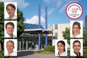 HDZ NRW ist offizieller Fortbildungsstandort Junge Kardiologie10. Januar 2022 Kardiologischer Nachwuchs am Fortbildungsstandort HDZ NRW. Linke Seite (v. oben n. unten): Max Potratz, Philipp Lukas, Johannes Kirchner. Rechte Seite: Vera Fortmeier, Muhammed Gerçek. Ansprechpartnerin für die Junge Kardiologie in Bad Oeynhausen ist Sara Waezsada (Mitte). Abbildung: Marcel Mompour Mit dem Gütesiegel „Young DGK“ zeichnet die Deutsche Gesellschaft für Kardiologie (DGK) das Herz- und Diabeteszentrum NRW (HDZ NRW), Bad Oeynhausen, für seine aktive Beteiligung am akademischen Veranstaltungsprogramm aus. Bisher nur zwölf Einrichtungen deutschlandweit dürfen sich „Fortbildungsstandort Junge Kardiologie“ nennen. Als eine der ersten Einrichtungen hat das HDZ NRW, Bad Oeynhausen, dieses Gütesiegel der DGK für seine Kliniken der Allgemeinen und Interventionellen Kardiologie und Angiologie (Direktor: Prof. Volker Rudolph) sowie der Elektrophysiologie/Rhythmologie (Direktor: Prof. Philipp Sommer) erhalten. Beide Klinikdirektoren sind seit 2018 am HDZ NRW tätig und haben es sich zum Herzensanliegen gemacht, jungen Kolleginnen und Kollegen ihren Fachbereich nicht nur in der klinischen Praxis zu vermitteln, sondern auch spezielle Einblicke in das wissenschaftliche Arbeiten zu ermöglichen. „Die Investition in den wissenschaftlichen Nachwuchs ist unabdingbar, wenn wir die kardiologische Versorgung in ihrem gesamten Spektrum bestmöglich weiterentwickeln wollen.“ 2021 waren vier Ärzte und eine Ärztin aus dem HDZ NRW erstmals an der DGK-Initiative „Fortbildungsstandort Junge Kardiologie“ beteiligt: Dr. Vera Fortmeier, Dr. Muhammed Gerçek, Dr. Johannes Kirchner, Philipp Lukas und Dr. Max Potratz. In den beiden kardiologischen Kliniken des HDZ NRW werden derzeit 44 Assistenzärztinnen und Assistenzärzte mit dem Ziel der fachärztlichen Weiterbildung ausgebildet. Es liegt eine Weiterbildungsermächtigung für die gesamte Innere Medizin und Kardiologie auch nach der neuen Weiterbildungsordnung vor. Die Grundlage bilden wöchentliche klinikinterne Fortbildungsveranstaltungen und ein elektronisches Logbuch als Grundlage für regelmäßige oberärztliche Evaluationsgespräche auf der Grundlage der Weiterbildungsordnung der Europäischen Gesellschaft für Kardiologie. Darüber hinaus nimmt der ärztliche Nachwuchs nach Vereinbarung an Akademiefortbildungen der DGK und anderen Fachgesellschaften teil.