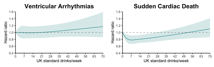Holiday-Heart-Syndrom: Fördert Alkohol ventrikuläre Arrhythmien und Plötzlichen Herztod?24. Dezember 2021 Foto: ©Gregory Lee – stock.adobe.com Das Holiday-Heart-Syndrom beschreibt das Auftreten von Vorhofflimmern in Zusammenhang mit dem Genuss von Alkohol. Eine umfangreiche Studie mit mehr als 400.000 Personen in „Heart Rhythm“ untersuchte nun, ob sich diese Alkohol-induzierten Arrhythmien auf den Ventrikel ausweiten können und vermehrt zu einem Plötzlichen Herztod führen. Die Ergebnisse sind überraschend. Eine australische Forschungsgruppe analysierte Daten aus der UK Biobank, einer groß angelegten Forschungsdatenbank mit Gesundheitsinformationen von einer halben Million britischer Freiwilliger. Die Wissenschaftlerinnen und Wissenschaftler bewerteten den von mehr als 408.000 Teilnehmern angegebenen Alkoholkonsum als Prädiktor für ventrikuläre Arrhythmien (VAs) und Plötzliche Herztode (SCDs) über einen mittleren Zeitraum von 11,5 Jahren. Sie untersuchten die Zusammenhänge zwischen dem gesamten und dem getränkespezifischen Alkoholkonsum und dem Auftreten von VA und SCD. „Dies ist eine der ersten Studien, die speziell den Zusammenhang zwischen langfristigem Alkoholkonsum und VA untersucht“, erklärt der Studienleiter Christopher X. Wong vom Zentrum für Herzrhythmusstörungen an der University of Adelaide und dem Royal Adelaide Hospital in Australien. „Wir wollten den Zusammenhang zwischen Alkoholkonsum und zwei Arten von Herz-Kreislauf-Erkrankungen klären: VAs, bei denen es sich häufig um lebensbedrohliche Herzrhythmusstörungen handelt, und SCDs, bei denen es sich um Todesfälle handelt, von denen man annimmt, dass sie durch einen Verlust der Herzfunktion verursacht werden und die häufig auf VAs zurückzuführen sind.“ Alkoholkonsum wirkt sich unterschiedliche auf das Risiko für VAs und SCDs aus Die Forschenden stellten fest, dass die Beziehungen zwischen Alkoholkonsum und VA und SCD recht unterschiedlich waren. So wurde in der überwiegend weißen britischen Kohorte kein Zusammenhang zwischen dem Gesamtalkohol-, Bier-, Apfelwein-, Rot- oder Weißweinkonsum und dem VA-Risiko festgestellt. Personen, die mindestens 14 Getränke pro Woche an hochprozentigen Spirituosen zu sich nahmen, aber keine anderen Alkoholarten konsumierten, wiesen jedoch ein etwa 20 Prozent höheres Risiko für VA auf. Weiterhin beobachteten sie einen U-förmigen Zusammenhang zwischen dem Alkoholkonsum und dem Risiko eines SCD, was mit früheren Studien übereinstimmt. Dies war unerwartet, da häufig davon ausgegangen wird, dass SCD auf VA zurückzuführen sind. Obwohl VAs SCDs verursachen können, werden nicht alle SCDs durch VAs verursacht. Man geht sogar davon aus, dass einige SCDs auf Erkrankungen zurückzuführen sind, die nichts mit dem Herzen zu tun haben. Dies könnte den Forschenden zufolge erklären, weshalb Alkohol bei diesen ähnlichen Erkrankungen eine andere Wirkung zu haben scheint. Zusammenhang zwischen Gesamtalkoholkonsum und auftretenden ventrikulären Arrhythmien (links) und Plötzlichem Herztod (rechts). Quelle: Heart Rhythm Keine Empfehlung zum regelmäßigen Alkoholkonsum „Frühere Studien haben den Zusammenhang zwischen Alkohol und SCD untersucht und einen schützenden Zusammenhang bei geringerem Alkoholkonsum festgestellt. Wir wissen jedoch, dass die Diagnosen SCD und VA nicht gleichwertig sind und dass eine nicht unerhebliche Anzahl der vermeintlichen SCDs in Wirklichkeit auf nichtkardiale Ursachen zurückzuführen ist“, fügt Wong hinzu. Auch betont er, dass sie den Menschen nicht empfehlen, für ihre Herzgesundheit zu trinken. „Unserer Meinung nach gibt es keine ausreichenden Beweise, um zu empfehlen, dass Nichttrinker Alkohol konsumieren sollten, um gesundheitliche Vorteile zu erzielen. Wir wissen auch, dass Alkoholkonsum das Risiko von Darm- und Brustkrebs erhöht und die Leber schädigt. Daher sollte die Wirkung von Alkohol auf die Gesundheit in ihrer Gesamtheit betrachtet werden, wenn wir Empfehlungen für einen sicheren Alkoholkonsum abgeben“. Schließlich betont Wongs Forschungsgruppe, dass diese Ergebnisse in weiteren epidemiologischen und experimentellen Studien mit genau definierten VA- und SCD-Ereignissen geklärt werden müssen. Beim Holiday-Heart-Syndrom keine Ausweitung auf den Ventrikel In einem begleitenden Editorial kommentieren Stacey J. Howell und Gregory M. Marcus von der Sektion für Elektrophysiologie, Abteilung für Kardiologie, Universität von Kalifornien, San Francisco, USA: „Die aktuelle Studie scheint keine zwingenden Beweise dafür zu liefern, dass sich das Holiday-Heart-Syndrom auf die Herzkammern ausdehnt, und zeigt in der Tat, dass moderater Alkoholkonsum vor SCD schützen kann. Es ist erwähnenswert, dass ein übermäßiger Alkoholkonsum im Allgemeinen das Risiko eines SCD erhöht. Entgegen der landläufigen Meinung, dass Alkohol im Allgemeinen herzgesund ist, deckt sich dies mit früheren Erkenntnissen, dass übermäßiger Alkoholkonsum sogar das Risiko für einen Herzinfarkt erhöht, was zeigt, dass ‚mehr nicht besser ist‘.“ Allgemeine Auswirkungen übermäßigen Alkoholkonsums Nach Angaben der Centers for Disease Control and Prevention (CDC) führte übermäßiger Alkoholkonsum zwischen 2011 und 2015 in den Vereinigten Staaten jährlich zu etwa 95.000 Todesfällen und 2,8 Millionen verlorenen Lebensjahren, was das Leben der Verstorbenen um durchschnittlich 29 Jahre verkürzte. Die wirtschaftlichen Kosten des übermäßigen Alkoholkonsums wurden im Jahr 2010 auf 249 Milliarden US-Dollar geschätzt. Im Laufe der Zeit kann übermäßiger Alkoholkonsum zur Entwicklung von chronischen Krankheiten wie Bluthochdruck, Herzkrankheiten, Schlaganfall, Lebererkrankungen und Verdauungsproblemen sowie zu verschiedenen Krebsarten führen. Das Wissen um die Rolle des Alkohols bei Herz-Kreislauf-Erkrankungen und anderen Gesundheitsproblemen kann dazu beitragen, Leitlinien für einen sicheren Alkoholkonsum zu erstellen. Jedes