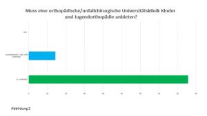 Ist die universitäre Kinder- und Jugendorthopädie ein fundamentaler Bestandteil?26. Oktober 2022 Abb. 1 (Grafik: Wirth) In der vorliegenden Arbeit stellt der Autor Ergebnisse aus einer Umfrage vor, die den Status quo der Kinder und Jugendorthopädie in deutschen Universitätskliniken widerspiegelt und leitet daraus Forderungen für die Zukunft der Disziplin innerhalb der Universitätsmedizin ab. Wie die gesamte Kinder- und Jugendmedizin leidet auch die Kinder- und Jugendorthopädie in der Bundesrepublik Deutschland unter der Ressourcenverknappung in Zusammenhang mit der Ökonomisierung der Medizin. Dadurch wird aus dem zentralen Element, das dem Fach Orthopädie den Namen gegeben hat, ein an den Rand gedrängtes Teilgebiet der Gesamtfachs Orthopädie und Unfallchirurgie. Eine tragende Rolle in der Aus- und Weiterbildung von Studenten und Ärzten in Weiterbildung nehmen die Universitätskliniken ein. Während des Studiums und im Praktischen Jahr entscheiden viele junge Kollegen über ihre fachliche Spezialisierung und fachärztliche Weiterbildung. Die Kommission Kinder- und Jugendorthopädie der DGOOC hat Ende 2021 in enger Abstimmung mit der Vereinigung für Kinderorthopädie (VKO) und dem Konvent der Universitätsprofessoren für O und U (KUOU) eine Umfrage unter den deutschen Universitätskliniken zu dieser Thematik durchgeführt, die große Defizite in Versorgung, Lehre und Forschung in der universitären Kinder- und Jugendorthopädie ans Licht brachte. Von den 39 deutschen Universitätskliniken nahmen 25 Standorte mit 29 Abteilungen an der Umfrage teil, entsprechend einer Rücklaufquote von etwa 64 Prozent. Aus den Bundesländern Brandenburg, Bremen, Mecklenburg-Vorpommern und Schleswig-Holstein kamen keine Antworten, aus Bayern und Nordrhein-Westfalen von weniger als der Hälfte der Standorte. Insgesamt waren 45 Fragen zum aktuellen Angebot und den Perspektiven der Kinder- und Jugendorthopädie zu beantworten. Die positiven Aspekte der Umfrage sind, dass alle antwortenden Unikliniken Kinder- und Jugendorthopädie anbieten, meistens als Sektion (69 %) teilweise in die Klinik integriert (31 %). Immerhin 55 Prozent der Kliniken haben eine eigene Kinderstation, die übrigen nutzen Betten der Kinderklinik, die es an allen Standorten gibt. Erfreulich ist auch, dass die Zusatzweiterbildung Kinderorthopädie in allen Auskunft gebenden Kliniken vorhanden ist, teilweise mehrfach. Gut zehn Prozent der Unikliniken hat nur einen Arzt für das Teilgebiet abgestellt, während die überwiegende Mehrheit ein Team mit unterschiedlichen Mitarbeiterzahlen unter der Verantwortung eines Oberarztes oder des Chefarztes abstellt. Alle Kliniken haben eine enge Kooperation mit der ansässigen Kinderklinik angegeben, die sich vorrangig auf die Behandlung onkologischer (93 %), neurologischer (65,5 %) und rheumatologischer (58,6 %) Patienten erstreckt. Alle antwortenden Kliniken halten kinder- und jugendorthopädische Sprechstunden ab, 82,8 Prozent auch Spezialsprechstunden. Darunter sind vor allen Dingen die Hüftultraschallsprechstunde Neugeborener, die Skoliose- und die Klumpfußsprechstunde zu nennen. In allen weiteren Fragen wurden die Defizite der universitären Kinder- und Jugendorthopädie aufgedeckt. Sämtliche Kliniken behandeln Kinder operativ. Die Mehrzahl (57,2 %) führt lediglich zwischen 250 und 500 operative Eingriffe im Jahr durch, 25 Prozent liegen darunter und 17,8 Prozent darüber. 28 Kliniken operieren Wirbelsäulendeformitäten, 26 verlängern Extremitäten und 23 operieren benigne und maligne Knochentumoren, aber wir wissen nicht, ob dies durch den Kinderorthopäden oder den Wirbelsäulenchirurgen oder Tumororthopäden geschieht und wie die wirkliche Verzahnung mit der Kinder- und Jugendorthopädie ist. Wiederum 28 Kliniken behandeln Patienten mit neuromuskulären Erkrankungen. Nur 28,6 Prozent der Universitätskliniken haben aber noch eine eigene Technische Orthopädie. 42,8 Prozent bieten die Technische Orthopädie durch externe Partner an und 28,6 Prozent haben keine mehr. Dadurch gibt es den Idealfall einer neuroorthopädischen Sprechstunde mit anwesendem Physiotherapeut und Orthopädietechniker nur in 36 Prozent der Kliniken. Überhaupt vermissen wir an unseren orthopädischen Universitätskliniken region- oder fachgebundene Subspezialisierungen, wie sie in renommierten internationalen kinder- und jugendorthopädischen Abteilungen mittlerweile Standard sind (Abb. 1). Dadurch droht der Verlust des Anschlusses an die heutige internationale Behandlungsqualität. Auch die akademischen Aufgaben werden durch die Universitätskliniken für das Teilgebiet der Kinder- und Jugendorthopädie sehr unterschiedlich erfüllt. In mehr als der Hälfte der Fälle (57,1 %) wird die Lehre im Rahmen der Hauptvorlesung abgebildet. Nur etwa 40 Prozent der Universitätskliniken vertiefen das Teilgebiet in Kleingruppenveranstaltungen oder Seminaren. Auch die Forschung läuft auf diesem Gebiet in der Mehrzahl zu klinischen Themen, immerhin in 42,9 Prozent auch experimentell. Entsprechend werden auch Promotionsarbeiten angegeben. Obwohl diese Umfrage die Aktivitäten der nichtantwortenden Universitätskliniken nicht erfassen kann, darf doch gemutmaßt werden, dass sich etwa 30 Prozent der orthopädischen Universitätskliniken aus der Versorgung von Kindern und Jugendlichen zurückgezogen haben. Durch die Beschränkungen im universitären Angebot auf dem Feld der Kinder- und Jugendorthopädie werden weitere Fragen aufgeworfen. Abb. 2 (Grafik: Wirth) In der universitären Medizin gehört die Weiterentwicklung der Medizin durch Forschung und Lehre, damit auch die Aus- und Weiterbildung junger Kolleginnen und Kollegen zur Kernaufgabe (Abb. 2). Weniger als die Hälfte der antwortenden Kliniken glaubt diese Aufgaben in vollem Umfang zu erfüllen. Nur etwa zehn Prozent der Universitätsklinken denken, dass der Kinder- und Jugendorthopädie derzeit der richtige Raum beigemessen wird. Die Universitätskliniken verhehl