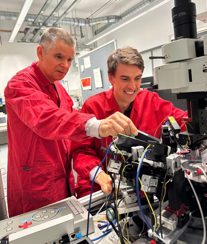 ISTA-Neurowissenschaftler decken Besonderheiten des menschlichen Gehirns auf20. Dezember 2024 Menschliche CA3-Pyramidalneuronen, aufgezeichnet in einer Gewebeprobe. (Quelle: © Jake Watson) In einer in „Cell“ veröffentlichten Arbeit haben Forschende am Institute of Science and Technology Austria (ISTA) und Neurochirurgen der Medizinischen Universität Wien, Österreich, Licht in die menschliche Hippocampus-Region CA3 gebracht, die für die Gedächtnisspeicherung zentral ist. Unser menschliches Gehirn verfügt über die bemerkenswerte Fähigkeit, Erinnerungen ein Leben lang zu speichern und wiederzugeben. Ein Raum, eine vertraute Situation oder auch ein Geruch allein können eine Erinnerung hervorrufen, und unser Gehirn verknüpft diese Informationen, um das Muster der Erinnerung zu vervollständigen. Obwohl das menschliche Gehirn für diesen Zweck optimiert ist, beginnen wir gerade erst zu verstehen, wie es Informationen über unsere Umgebung integriert. Dieser Prozess der Mustervervollständigung ist eine bemerkenswerte Verarbeitungsfähigkeit unseres Gehirns, die als assoziatives Gedächtnis bezeichnet wird. Der Großteil unseres neurowissenschaftlichen Wissens über das Gehirn stammt von gut untersuchten Tiermodellen wie Nagetieren, die für die Wissenschaft unverzichtbar sind. Aber ist das menschliche Gehirn einfach nur eine vergrößerte Version des Mäusegehirns oder hat es besondere Merkmale, die es menschlich machen? Forschende des Institute of Science and Technology Austria (ISTA) und Neurochirurgen der Medizinischen Universität Wien beleuchten nun, wie das menschliche Gehirn assoziative Erinnerungen speichert und abruft. Peter Jonas, Magdalena-Walz-Professor for Life Sciences am ISTA, und der Postdoktorand Jake Watson initiierten die Zusammenarbeit mit Prof. Karl Rössler von der Universitätsklinik für Neurochirurgie der Medizinischen Universität Wien, und untersuchten Proben von Epilepsie-Patienten, die sich einem neurochirurgischen Eingriff unterzogen hatten. Durch diese Kooperation konnten sie Erkenntnisse direkt aus intaktem, lebendem menschlichem Gewebe gewinnen. Menschen haben kein „großes Mäuse-Gehirn“ Der Hippocampus ist das Zentrum für Lernen und assoziatives Gedächtnis im Gehirn. Eine Region namens CA3 im Hippocampus speichert und verarbeitet Informationen und vervollständigt Muster. Da es selten möglich ist, gesundes menschliches Material zu nutzen, haben sich die meisten Studien bisher auf Tiermodelle konzentriert. Jonas und Watson lösten dieses Problem, indem sie mit Rössler kooperierten, einem Neurochirurgen, der sich auf behandlungsresistente Epilepsieformen spezialisiert hat. „Während Patient:innen, die sich einem neurochirurgischen Eingriff unterziehen, eine große Bandbreite an klinischen Erscheinungsbildern aufweisen, identifizierte Prof. Rössler eine Untergruppe von Epilepsiepatient:innen, die einen intakten Hippocampus aufweisen“, erklärt Jonas. Diese Chance konnten sich die Wissenschafter nicht entgehen lassen. „Bei dieser Form der Epilepsie ist eine einseitige Entfernung des Hippocampus notwendig, damit die Patient:innen eine Chance haben, zu gesunden und ein epilepsiefreies Leben zu führen“, erklärt Jonas. So konnte das Team von 17 Epilepsie-Patienten, mit deren Einverständnis, intaktes Hippocampus-Gewebe gewinnen. Peter Jonas (l.) und Jake Watson im Labor. (Quelle: © ISTA) An diesen Proben kombinierten die Forscher Modellierung mit modernsten experimentellen Techniken – multizelluläre Patch-Clamp-Technik zur Messung dynamischer funktioneller Eigenschaften von Neuronen, und superauflösende Mikroskopie. So kamen sie zu erstaunlichen Ergebnissen. Sie zeigten, dass der menschliche Hippocampus weit davon entfernt ist, eine vergrößerte Version des gut untersuchten Mäusehippocampus zu sein. Tatsächlich war die neuronale Konnektivität in der menschlichen CA3-Region spärlicher, und ihre Synapsen schienen zuverlässiger und präziser zu sein. Auf diese Weise entdeckte das Team besondere Eigenschaften der Verdrahtung des menschlichen Gehirns. „Wir hatten das Gefühl, nichts zu wissen“ Trotz der besonderen Zellstruktur und synaptischen Konnektivität des menschlichen Hippocampus bleiben Daten aus Tiermodellen nach wie vor sehr wichtig. Sie dienen als Referenz und helfen den Forschenden, die Technologie für die Untersuchung von menschlichem Gewebe zu entwickeln. „Wenn man mit Nagetieren arbeitet, hat man manchmal das Gefühl, dass alles über den Hippocampus bereits bekannt ist“, berichtet Watson. „Sobald ich angefangen habe, die ersten Proben zu untersuchen, wurde mir klar, wie wenig wir über den menschlichen Hippocampus wussten. Obwohl dies die am besten untersuchte Region des Gehirns bei Nagetieren ist, hatten wir das Gefühl, dass wir nichts über die menschliche Physiologie, die zelluläre Organisation oder die Konnektivität wussten.“ Basierend auf ihren Erfahrungen mit dem Hippocampusgewebe von Nagetieren mussten Watson und Jonas daher neue Wege finden, um diesen Teil des Gehirns beim Menschen zu untersuchen. Modellierung der Rechenleistung des menschlichen Gehirns Anhand ihrer experimentellen Daten zielte das Team darauf ab, ein Modell der Rechenleistung des CA3-Netzwerks im menschlichen Hippocampus zu erstellen. Sie erkannten, dass die humanspezifischen Schaltkreise und die synaptische Konnektivität es ihnen ermöglichten, das Ausmaß zu messen, in dem Erinnerungen zuverlässig gespeichert und abgerufen wurden. „Wir konnten testen, wie viele Muster in dieses Modell passen. So konnten wir nachweisen, dass die humanspezifische spärliche synaptische Konnektivität und die erhöhte synaptische Zuverlässigkeit die Speicherkapazität erhöhen“, erklärt Jonas. Die Forschenden haben somit herausgefunden, wie das menschliche CA3-Netzwerk Informationen effizient kodiert, um die Speicherung und Verknüpfung von Erinnerungen zu maximieren. Den Forschenden zufolge trägt die vorliegende Studie dazu bei,